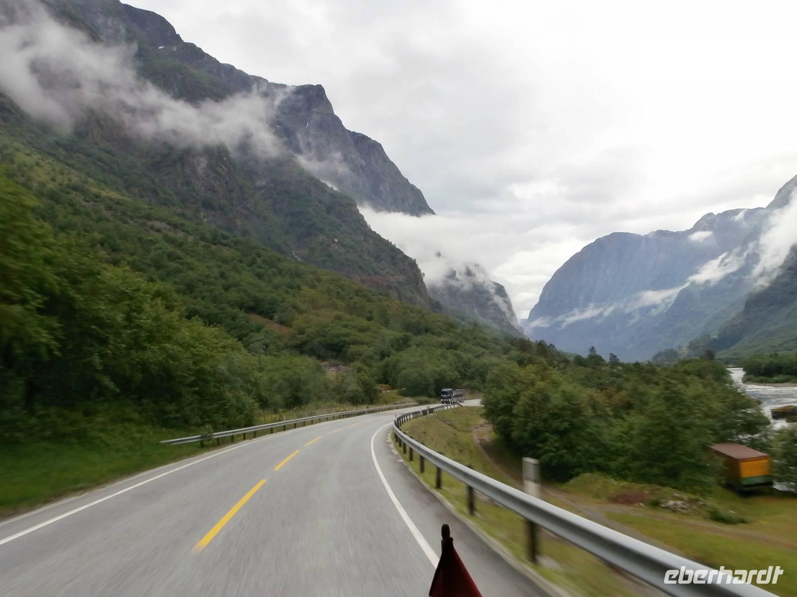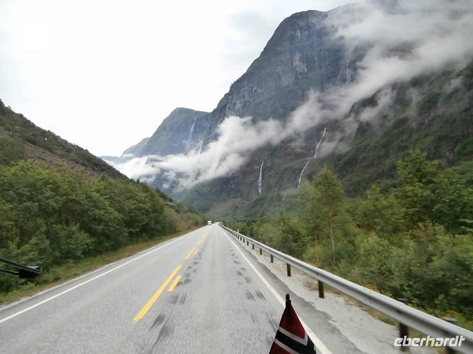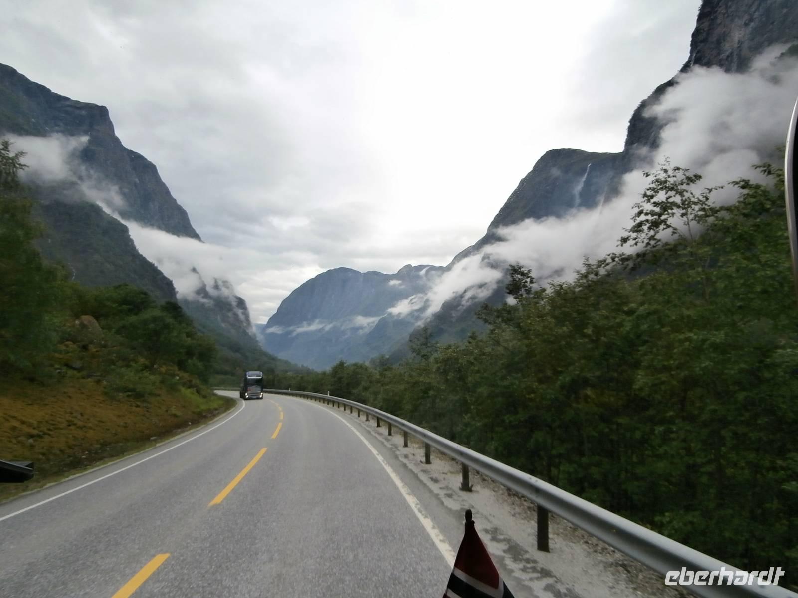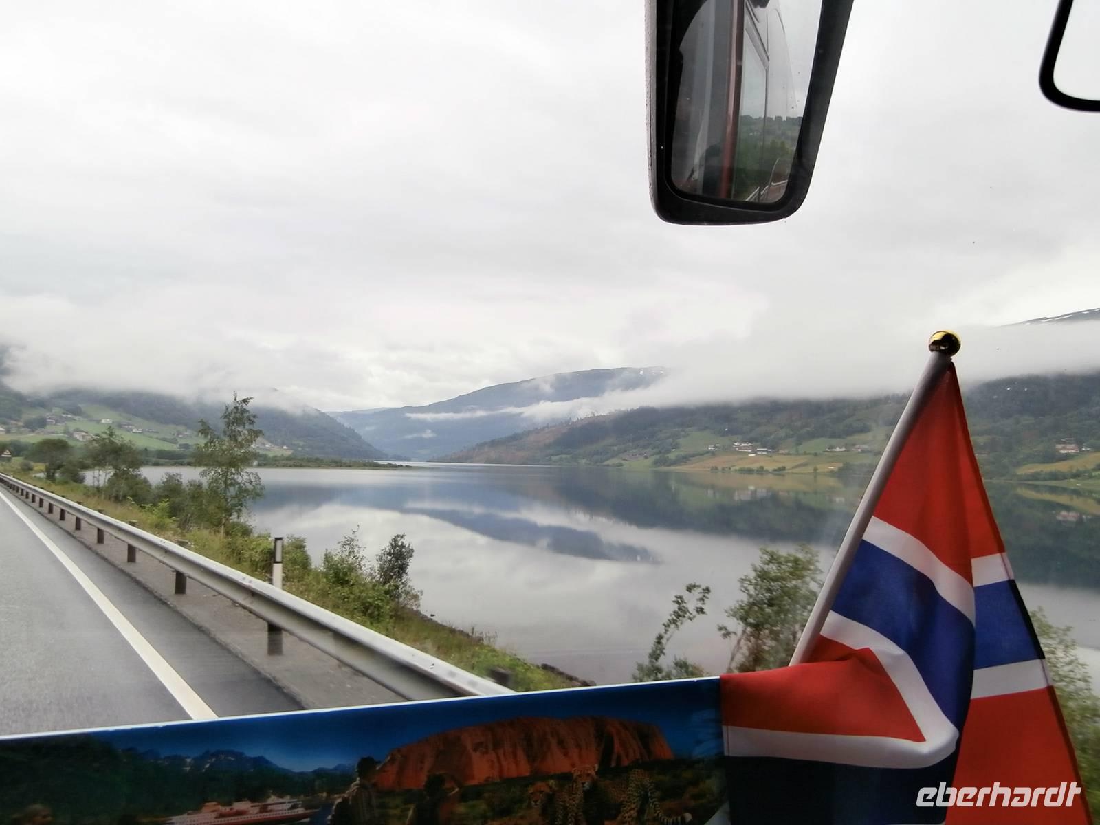 Nach einem vorzüglichem Frühstück im Hotel Rica Bergen machen wir uns auf den Weg aus Bergen heraus nach Voss. Bauarbeiten an der E6 lassen uns nichts an Zeit einbüßen und so sind wir pünktlich am Wasserfall Twindefoss, ein wahrhaft schönes Fotomotiv bietetet er uns. Wir krönen den Nachmittag mit einer Kreuzfahrt im Nærøyfjord und Auerlandsfjord, sie sind Arme des königlichen Sognefjordes. Mit Bildern von steilen Berghängen und kleinen Bauernhöfen, die wie Adlernester auf dem Felsplateau liegen und Wasserfällen, die gut gefüllt sind, gehen wir in Flam von Bord. Im Eisenbahnmuseum von Flam gibt es für uns viel an Informationen zum Bau der Strecke der Flambahn. Und die Fahrt in der Flambahn wird später für uns ein fantastisches Erlebnis. Am Kjosfossen wird ausgestiegen und mit Musik und Tanz der Elfen gibt es den nächsten Höhepunkt des Tages. Mit etwas Verspätung und durchgefroren starten wir in Myrdal mit der Bergenbahn zur Fahrt nach Geilo. Die Bahnfahrt geht direkt durch das weite Gebiet der Hardangervidda, diese beeindruckende Hochebene präsentiert sich als eine seen- und moorreiche, fast baum-und strauchlose Fjell-Landschaft. Leider können wir den uns bietenden Blick in den Gletscher Hardangerjokulen nicht fotografieren, zu schnell ist der Zug wieder im Tunnel verschwunden. Geilo-auch das "Zermatt Norwegens" genannt, ist heute unser Ziel. Im Hotel Bardöla Hoyfjell nächtigen wir und beim Abendbüffet lassen wir uns die Köstlichkeiten des Hauses munden. Im hoteleigenen Schwimmbad lassen einige Gäste den Abend ausklingen.