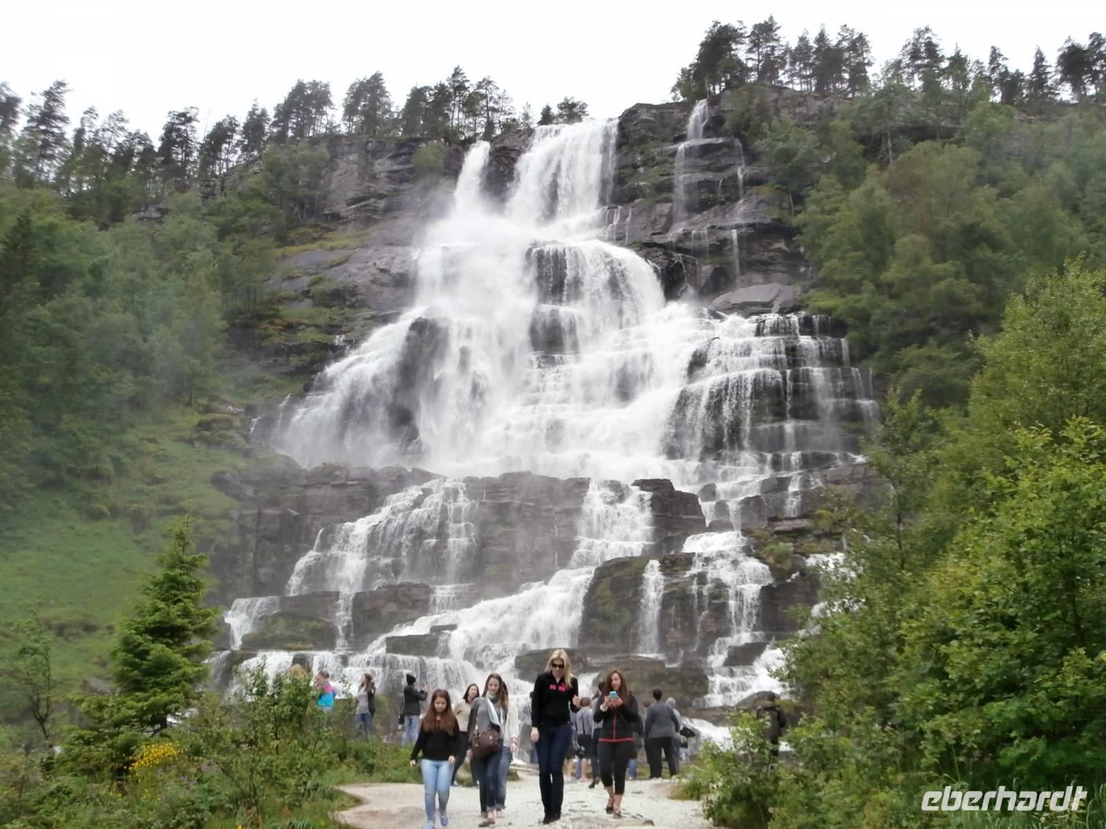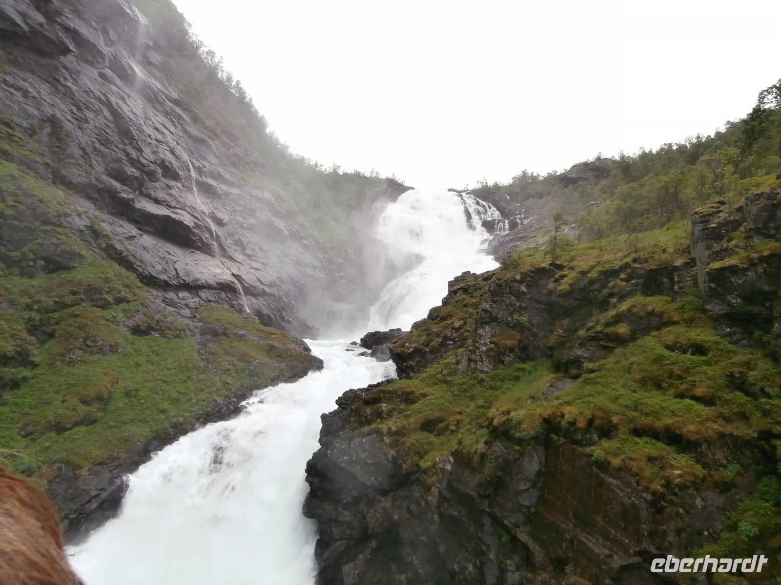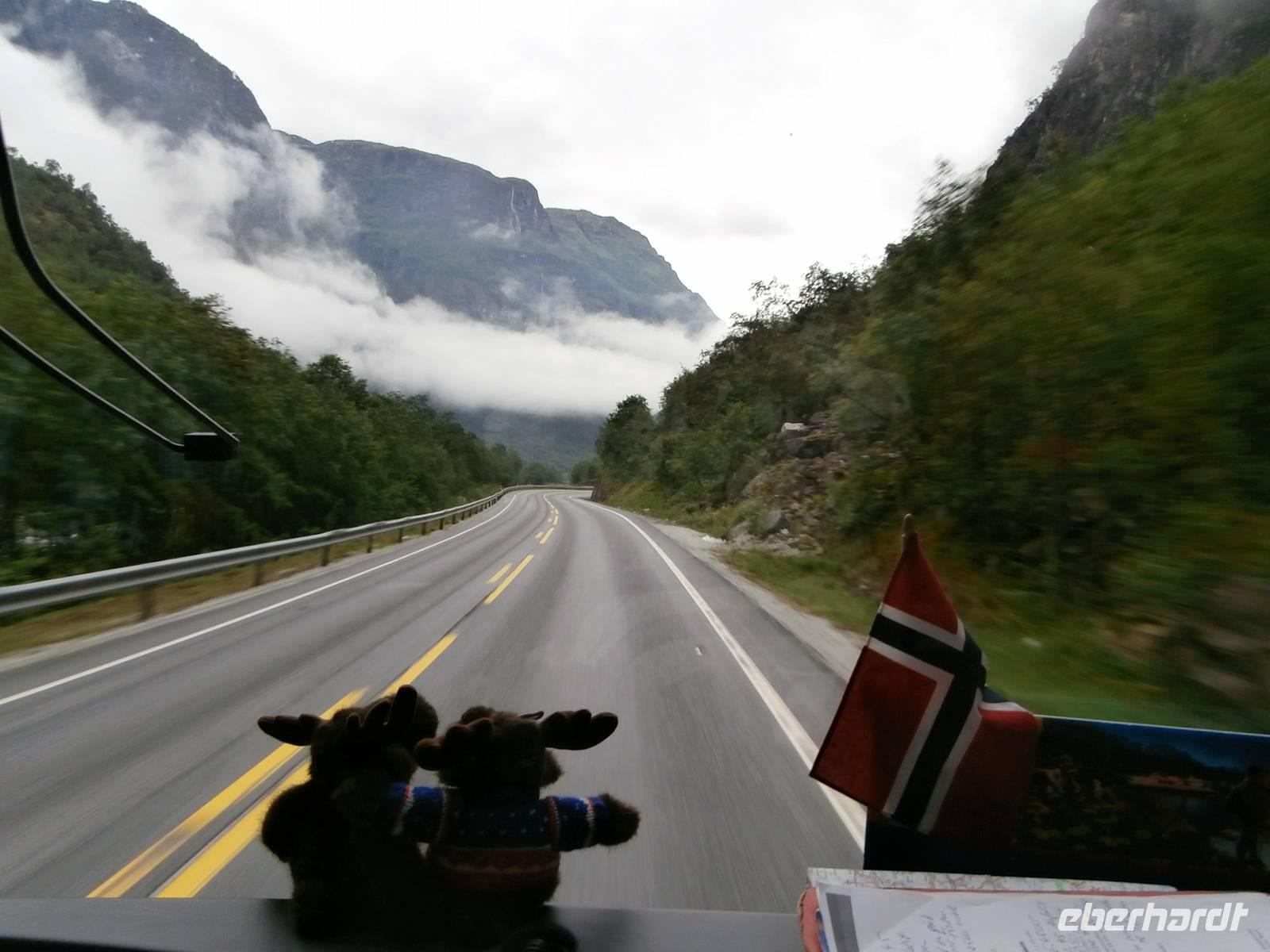 Nach einem vorzüglichem Frühstück im Hotel Rica Bergen machen wir uns auf den Weg aus Bergen heraus nach Voss. Bauarbeiten an der E6 lassen uns nichts an Zeit einbüßen und so sind wir pünktlich am Wasserfall Twindefoss, ein wahrhaft schönes Fotomotiv bietetet er uns. Wir krönen den Nachmittag mit einer Kreuzfahrt im Nærøyfjord und Auerlandsfjord, sie sind Arme des königlichen Sognefjordes. Mit Bildern von steilen Berghängen und kleinen Bauernhöfen, die wie Adlernester auf dem Felsplateau liegen und Wasserfällen, die gut gefüllt sind, gehen wir in Flam von Bord. Im Eisenbahnmuseum von Flam gibt es für uns viel an Informationen zum Bau der Strecke der Flambahn. Und die Fahrt in der Flambahn wird später für uns ein fantastisches Erlebnis. Am Kjosfossen wird ausgestiegen und mit Musik und Tanz der Elfen gibt es den nächsten Höhepunkt des Tages. Mit etwas Verspätung und durchgefroren starten wir in Myrdal mit der Bergenbahn zur Fahrt nach Geilo. Die Bahnfahrt geht direkt durch das weite Gebiet der Hardangervidda, diese beeindruckende Hochebene präsentiert sich als eine seen- und moorreiche, fast baum-und strauchlose Fjell-Landschaft. Leider können wir den uns bietenden Blick in den Gletscher Hardangerjokulen nicht fotografieren, zu schnell ist der Zug wieder im Tunnel verschwunden. Geilo-auch das "Zermatt Norwegens" genannt, ist heute unser Ziel. Im Hotel Bardöla Hoyfjell nächtigen wir und beim Abendbüffet lassen wir uns die Köstlichkeiten des Hauses munden. Im hoteleigenen Schwimmbad lassen einige Gäste den Abend ausklingen.