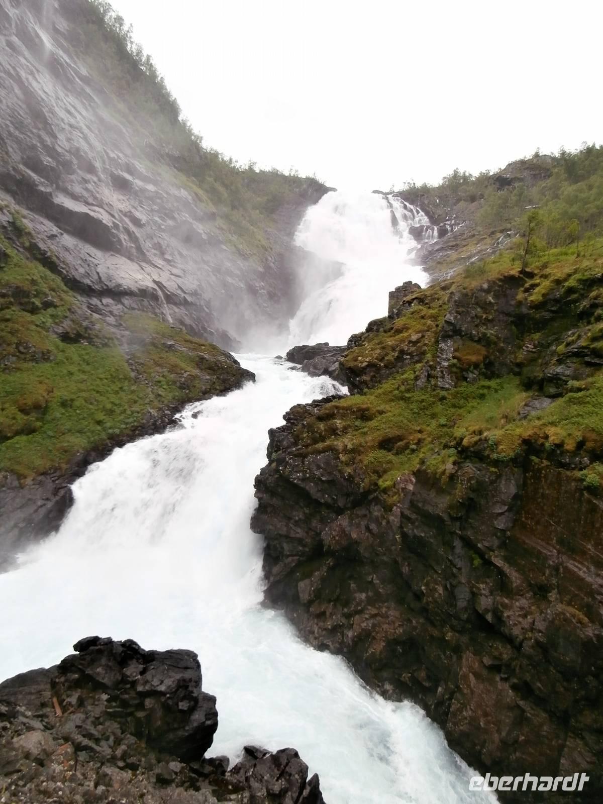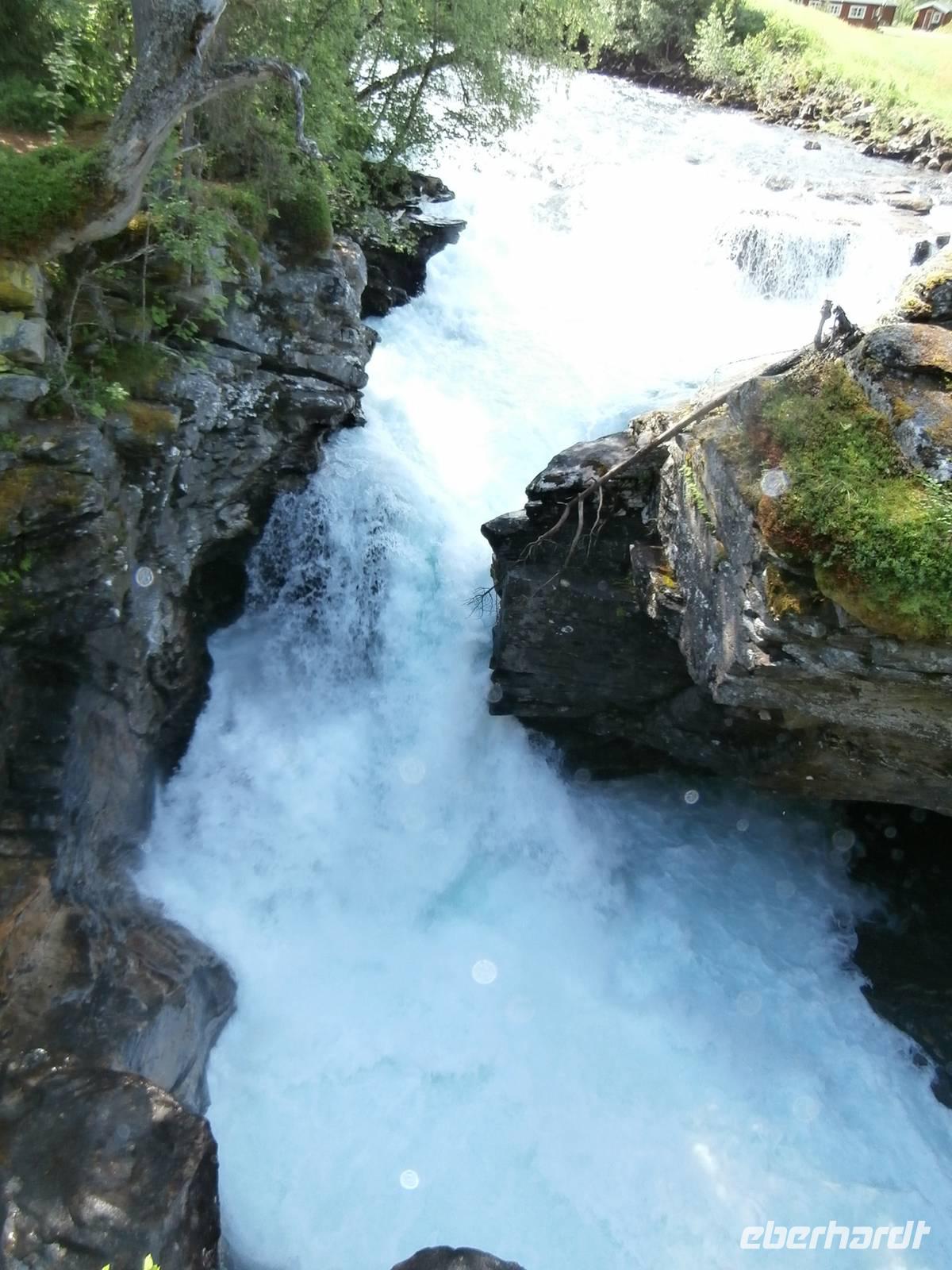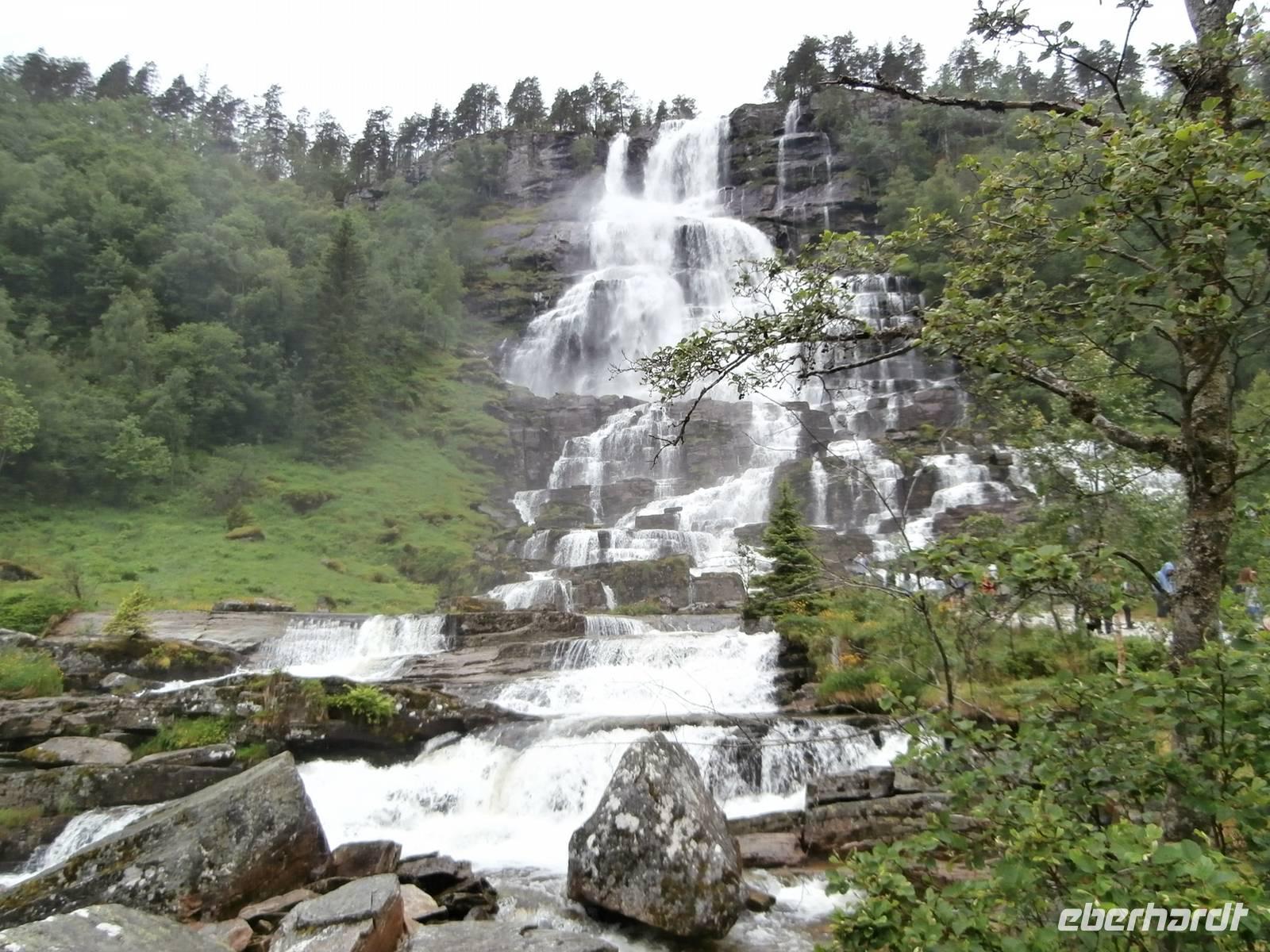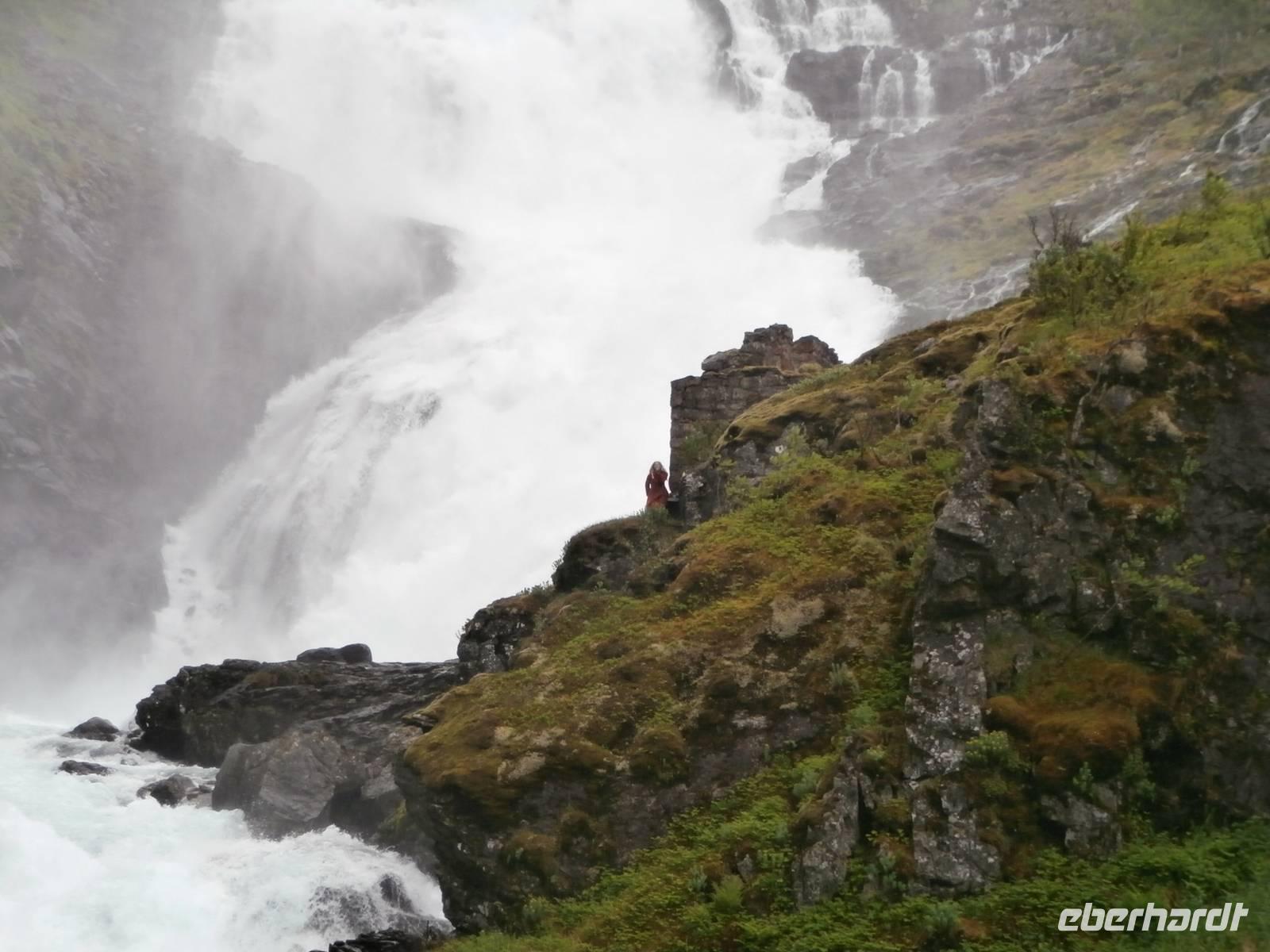 Nach einem vorzüglichem Frühstück im Hotel Rica Bergen machen wir uns auf den Weg aus Bergen heraus nach Voss. Bauarbeiten an der E6 lassen uns nichts an Zeit einbüßen und so sind wir pünktlich am Wasserfall Twindefoss, ein wahrhaft schönes Fotomotiv bietetet er uns. Wir krönen den Nachmittag mit einer Kreuzfahrt im Nærøyfjord und Auerlandsfjord, sie sind Arme des königlichen Sognefjordes. Mit Bildern von steilen Berghängen und kleinen Bauernhöfen, die wie Adlernester auf dem Felsplateau liegen und Wasserfällen, die gut gefüllt sind, gehen wir in Flam von Bord. Im Eisenbahnmuseum von Flam gibt es für uns viel an Informationen zum Bau der Strecke der Flambahn. Und die Fahrt in der Flambahn wird später für uns ein fantastisches Erlebnis. Am Kjosfossen wird ausgestiegen und mit Musik und Tanz der Elfen gibt es den nächsten Höhepunkt des Tages. Mit etwas Verspätung und durchgefroren starten wir in Myrdal mit der Bergenbahn zur Fahrt nach Geilo. Die Bahnfahrt geht direkt durch das weite Gebiet der Hardangervidda, diese beeindruckende Hochebene präsentiert sich als eine seen- und moorreiche, fast baum-und strauchlose Fjell-Landschaft. Leider können wir den uns bietenden Blick in den Gletscher Hardangerjokulen nicht fotografieren, zu schnell ist der Zug wieder im Tunnel verschwunden. Geilo-auch das "Zermatt Norwegens" genannt, ist heute unser Ziel. Im Hotel Bardöla Hoyfjell nächtigen wir und beim Abendbüffet lassen wir uns die Köstlichkeiten des Hauses munden. Im hoteleigenen Schwimmbad lassen einige Gäste den Abend ausklingen.