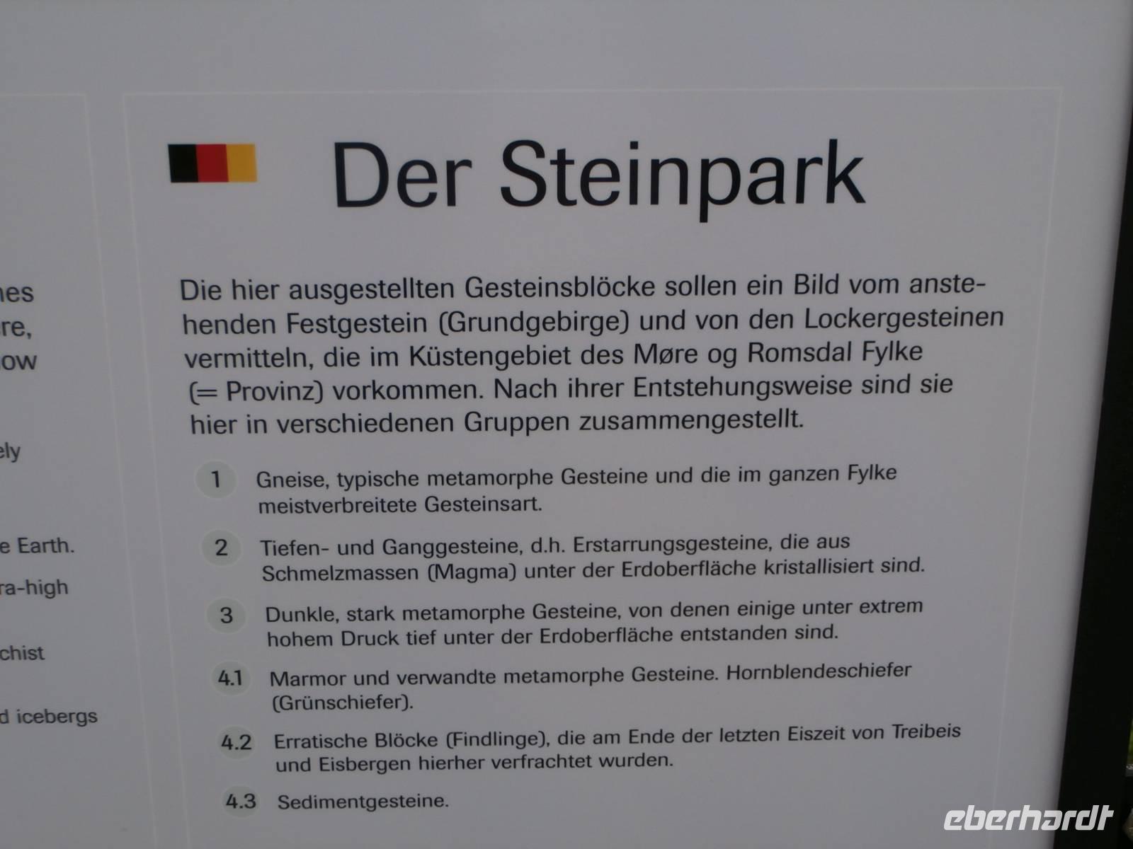 Nach einem vorzüglichen Sonntagsfrühstück verstauen wir wieder unsere Koffer im Bus und fahren zunächst hinauf auf den Serpentinen der „Adlerstraße" bis zum Örnesvingen und hier haben wir beim Fotostopp herrliche Aussichten auf den Geirangerfjord, in dem heute Morgen schon ein Kreuzfahrtschiff zu sehen ist. Nach einer kurzen Fährüberfahrt von Eidsdal nach Linge kommen wir an den großartigen Tafjord, der ein Seitenarm des Storfjordes ist. Fjorde sind das gewisse Etwas in Skandinavien, was aber zeichnet dieses Gewässer aus? Ein Fjord ist ein Berg und ein Fluss, die sich in einer viele tausend Jahre zurückliegenden Eiszeit miteinander verbunden haben. Weiter geht es durch das romantische Valldal, das Zentrum des Erdbeeranbaus. Vorbei am Canyon Gudbrandsjuvet, hier machen wir einen Fotostopp, das Meierdal führt uns hinauf zum Plateau der "Trollstige,"es ist unser nächster Höhepunkt. Bei traumhaftem Wetter erleben wir fantastische Ausblicke und einen Sektempfang unseres Reiseveranstalters Eberhardt Travel. Wir machen uns auf den Weg, die von hohen Gipfeln und tiefen Schluchten umgebene Bergstraße Trollstige, die ihren Namen von der Volkssage um die dort "hausenden Trolle" erhalten hat, bei der Bergabfahrt zu erkunden. Die 11 Haarnadelkurven überwinden wir mit Hochachtung vor der Fahrkunst unseres Fahrers Frank. In Andalsnes am Endpunkt der Raumabahn, sie soll eine der schönsten Eisenbahnstrecken Norwegens sein, erleben wir am Nachmittag unsere Bahnfahrt durch die wildromantische Landschaft des Romsdals nach Björli. Wir passieren viele Wasserfälle, fahren durch zahlreiche Tunnel und sehen die imposante Trollwand, Europas höchste Steilwand. In Dombas kehren wir zum Abendessen ein, denn bis Orkanger ist unser Weg noch weit. Über das einsam wirkende Dovrefjell setzen wir unsere Fahrt fort. Schon immer mussten die Könige den beschwerlichen Weg auf dem Fjell nehmen, um in Trondheim ihre Weihe zu bekommen. Es ist daher auch der Königswegen-der historische Königs- und Pilgerweg nach Trondheim. Spät gegen elf treffen wir im historischen Hotel Bardshaug Herregard ein. Schnell sind die Zimmer bezogen und müde fallen wir alle in unsere Betten.