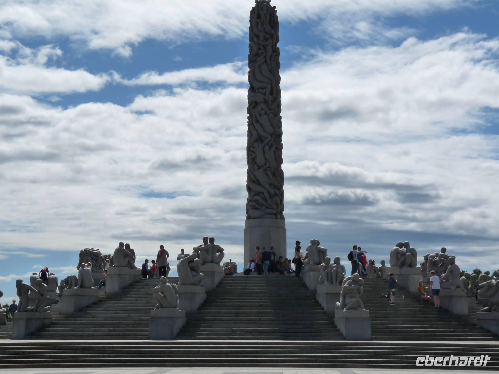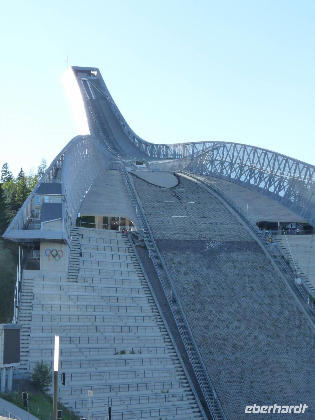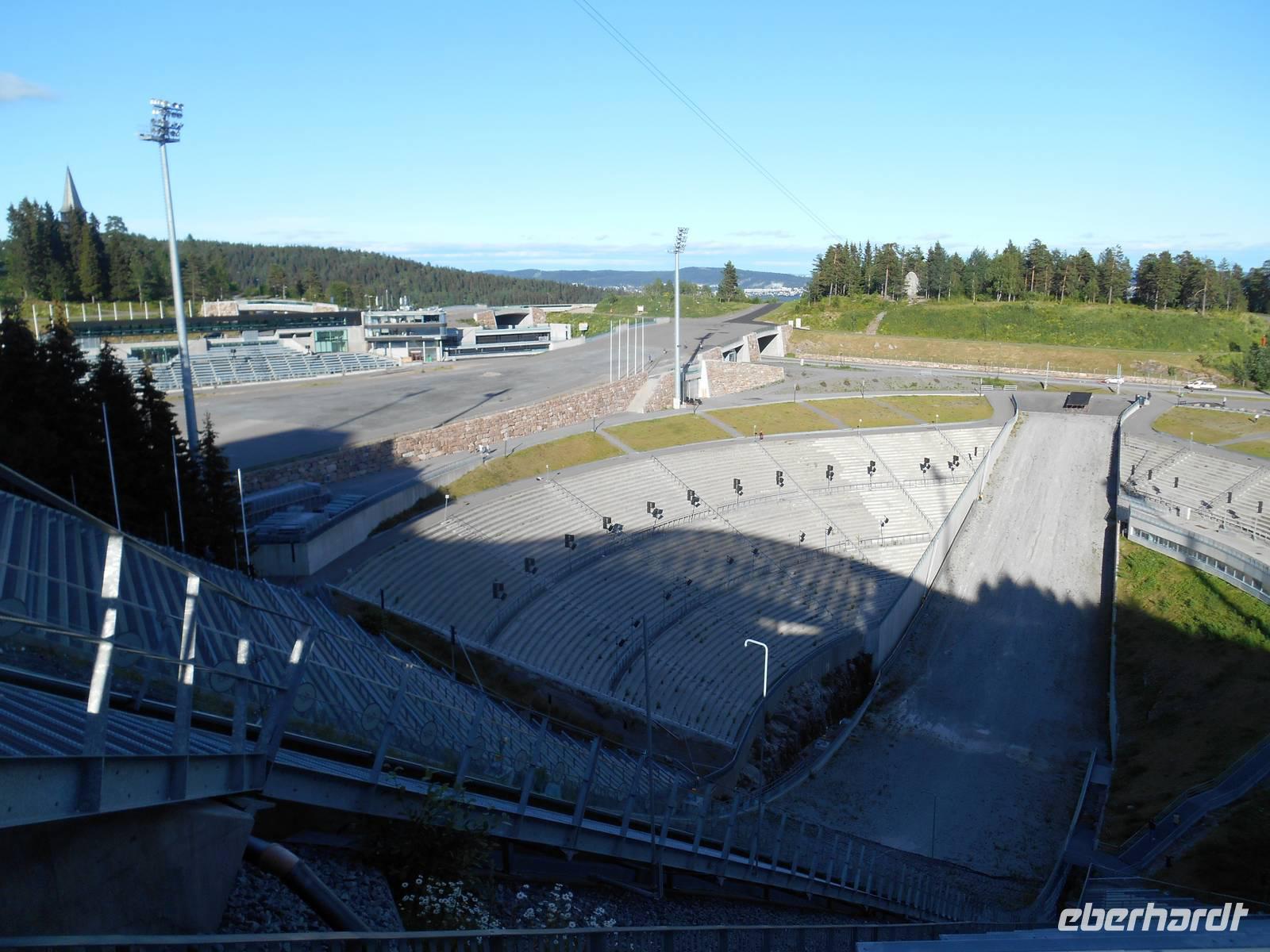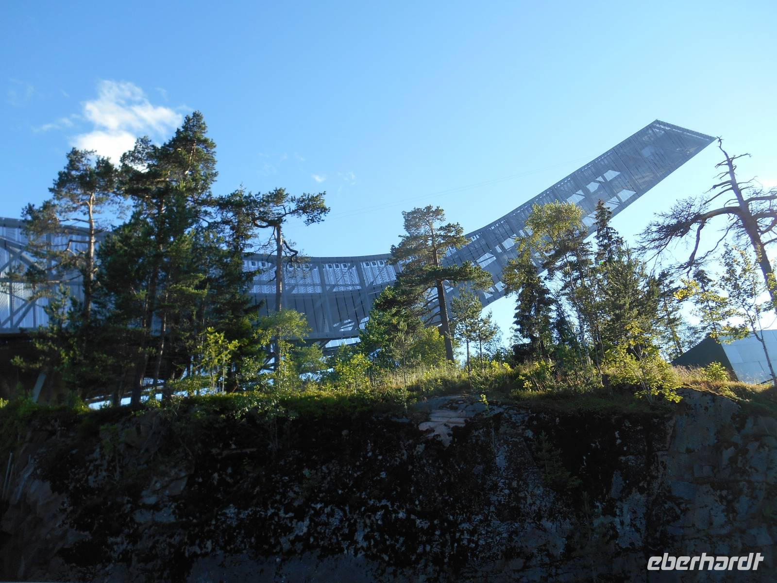 Am Morgen setzten wir unsere Reise durch das fruchtbare Hallingdal fort, welches uns bis zum Nordende des reichlich 40 km langen Krøderen-Sees führte. Vorbei an Hønefoss und entlang des Tyrifjordes erreichten wir am Mittag schließlich Oslo, der Hauptstadt Norwegens. Während einer Führung lernten wir die wichtigsten Sehenswürdigkeiten der Stadt kennen. Wir sahen unter anderem das Neue Opernhaus, das seit April 2008 die Spielstätte der Norwegischen Oper ist. Des Weiteren fuhren wir am Königlichen Palast vorbei und besuchten den berühmten Vigeland-Park. Der norwegische Künstler Gustav Vigeland hat hier Beeindruckendes geschaffen. Wer in Oslo den Skulpturenpark betritt, ist für einen Moment atemlos vor Staunen! Mit dem 32 Hektar großen Areal hat Vigeland sich den Traum vieler Künstler erfüllt - er hat ein Gesamtkunstwerk geschaffen. Die dargestellten Menschen und Tiere sind so lebensecht, so voller Bewegung und Emotion, dass man meint, sie atmen zu sehen! Im Anschluss an die Stadtrundfahrt hatten wir noch etwas Freizeit in der Innenstadt - die meisten Gäste besuchte (wie ich übrigens auch) das Osloer Rathaus. Das Osloer Rathaus habe ich zunächst immer nur vom Bus aus betrachtet und dachte mir, was ist das doch für ein scheußlicher Klotz... Tritt man dann allerdings durch die reich verzierte Eingangstür, vorbei am Empfang, findet man sich in einer riesigen Halle, einem großen Festsaal wieder. Der leere Saal ist sehr imposant, vor allem weil jede Wand mit einem riesigen Gemälde geschmückt ist. So etwas habe ich noch nirgends gesehen! Künstler wie Edvard Munch, Henrik Sørensen oder auch Axel Revold haben sich hier verewigt. Und das Beste - den Saal kennt bestimmt ein jeder (zumindest aus dem Fernsehen), denn hier wird alljährlich am 10. Dezember der Friedensnobelpreis verliehen. Fotos zeigen, wie es hier ausschaut, wenn die Prominenz aus aller Herren Länder plus Medienvertreter zusammen kommen. Hat man sich unten satt gesehen, gibt es ein Stockwerk höher noch weitere Räume zu bewundern, alle ebenfalls reich bemalt. Das Rathaus kann übrigens kostenfrei besichtigt werden - ein echter Geheimtipp! Zum Abschluss des Tages ging es den ca. 400 m über der Stadt gelegenen Holmenkollen hinauf. Hoch über der Stadt Oslo ragt die neue Holmenkollen Skisprunganlage, die modernste Sprungschanze der Welt. Ein imposantes Bauwerk aus Stahl und Beton! Leider hatten wir heute etwas Pech, denn der Schrägaufzug war defekt, der uns eigentlich auf den Schanzenturm bringen sollte! Von dessen höchster Stelle man nämlich einen spektakulären Ausblick auf Oslo und den Oslofjord hat - schade, ließ sich allerdings nicht ändern! In unmittelbarer Nachbarschaft, im „Scandic Holmenkollen Park Hotel", verbrachten wir unsere letzte Nacht auf norwegischen Boden. Zum Abendessen wurde uns auch hier ein skandinavisches Buffet gereicht und danach konnten wir von den Aussichtsterrassen des Hotels nochmals den einzigartigen Blick auf die Stadt und den Oslofjord genießen.
