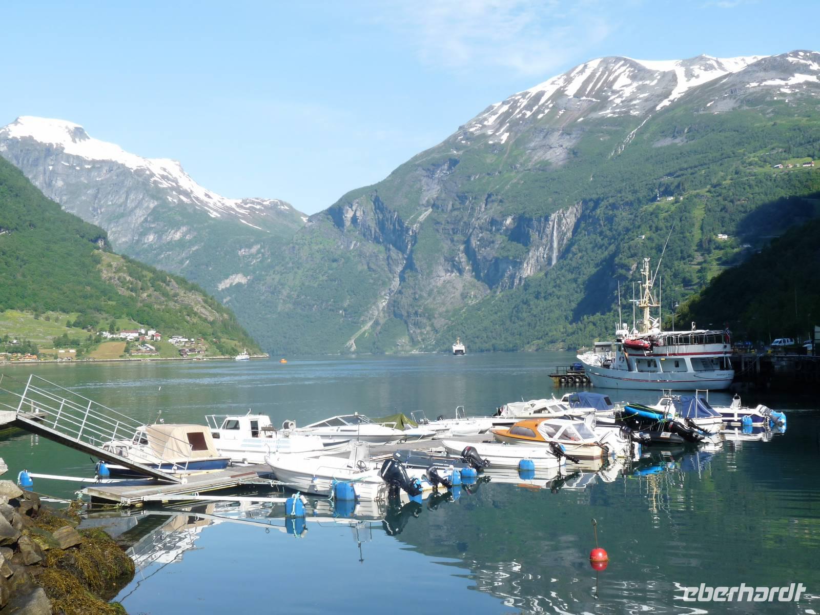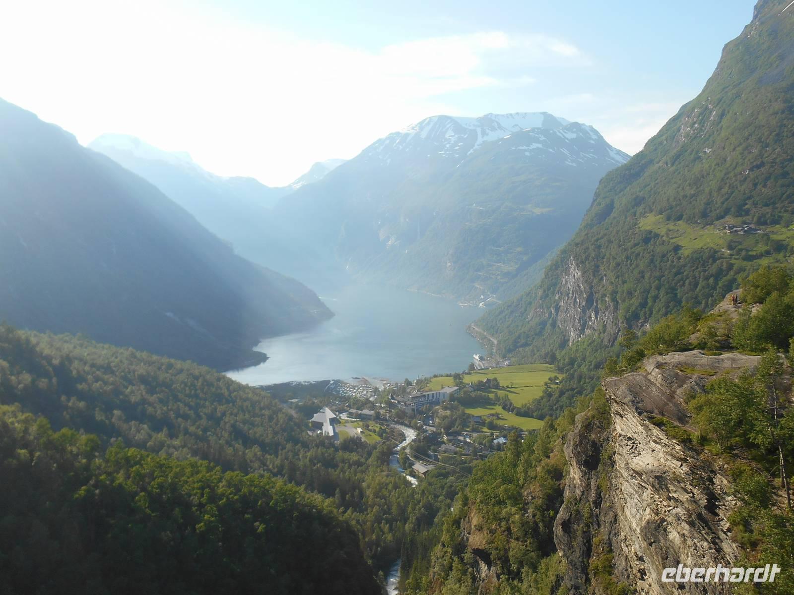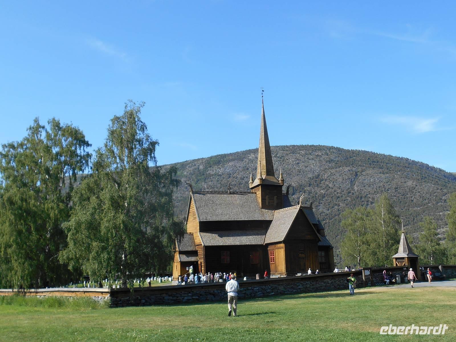 Am Vormittag besuchten wir das hiesige Eisenbahnmuseum, es ist übrigens das einzige Museum dieser Art in ganz Norwegen! Zuerst beschäftigten wir uns mit der Hauptausstellung und begaben uns dort gemeinsam mit dem Museumsführer Roar auf eine kurze Reise durch die norwegische Eisenbahngeschichte. Anschließend wurden wir auf eine Fahrt auf Norwegens kürzeste Eisenbahnstrecke eingeladen - diese ist nur wenige hundert Meter lang, und die Fahrt mit der mit Holzpellets befeuerten Dampflok war ein absoluter Höhepunkt! Auch die prächtigen Bahnhofsgebäude im Museumspark sorgten für eine geschichtsträchtige Eisenbahn-Atmosphäre. Gegen Mittag ging es weiter vorbei am Mjøsa-See, dem mit einer Fläche von 362 km² und einer Länge von 117 km größten See Norwegens, nach Lillehammer. Hier besuchten wir die Schanzenanlagen. Das Wetter war sonnig und damit nutzten einige Gäste unserer Gruppe die Gelegenheit, um mit dem Sessellift zum Schanzenturm hinauf zu fahren. Die Stadt war 1994 Austragungsort der Olympischen Winterspiele und dafür wurden damals zahlreiche neue Sportanlagen errichtet. Am frühen Nachmittag fuhren wir bereits weiter, denn schließlich lag noch ein weiter Weg bis Geiranger vor uns! Wir erlebten nun eine landschaftlich beschauliche Fahrt durch das Gudbrandsdal, das sogenannte „Tal der Täler", das vom Fluss Lågen bestimmt wird. Die Route führte uns ab Otta westwärts durch das Ottatal bis Lom. Hier besuchten wir am späten Nachmittag eine der bedeutendsten noch existierenden Stabkirchen Norwegens. Wer ist nicht fasziniert, wenn er vor einer alten, völlig aus Holz gebauten Stabkirche steht, deren Giebeldächer steil übereinander geschichtet sind. Aus den Giebeln weisen oft stilisierte Drachenköpfe, die eher an Asien erinnern, in alle Himmelsrichtungen. Von den einst angeblich fast 1.000 Stabkirchen sind keine dreißig mehr erhalten. Noch Mitte des 19. Jahrhunderts fehlte den Gemeinden in Norwegen jedes Verständnis über den Wert der alten Gebäude, die in großer Zahl abgerissen wurden, zumal sie auch zu klein geworden waren. Nach einer weiteren landschaftlich sehr reizvollen Fahrt kamen wir am Abend im Hotel „Geiranger" in Geiranger an - der Blick von hier auf den Fjord ist absolut phantastisch! Der Geirangerfjord ist immerhin etwa 16 Kilometer lang und das Aushängeschild des norwegischen Tourismus schlechthin. Ein langer, aber sehr erlebnisreicher Tag ging hier zu Ende.