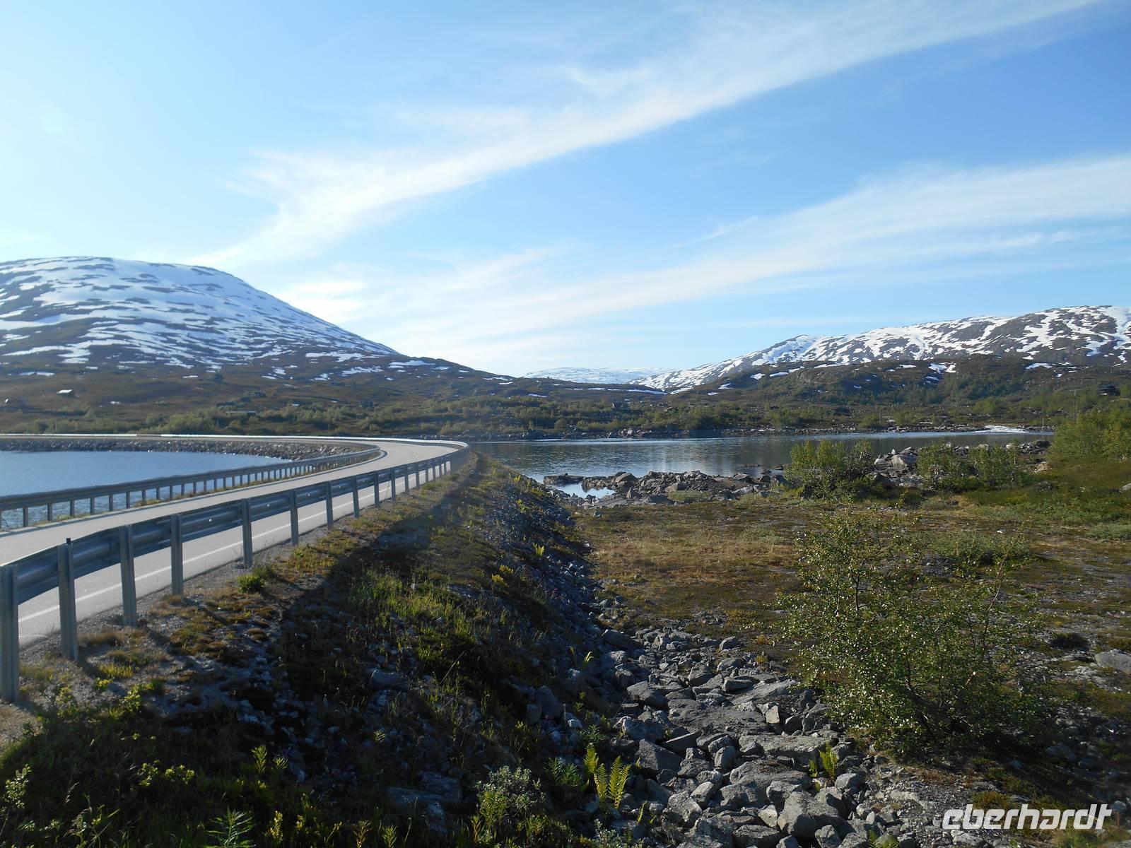 Nach einem reichhaltigen Frühstücksbuffet an Bord kamen wir pünktlich um 9.15 Uhr im Hafen von Göteborg an. Wir fuhren mit der Fähre durch die Älvsborgsbron, die wir dann wenig später mit dem Bus befuhren. Göteborgs „Golden Gate-Bridge" verbindet das Stadtzentrum mit Hisingen, der viertgrößten Insel Schwedens. Die Brücke wurde 1966 eingeweiht, ist 900 Meter lang und so hoch, dass sie Schiffe mit einer Masthöhe von bis zu 45 Meter passieren können. Da wir allerdings heute genügend Zeit hatten, unternahmen wir kurzerhand einen kleinen Abstecher in den Schärengarten nördlich von Göteborg - wir fuhren über die Inseln Tjörn und Orust - hier ist man wahrlich mitten in der Wunderwelt der Schären! Beide Inseln sind miteinander verbunden und liegen etwa 60 km nördlich von Göteborg. Sie sind vom Festland aus über die imposante Tjörn-Brücke zu erreichen. Der E6 folgten wir ab Uddevalla anschließend weiter in Richtung schwedisch-norwegischer Grenze. Am frühen Nachmittag erreichten wir schließlich den Svinesund bzw. Halden, den norwegischen Grenzort, wo wir dann erstmalig norwegischen Boden betraten. Vorbei an Oslo und entlang des Mjøsa-Sees führte uns die Reise weiter in das am Ostufer des Mjøsa-Sees gelegene Hamar, wo wir auch übernachteten. Hamar ist die größte Binnenstadt des Landes und gleichzeitig das Verwaltungszentrum der Provinz Hedmark. Bevor wir allerdings in unserem Hotel „Scandic Hamar" eincheckten, legten wir noch einen Fotostopp am berühmten „Wikingerschiff", der Olympiahalle von Hamar ein. Sie ist eine der größten Eislaufhallen der Welt und wurde für die Olympischen Spiele in Lillehammer 1994 erbaut. Den Namen hat sie aufgrund der von den Architektenbüros Biong & Biong und Niels Torp vorgeschlagenen Form eines umgestürzten Wikingerschiffs bekommen. Die freitragende Dachkonstruktion, ohne Tragpfeiler im Innenfeld, bietet einen uneingeschränkten Blick auf das Geschehen und ermöglicht eine vielseitige Nutzung des Innenraumes. Nach dem Abendessen konnten wir noch einen Spaziergang zum nur etwa zehn Gehminuten vom Hotel entfernten See unternehmen - besonders am Abend ist dies sehr stimmungsvoll!