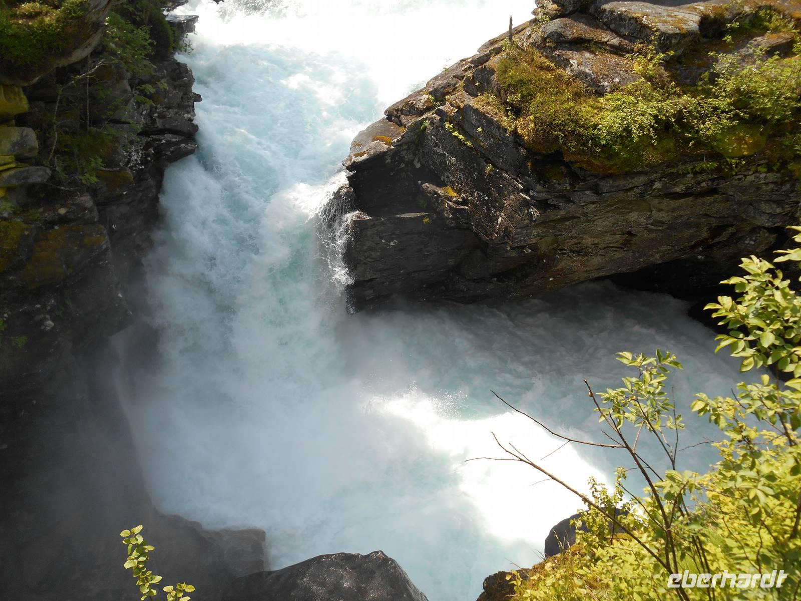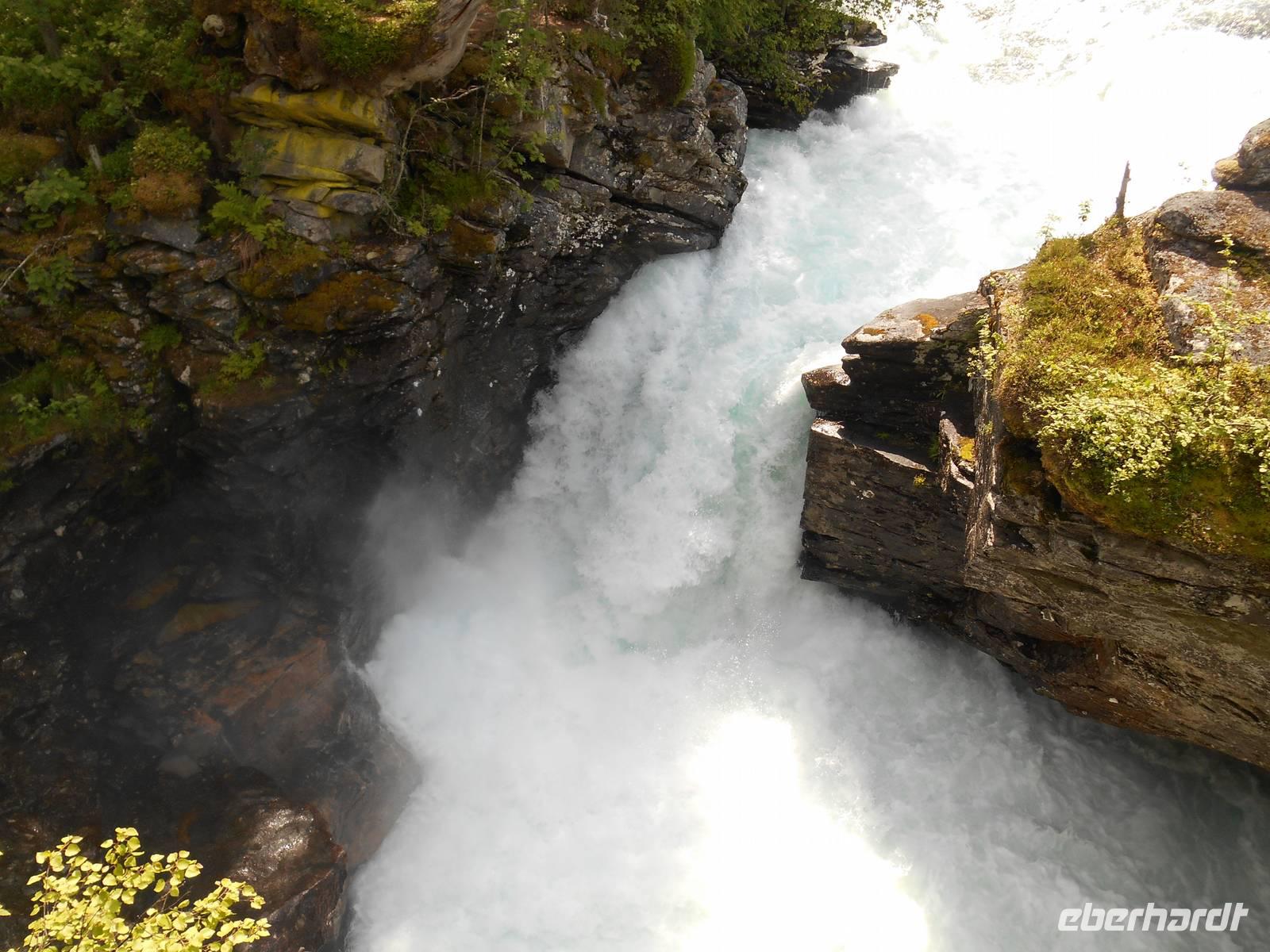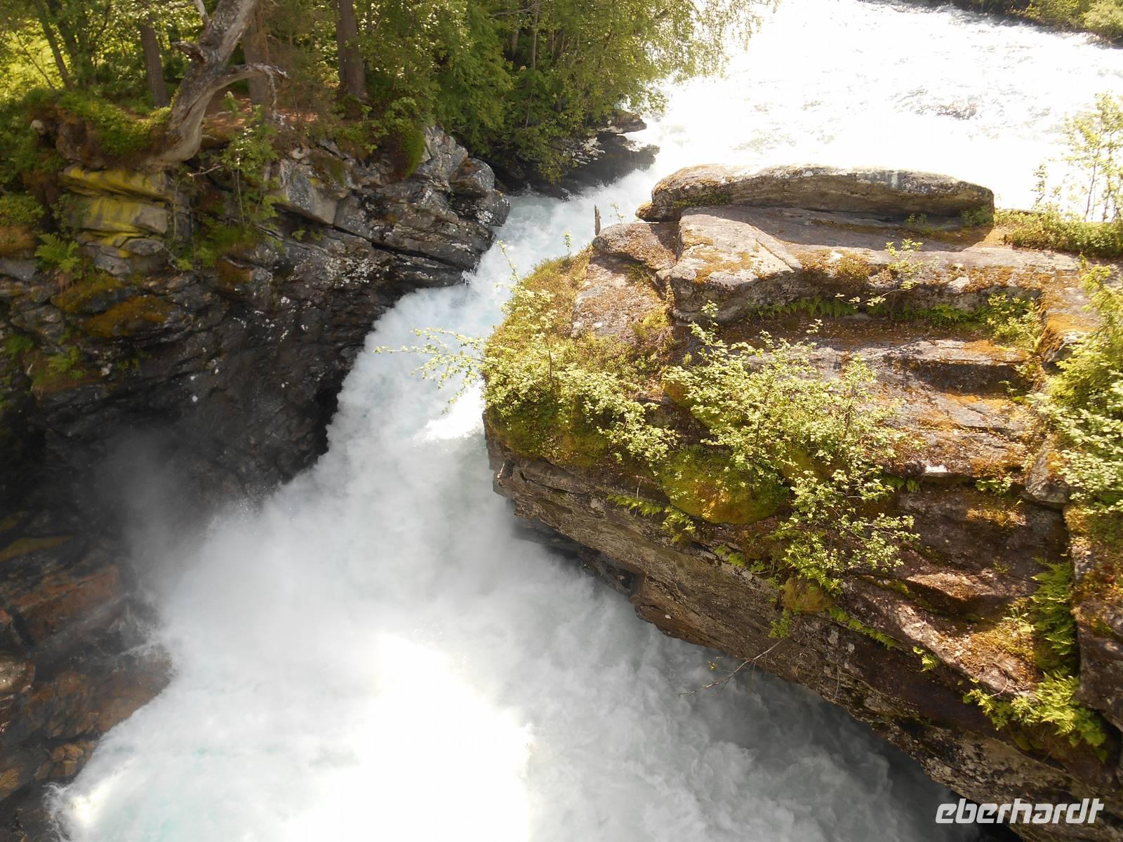 Heute war erst einmal „Ausschlafen" angesagt, denn unser Tag startete erst um 10 Uhr. Wir fuhren weiter auf dem von Geiranger in Richtung Norden führenden Teil des Rv 63, welcher als „Adlerstraße" bezeichnet wird. In elf Serpentinen führt die beeindruckende Straße von Meeresniveau auf 600 Höhenmeter hinauf. An der obersten Serpentine ist ein kleiner Parkplatz, von dem wir einen wunderbaren Blick in den Fjord und in der Ferne sogar auf den berühmten Wasserfall „Sieben Schwestern" hatten. Außerdem konnten wir von hier oben ein Kreuzfahrtschiff beobachten, welches den Ort Geiranger ansteuerte (MS Costa Pacifica). Geiranger ist nämlich heute absolut touristisch geprägt. Die Ankunft bzw. Anwesenheit eines großen Kreuzfahrtschiffes ist immer wieder eine große Attraktion - erst dann bekommt der Geirangerfjord das bekannten „Flair"! Die Schiffe laufen meist morgens ein und verschwinden am Abend wieder. Nach nochmals spektakulären Blicken auf den Geigangerfjord sollte es nun allerdings weiter in Richtung Trollstigen gehen. Nachdem wir mit einer Fähre den Norddalsfjord von Eidsdal nach Linge überquert hatten, steuerten wir vorerst die imposante Gudbrands-Schlucht an, durch die der Fluß Valldøla fließt und dabei einen sehr bizarren Verlauf aus Wasserfall und Stromschnellen nimmt. Die Landschaft hier ist unbeschreiblich schön und die umgebenden Berge sind schroff - Namen wie Kongen (König), Dronningen (Königin) und Bispen (Bischoff) bestätigen die Majestät dieser Bergwelt. Hoch oben stürzt sich der Stigfossen ins üppig grüne Isterdal, und mittendurch steigt die Trollstigen-Straße an der Bergseite empor. Nach einer Bauzeit von acht Jahren wurde der Trollstigen 1936 eröffnet und selbst heute ist die Straße ein gutes Beispiel für hohe Ingenieur- und Baukunst. Übersetzen könnte man den Namen „Trollstigen" übrigens mit „Zauberweg". Was sind nun eigentlich Trolle? - Es sind im nordischen Volksglauben Dämonen in Riesengestalt. Bereits seit grauer Vorzeit leben in den Bergen und in den alten Hünengräbern Norwegens die Trolle. Sie sind - wie auch die Wichteln und Zwerge - elbische Wesen. Ihre Herkunft ist unbekannt. Einem Geistlichen, der sie vertreiben wollte, klagten sie einmal, sie seien herabgestürzte Engel. Einer anderen Geschichte zufolge sind sie Nachkommen der alten Riesen, die immer weiter geschrumpft sind und weiter schrumpfen. Die Trolle sind gedrungene, plumpe, erdfarbene Wesen mit mächtigen Knollennasen; manche haben einen Schwanz und einen zotteligen Pelz. Die Kleider sind grün wie das Moos an einem Waldsee oder grau wie die Flechten auf den Fjellen. Es ist nicht leicht, Bekanntschaft mit einem Troll zu machen - das gelingt angeblich nur um die Mittagszeit geborenen Sonntagskindern oder den neunten Kindern von Eltern, die selbst neunte Kinder ihrer Eltern waren. Und das ist auch gut so! Es gibt nämlich ganz unterschiedliche Trolle. Die einen sind den Menschen freundlich und wohlgesonnen. Sie sind gutmütige Geschöpfe, die oft in der Nähe von Menschen wohnen und nachbarschaftlichen Umgang pflegen. Ihnen zu begegnen ist eine Freude und ein besonderes Erlebnis. Andere Trolle aber sind sehr böse, und vor ihnen muss man sich in Acht nehmen. Die norwegischen Bauern wissen ein Lied davon zu singen, wenn das Trollweib zur Saatzeit als Wirbelwind über den Acker fegt und mit ihrem Kleid die Saat auffängt. Auch vertauschen manche Trolle die Kinder der Menschen und legen an ihrer Stelle ein Trollkind unter, einen missgestalteten Wechselbalg. Es gibt also viel zu berichten über die Trolle..., wir mussten aber weiter... Am Bahnhof in Åndalsnes erwartete uns bereits die Raumabahn. Diese Erlebnistour mit der Bahn entführte uns in eine spektakuläre Berggegend Norwegens! Nach über 40 Jahren Planung, bekam Nordwestland mit der Eröffnung der Raumabahn seine erste Eisenbahn am 29. November 1924. Der Bau der Bahn stieß auf große Herausforderungen, u. a. die großen Höhenunterschiede zwischen der Eisenbahn und den Talgründen. Über dem Fluss Rauma wurde das unike Bauwerk Kylling Brücke in Gneisgranit errichtet. 10 Jahre dauerte der Bau und deutet von großer Ingenieurskunst. Seit der Eröffnung vor über 80 Jahren hat die Raumabahn Touristen von und zu den Kreuzfahrtschiffen im Romsdalsfjord gebracht, transportierte sie das Gold der Norwegischen Bank im 2. Weltkrieg und funktionierte als Nachtzug mit Postbetrieb bis zum Jahre 2000. Der Zug fährt über das schöne Romsdalen und passiert die steilen Berge und exzellente Baukunst; folgt dem Lachsfluss Rauma mit seinen wilden Wassern... Wir bekamen die Trollwand (Trollveggen) zu sehen und kreuzten an die 30 Brücken, unter ihnen auch die imponierende Kylling Brücke. Um die Steigung zu schaffen, nimmt die Bahn eine 180 Grad Drehung im Berg, bevor die Tour weitergeht. In Bjorli, einem beliebten Wintersportgebiet und bekannt für lange Winter mit Schneegarantie, stiegen wir auf unseren Bus um, um nach Dombås weiter zu fahren, wo wir übernachteten.