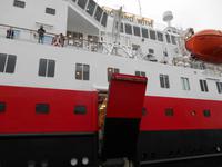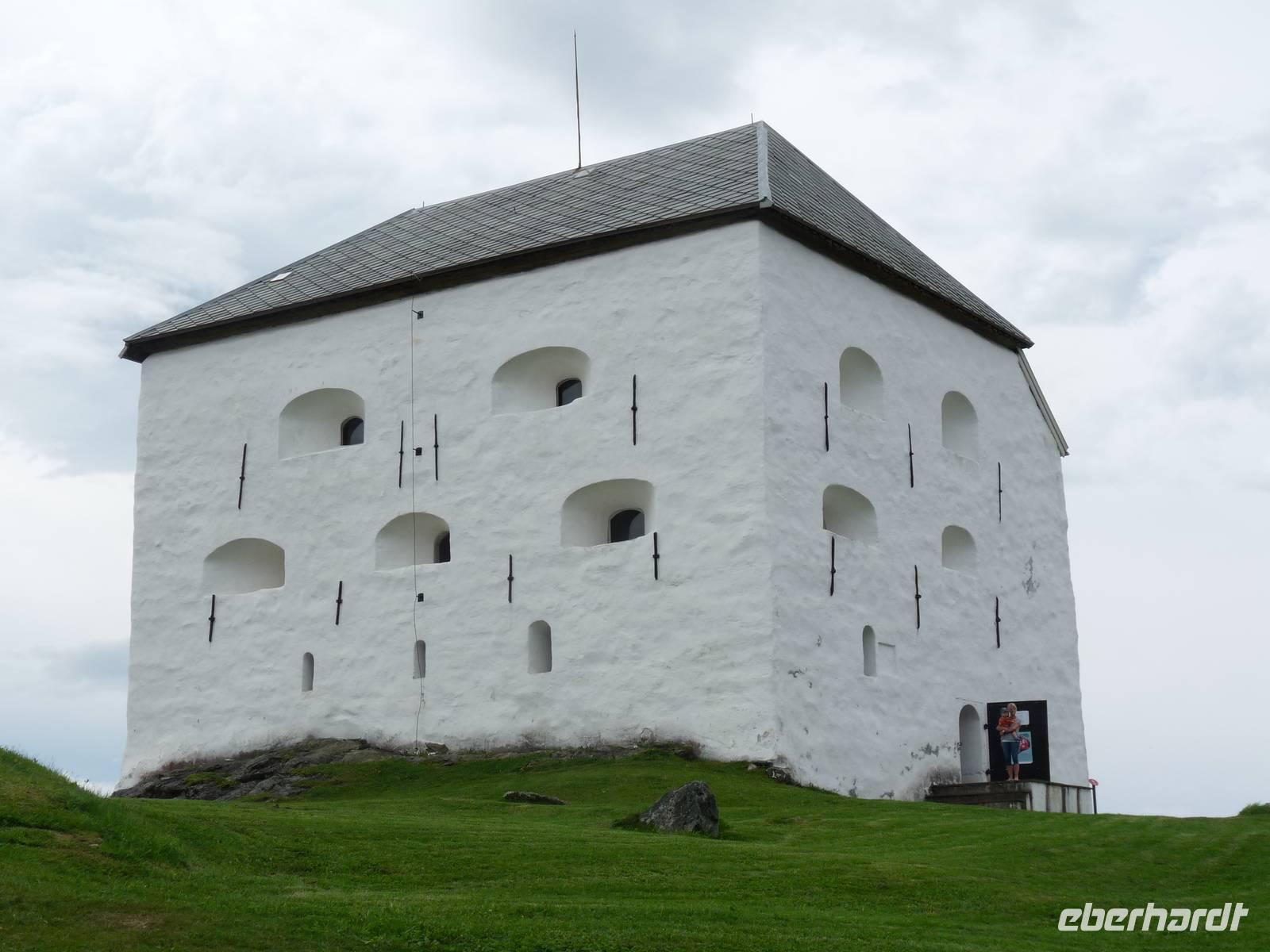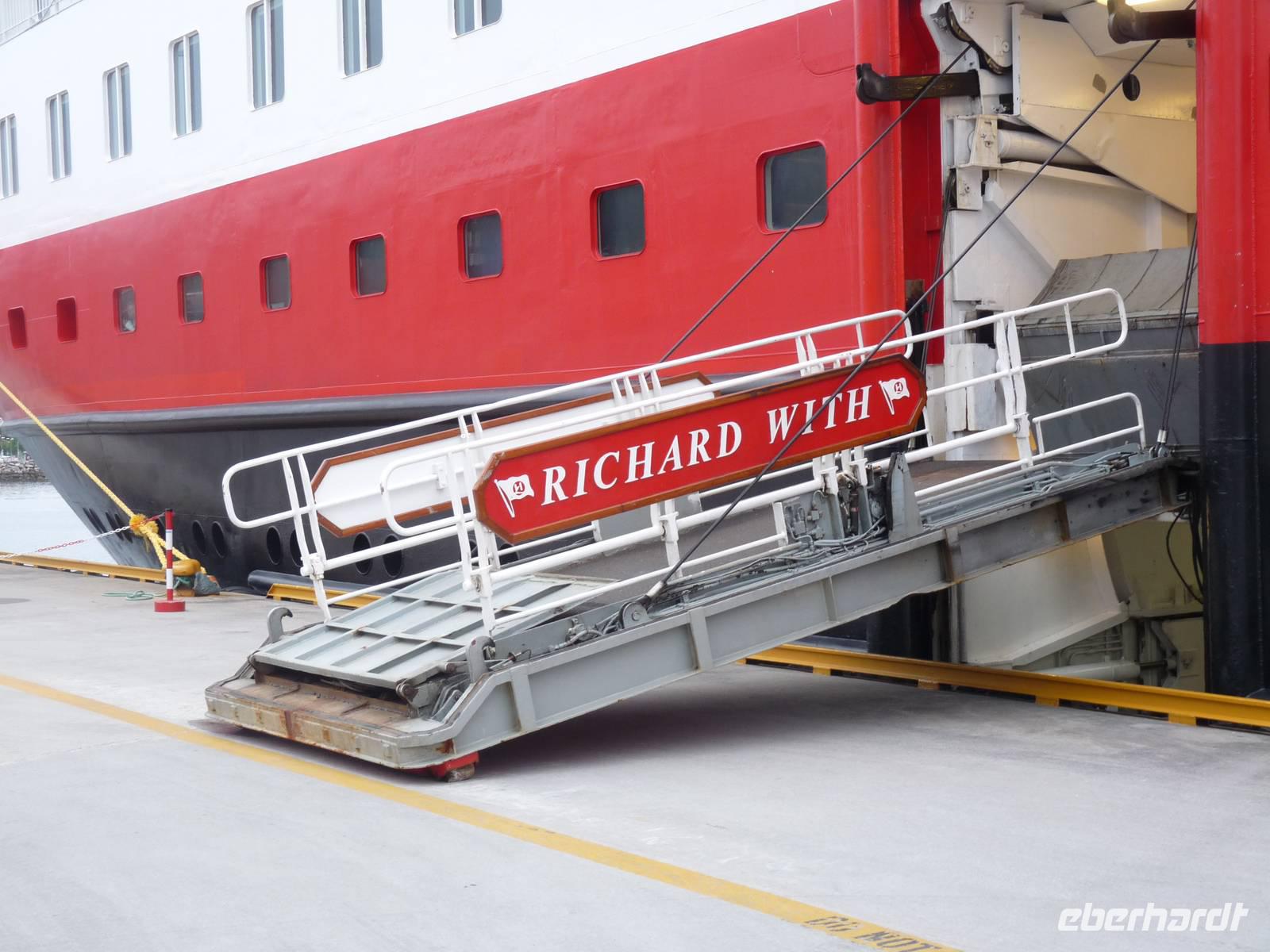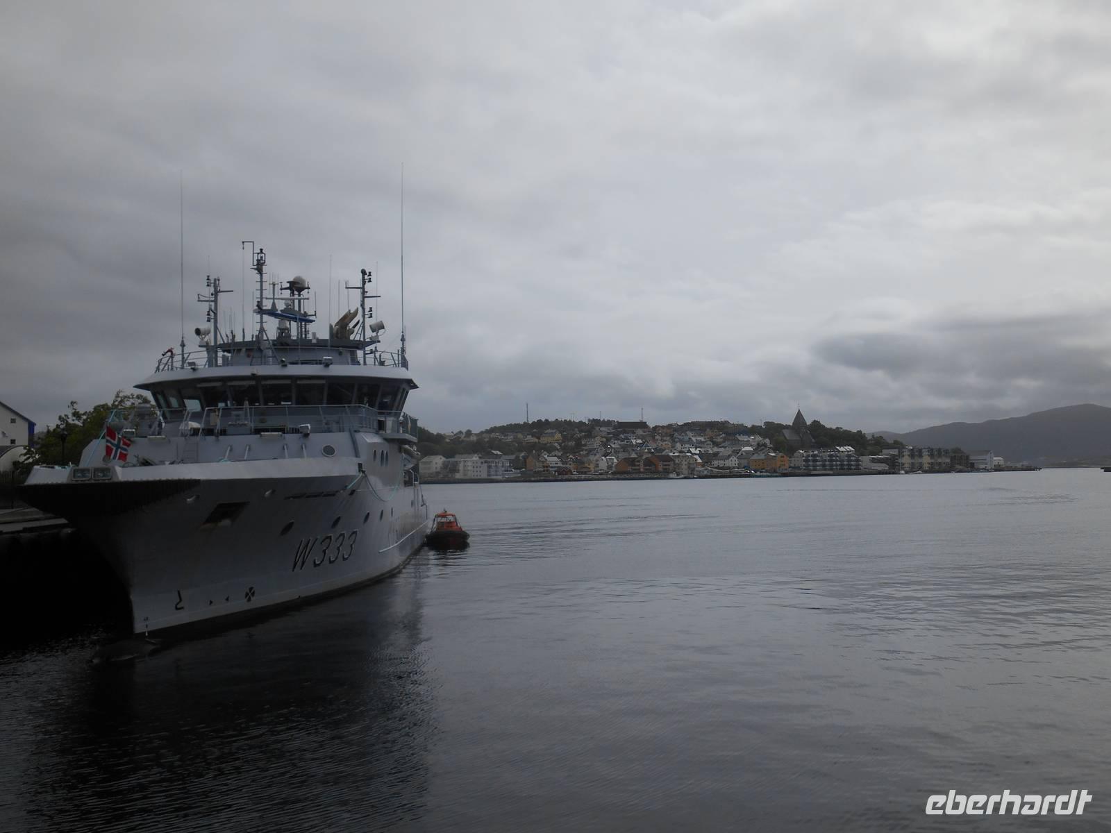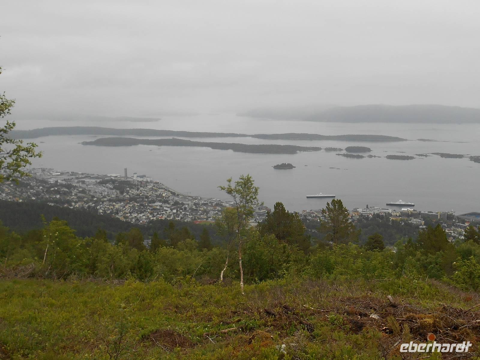 Heute starteten wir wieder gegen 8 Uhr, denn wir hatten volles Programm! Leider regnete es wieder ununterbrochen - es konnte nur besser werden! Am Vormittag stand eine kurze Fährüberfahrt von Halsa nach Kanestraum und damit die Überquerung des Halsafjordes an. Weiter ging es in Richtung Kristiansund und damit natürlich auch über mehrere interessante Brücken, so u. a. der Bergsøysundbrücke. Sie ist eine der wenigen permanenten Pontonbrücken Europas und schwimmt auf sieben Pontons aus Leichtbeton mit einem Tiefgang von vier Metern. Die Brücke ist 845 m lang und wurde 1992 eröffnet. Nach einem weiteren Fotostopp mit Blick auf die imposante Gjemnesund-Hängebrücke kamen wir am Mittag in Kristiansund an, wo wir einen kleinen Spaziergang durch die Stadt unternahmen. Terrassenförmig steigt die auf mehreren Inseln errichte Stadt mit ca. 17.000 Einwohnern vom namensgebenden Sund in die Höhe. Man sagt, Kristiansund sei „auf Klippfisch gebaut". Die „Klippfisch-Metropole" war nämlich lange Zeit der Hauptausfuhrhafen für gesalzenen und getrockneten Kabeljau, der früher auf den Klippen getrocknet wurde - daher der Name. Die bekannteste Skulptur der Stadt, das sog. „Klippfischweib", ist eine Homage an alle Klippfischarbeiter. Das Denkmal war ein Geschenk zum 250. Stadtgeburtstag (1992) und wurde von Ihrer Majestät Königin Sonja enthüllt. Von Kristiansund aus setzten wir unsere Fahrt durch den Atlantiktunnel, einem im Dezember 2009 eröffneten und 5.469 Meter langen unterseeischen Straßentunnel (größte Tiefe 243 Meter!), fort. Plötzlich waren wir auf der Insel Averøy, einer der größten Fischereigemeinden Norwegens in einer traumhaft schönen Lage am Meer. Die Küste ist von unzähligen Inseln, Holmen und Schären geprägt. Nun erwartete uns ein weiterer Höhepunkt unserer Reise - die Fahrt auf der Atlantikstraße! Die Strecke wurde 2005 zum Bauwerk des Jahrhunderts in Norwegen gekürt. Dies ist eine einzigartige Straße, die uns bis ans offene Meer führte. Die etwa 8 Kilometer lange Strecke mit gigantischen Brücken und zahlreichen Dämmen wurde 1989 eröffnet und verbindet die Insel Averøy mit dem Festland. Am späten Nachmittag erreichten wir Molde, unser heutiges Etappenziel. Dort angekommen, führte uns der Weg vorerst zum Varden, dem 407 Meter hohen Hausberg von Molde. Hier oben konnten wir das bekannte „Moldepanorama" genießen, denn man hat einen herrlichen Blick über den Fjord und im „Normalfall" auch auf die schneebedeckten Gipfel der Romsdaler Alpen - wir hatten übrigens leider kein großes Glück mit der Sicht, denn die Berge waren kaum auszumachen! Echt schade! Bevor wir unser heutiges Abendessen im hiesigen „EGON-Restaurant" einnahmen, unternahmen einige Gäste noch einen ausgiebigen Spaziergang durch die sogenannte „Stadt der Rosen". Aufgrund des günstigen Lokalklimas können hier nämlich etliche Arten von Rosen besonders üppig wachsen. Der Hurtigruten-Kai von Molde war um 21 Uhr auch der Ausgangspunkt unserer Mini-Kreuzfahrt auf einem der Postschiffe! Unser Schiff, die MS „Richard With", wurde nach dem berühmten norwegischen Kapitän und Hurtigruten-Gründer benannt. Ihm ist es zu verdanken, dass die legendäre Postschifflinie zu einem wesentlichen Bestandteil des norwegischen Küstenlebens geworden ist. Die „Richard With" nahm ihren Dienst 1993 auf, genau ein Jahrhundert nach der ersten Hurtigruten Fahrt. Nachdem wir alle unsere Kabinen bezogen hatten, verbrachten wir die Nacht auf See! Wer Norwegen hautnah erleben will, der sollte unbedingt die Hurtigruten kennenlernen. Es handelt sich dabei um die traditionelle norwegische Postschifflinie, über die seit Ende des 19. Jahrhunderts die Ortschaften der westlichen Küste Norwegens, die etwa 2.700 Kilometer umfasst, miteinander verbunden werden. Zwischen Bergen und Kirkenes kreuzen hier Passagier-, Fracht- und Kreuzfahrtschiffe. Diese Strecke bietet somit eine einmalige Gelegenheit, die gesamte Westküste Norwegens mit all ihren Naturschönheiten kennenzulernen. Fjorde, raue und liebliche Landschaften und die Gastfreundschaft der Menschen machen Hurtigruten heute zu einer echten Touristenattraktion und was einst aus der Not heraus geboren wurde, nämlich auch abgelegene nördliche Landesteile mit dem klimatisch begünstigten Süden zu verbinden, ist inzwischen eine Sehenswürdigkeit. Natürlich erlebten wir auf unserer ca. 17-stündigen Fahrt nur eine kleine Etappe dieser eigentlich 12-tägigen Reise, aber immerhin hat man dadurch einen Eindruck von der sogenannten „Schönsten Seereise der Welt".