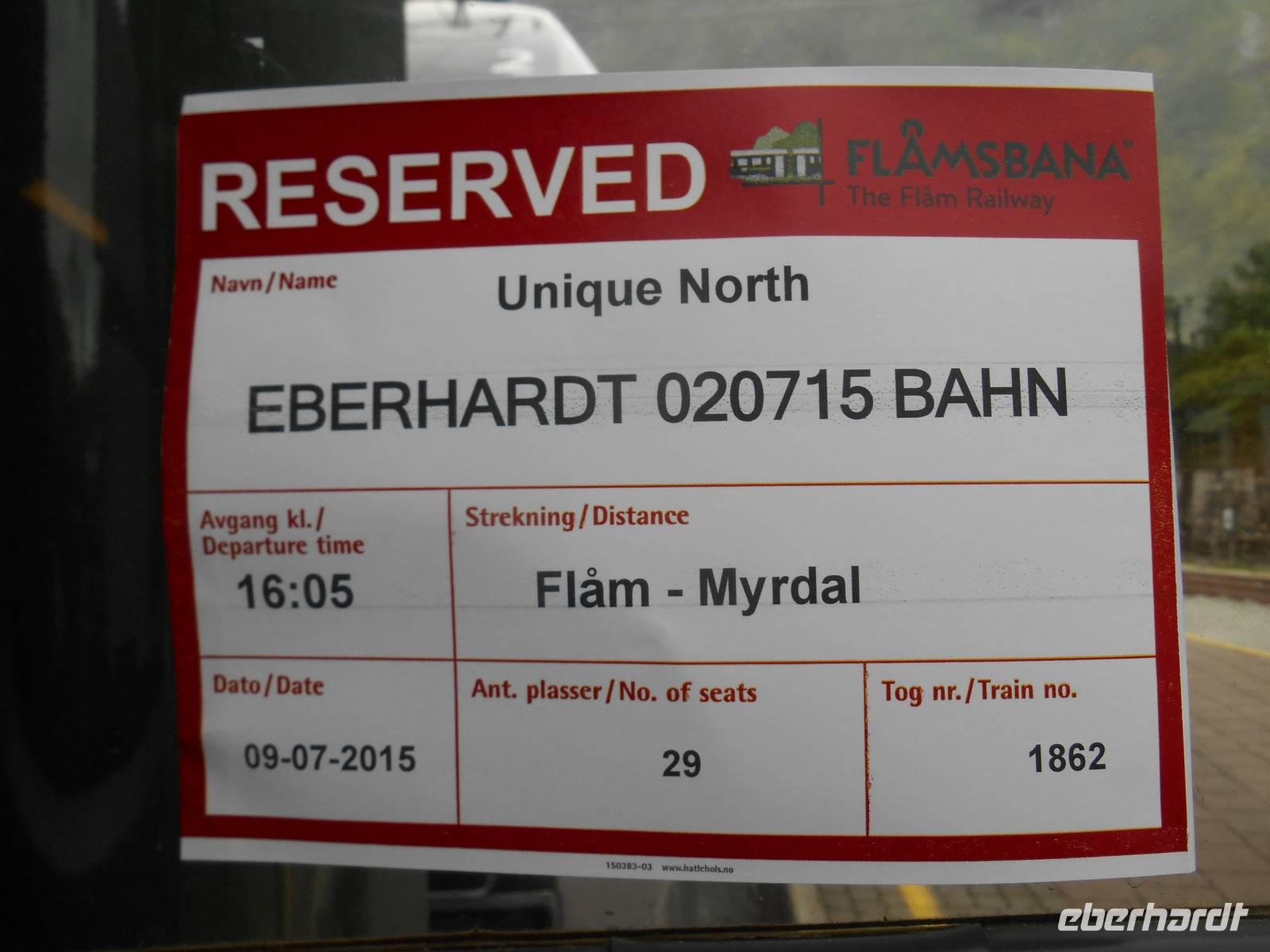 8. Tag – Donnerstag, 09.07.2015: Nærøyfjord/Aurlandsfjord – Flåmbahn – Bergenbahn (182 Bus–km / 20 Bahn–km mit der Flåmbahn + 84 Bahn–km mit der Bergenbahn)