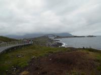Heute starteten wir gemütlich gegen 9 Uhr. Leider regnete es wieder einmal ununterbrochen - es konnte nur besser werden! Am Vormittag stand eine kurze Fährüberfahrt von Halsa nach Kanestraum und damit die Überquerung des Halsafjordes an. Weiter ging es in Richtung Kristiansund und damit natürlich auch über mehrere interessante Brücken, so u. a. der Bergsøysundbrücke. Sie ist eine der wenigen permanenten Pontonbrücken Europas und schwimmt auf sieben Pontons aus Leichtbeton mit einem Tiefgang von vier Metern. Die Brücke ist 845 m lang und wurde 1992 eröffnet. Nach einem weiteren Fotostopp mit Blick auf die imposante Gjemnesund-Hängebrücke kamen wir am Mittag in Kristiansund an, wo wir einen kleinen Spaziergang durch die Stadt unternahmen. Terrassenförmig steigt die auf mehreren Inseln errichte Stadt mit ca. 17.000 Einwohnern vom namensgebenden Sund in die Höhe. Man sagt, Kristiansund sei "auf Klippfisch gebaut". Die "Klippfisch-Metropole" war nämlich lange Zeit der Hauptausfuhrhafen für gesalzenen und getrockneten Kabeljau, der früher auf den Klippen getrocknet wurde - daher der Name. Die bekannteste Skulptur der Stadt, das sog. "Klippfischweib", ist eine Homage an alle Klippfischarbeiter. Das Denkmal war ein Geschenk zum 250. Stadtgeburtstag (1992) und wurde von Ihrer Majestät Königin Sonja enthüllt. Von Kristiansund aus setzten wir unsere Fahrt durch den Atlantiktunnel, einem im Dezember 2009 eröffneten und 5.469 Meter langen unterseeischen Straßentunnel (größte Tiefe 243 Meter!), fort. Plötzlich waren wir auf der Insel Averøy, einer der größten Fischereigemeinden Norwegens in einer traumhaft schönen Lage am Meer. Die Küste ist von unzähligen Inseln, Holmen und Schären geprägt. Nun erwartete uns ein weiterer Höhepunkt unserer Reise - die Fahrt auf der Atlantikstraße! Die Strecke wurde 2005 zum Bauwerk des Jahrhunderts in Norwegen gekürt. Dies ist eine einzigartige Straße, die uns bis ans offene Meer führte. Die etwa 8 Kilometer lange Strecke mit gigantischen Brücken und zahlreichen Dämmen wurde 1989 eröffnet und verbindet die Insel Averøy mit dem Festland. Am späten Nachmittag erreichten wir Molde, unser heutiges Etappenziel. Dort angekommen, führte uns der Weg vorerst zum Varden, dem 407 Meter hohen Hausberg von Molde. Hier oben konnten wir das bekannte "Moldepanorama" genießen, denn man hat einen herrlichen Blick über den Fjord und im "Normalfall" auch auf die schneebedeckten Gipfel der Romsdaler Alpen - wir hatten übrigens leider kein großes Glück mit der Sicht, denn die Berge waren kaum auszumachen! Echt schade! Bevor wir unser heutiges Abendessen im hiesigen "EGON-Restaurant" einnahmen, unternahmen einige Gäste noch einen ausgiebigen Spaziergang durch die sogenannte "Stadt der Rosen". Aufgrund des günstigen Lokalklimas können hier nämlich etliche Arten von Rosen besonders üppig wachsen. Der Hurtigruten-Kai von Molde war um 21.30 Uhr auch der Ausgangspunkt unserer Mini-Kreuzfahrt auf einem der Postschiffe! Unser Schiff, die MS "Richard With", wurde nach dem berühmten norwegischen Kapitän und Hurtigruten-Gründer benannt. Ihm ist es zu verdanken, dass die legendäre Postschifflinie zu einem wesentlichen Bestandteil des norwegischen Küstenlebens geworden ist. Die "Richard With" nahm ihren Dienst 1993 auf, genau ein Jahrhundert nach der ersten Hurtigruten Fahrt. Nachdem wir alle unsere Kabinen bezogen hatten, verbrachten wir die Nacht auf See! Wer Norwegen hautnah erleben will, der sollte unbedingt die Hurtigruten kennenlernen. Es handelt sich dabei um die traditionelle norwegische Postschifflinie, über die seit Ende des 19. Jahrhunderts die Ortschaften der westlichen Küste Norwegens, die etwa 2.700 Kilometer umfasst, miteinander verbunden werden. Zwischen Bergen und Kirkenes kreuzen hier Passagier-, Fracht- und Kreuzfahrtschiffe. Diese Strecke bietet somit eine einmalige Gelegenheit, die gesamte Westküste Norwegens mit all ihren Naturschönheiten kennenzulernen. Fjorde, raue und liebliche Landschaften und die Gastfreundschaft der Menschen machen Hurtigruten heute zu einer echten Touristenattraktion und was einst aus der Not heraus geboren wurde, nämlich auch abgelegene nördliche Landesteile mit dem klimatisch begünstigten Süden zu verbinden, ist inzwischen eine Sehenswürdigkeit. Natürlich erlebten wir auf unserer ca. 17-stündigen Fahrt nur eine kleine Etappe dieser eigentlich 12-tägigen Reise, aber immerhin hat man dadurch einen Eindruck von der sogenannten "Schönsten Seereise der Welt".