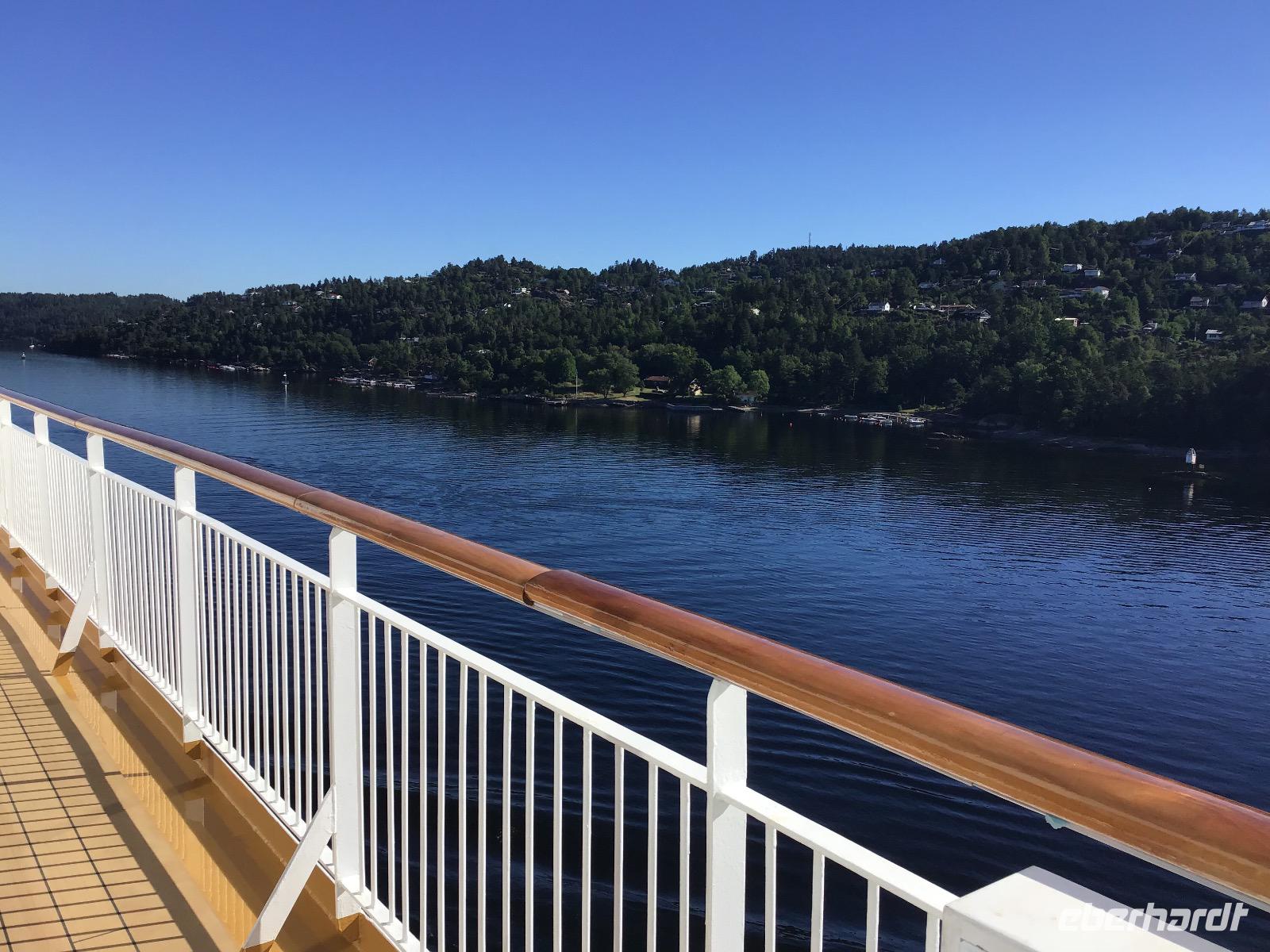 Nachdem wir unsere Fluggäste am Bahnhof verabschiedet haben, bleibt noch Zeit für eigene Erkundungen in Oslo. Aber dann heißt es auch für uns - Abschied nehmen. Noch einmal genießen wir die komfortable Überfahrt mit der Color Line zurück nach Kiel. Das Wetter wird langsam durchwachsen, es zeigen sich ein paar dunkle Wolken und ab und zu regnet es auch ein Tröpfchen.