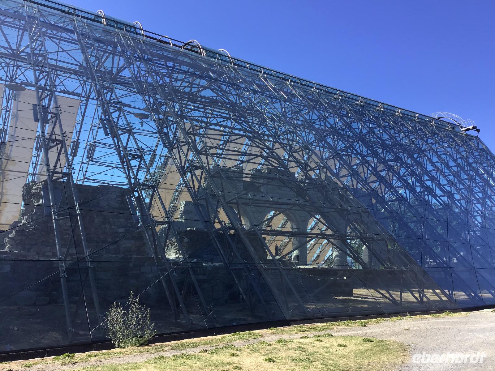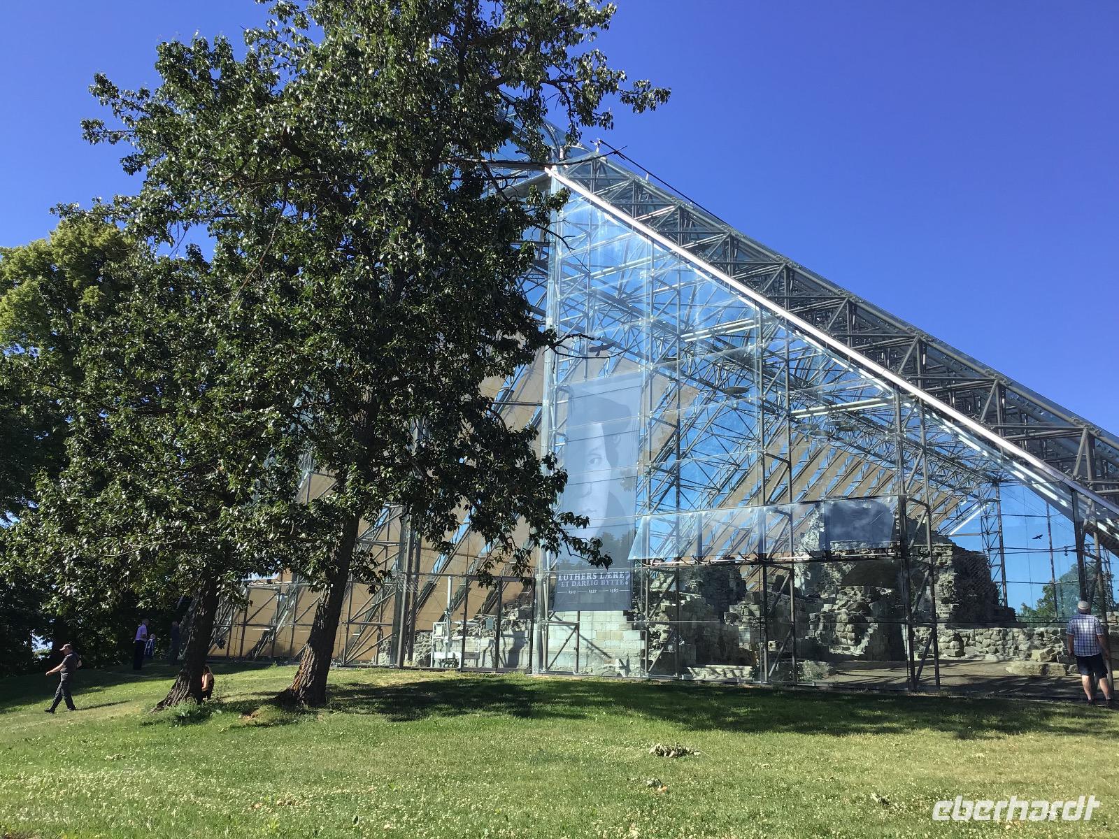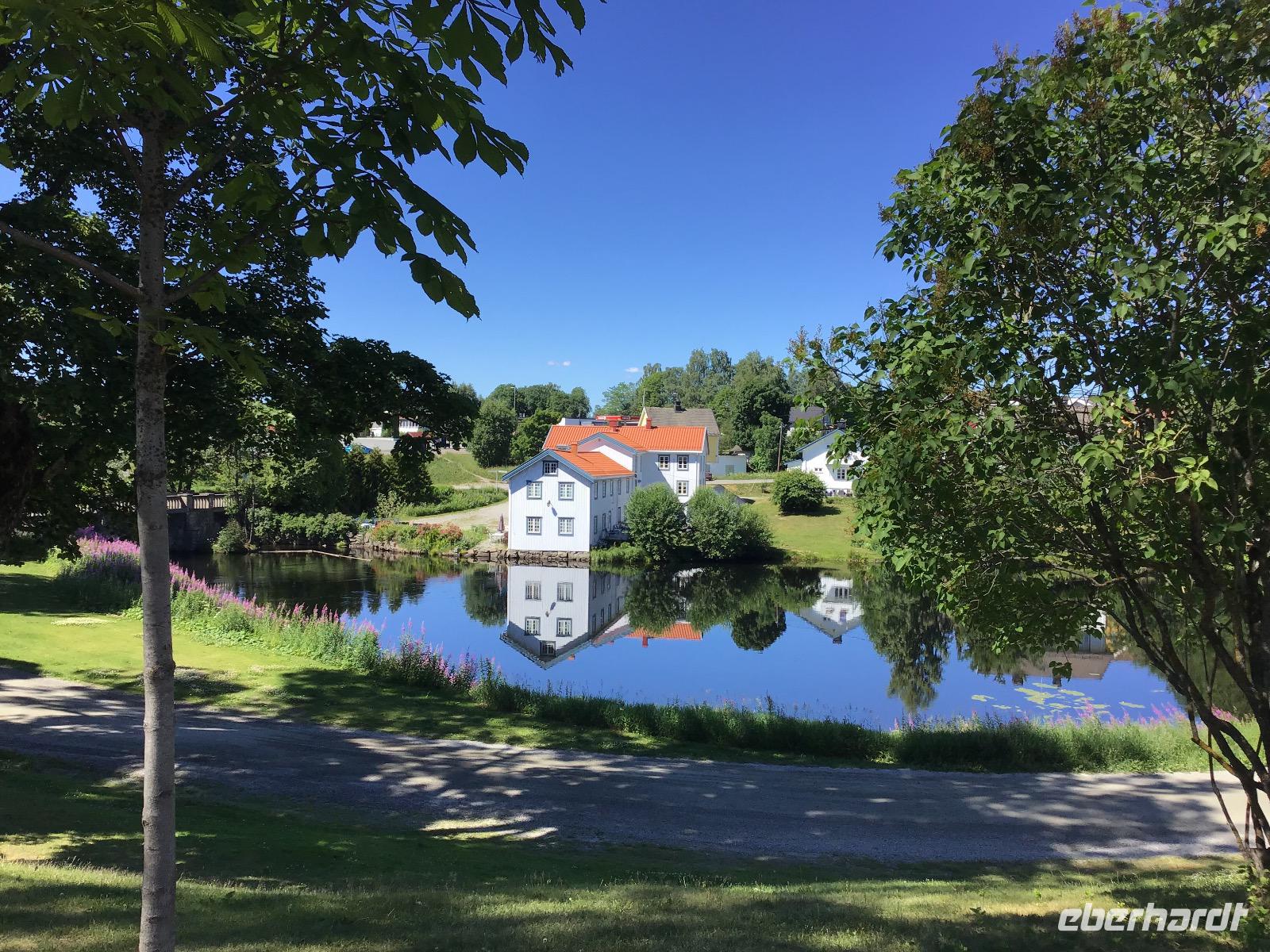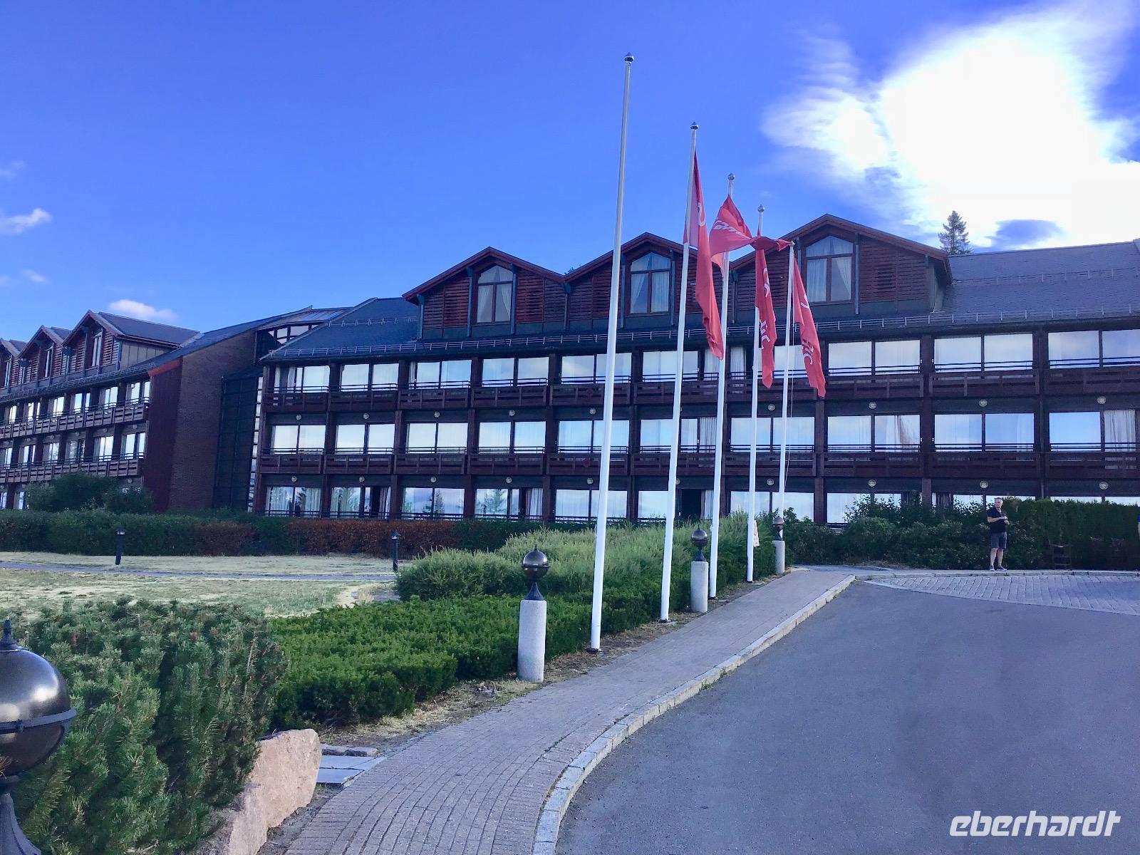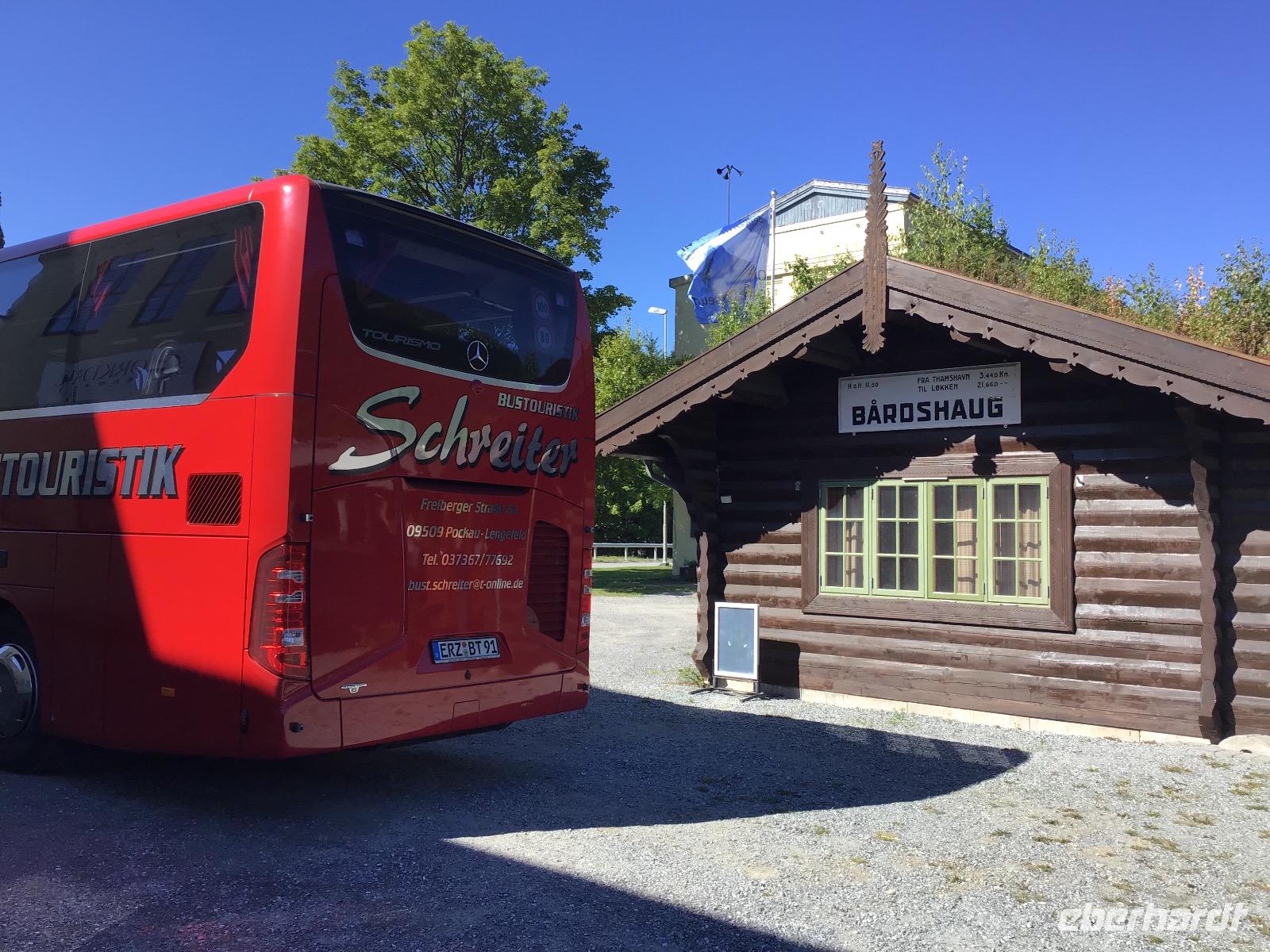 Mit ebensolchem beginnt der Tag. Das Frühstücksbüffet lässt keine Wünsche offen. Während wir an Deck die Einfahrt in den Oslofjord beobachten, weht uns ordentlich der Wind um die Ohren. Der Himmel ist blau mit Schäfchenwolken, die Sonne lacht. Pünktlich um zehn kommen wir in Oslo an. Wir fahren am Barcode und an der Oper vorbei zur alten Festung, hier bleibt ein Stündchen Zeit zum Spazierengehen. Mittags holen wir die Fluggäste am Flughafen Oslo ab. Dieser befindet sich ca. 45 Minuten außerhalb der Stadt. Unser Weg führt nach Norden, wir besuchen Eidsvoll, die Stadt, in der die erste Verfassung Norwegens beschlossen wurde. Immer am Mjosasee entlang fahren wir nach Hamar, wo wir heute im Scan Hotel übernachten. Vorher aber statten wir noch der Olympiahalle einen Besuch ab, die 1994 zu den Olympischen Winterspielen erbaut wurde und wie ein umgekipptes Wikingerschiff aussieht. Das Abendessen nehmen wir in einem Konferenzsaal ein. Außer uns sind hier heute viele Jugendsportgruppen zum Gast, deshalb der große Saal. Dennoch geht es erstaunlich ruhig zu und das Essen ist, wie man es in Norwegen gewohnt ist, ausgezeichnet.