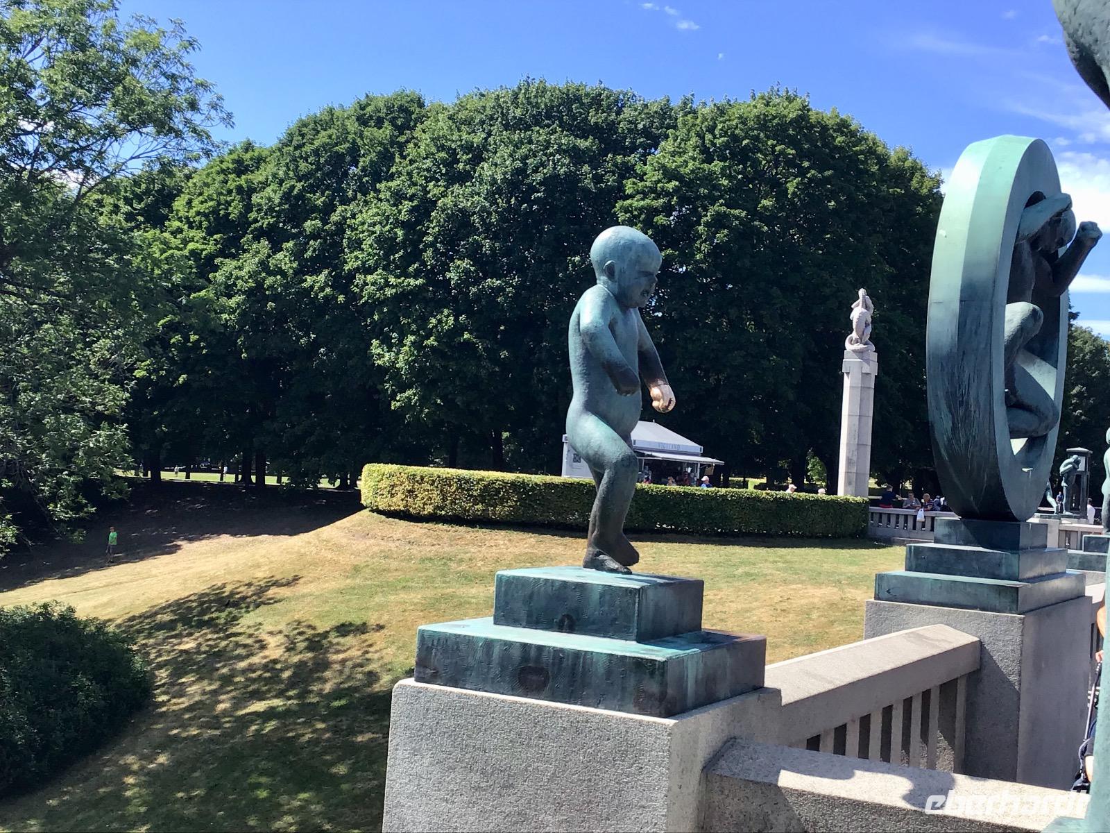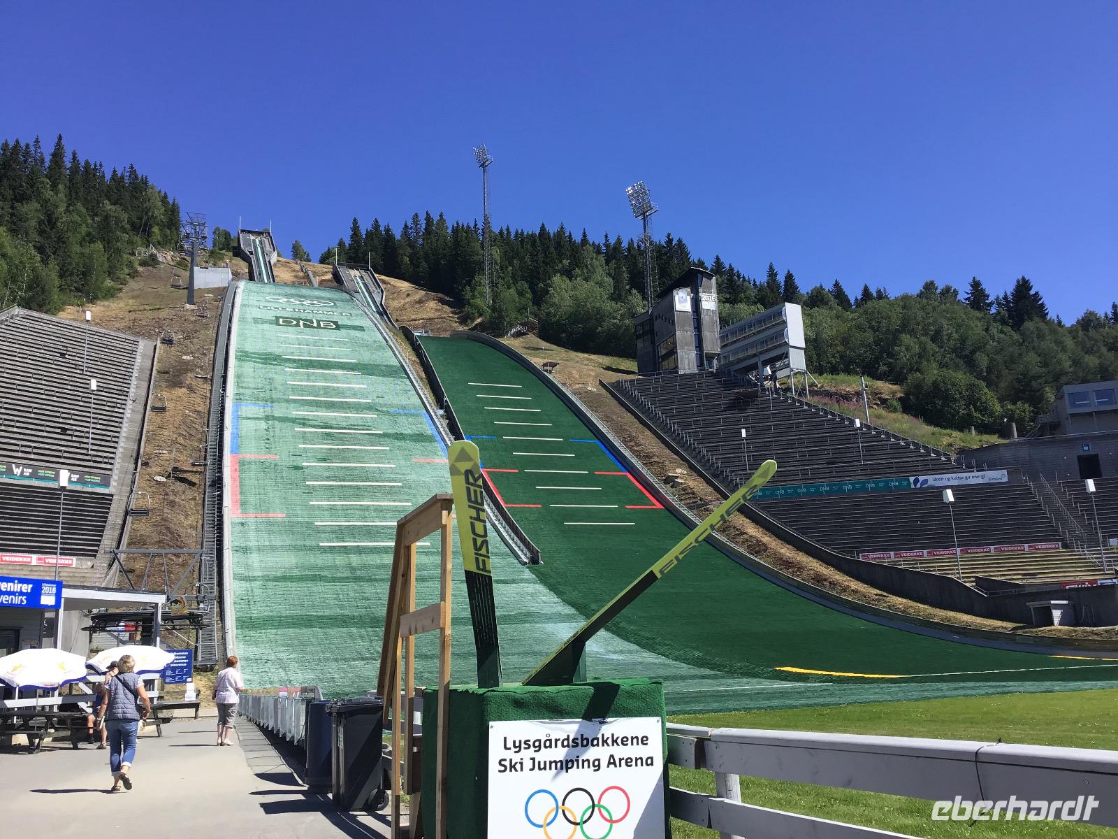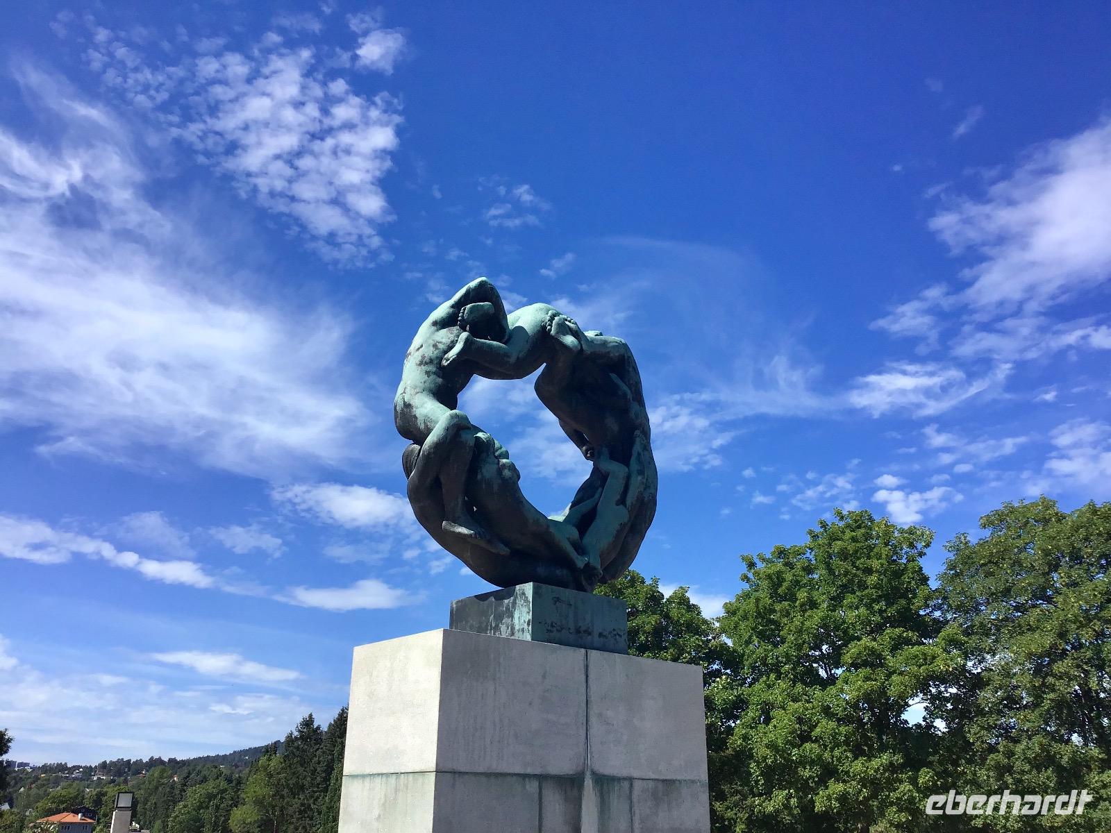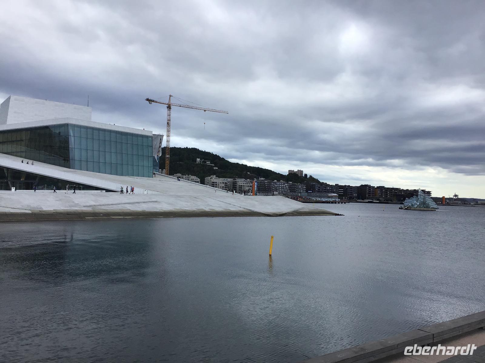 Nachmittags erreichen wir unseren Ausgangspunkt in Norwegen - Oslo. Der weiße Carraramarmor der Oper leuchtet in der Sonne. Die Form des Gebäudes soll an einen treibenden Eisberg erinnern. Passend dazu schwimmt davor eine Skulptur, die aufgetürmte Eismassen darstellt. Sven, unser örtlicher Stadtführer begleitet uns durch die Stadt. Beeindruckend sind die Skulpturen im Vigelandpark, die den Lauf des Lebens darstellen. Vom Holmenkollen, wo sich auch unser Hotel befindet, haben wir nicht nur einen tollen Blick auf die berühmten Schanzenanlagen, sondern auch auf die ganze Stadt.