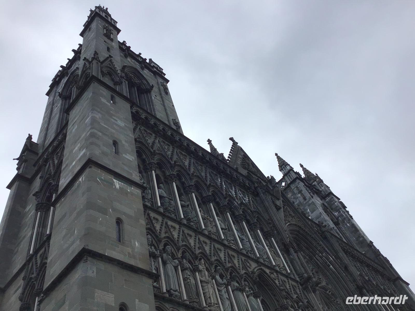 Eine junge Frau, schmalgesichtig, mit kalten Händen, führt uns durch den Nidarosdom. Mit großem Enthusiasmus erzählt sie uns die Geschichte von Olav, der schon im Alter von zwölf Jahren in den Krieg zog, in Frankreich zum Glauben fand, nach Norwegen zurückkehrte, das Reich einen und christianisieren wollte. Olav wurde in einer entscheidenden Schlacht