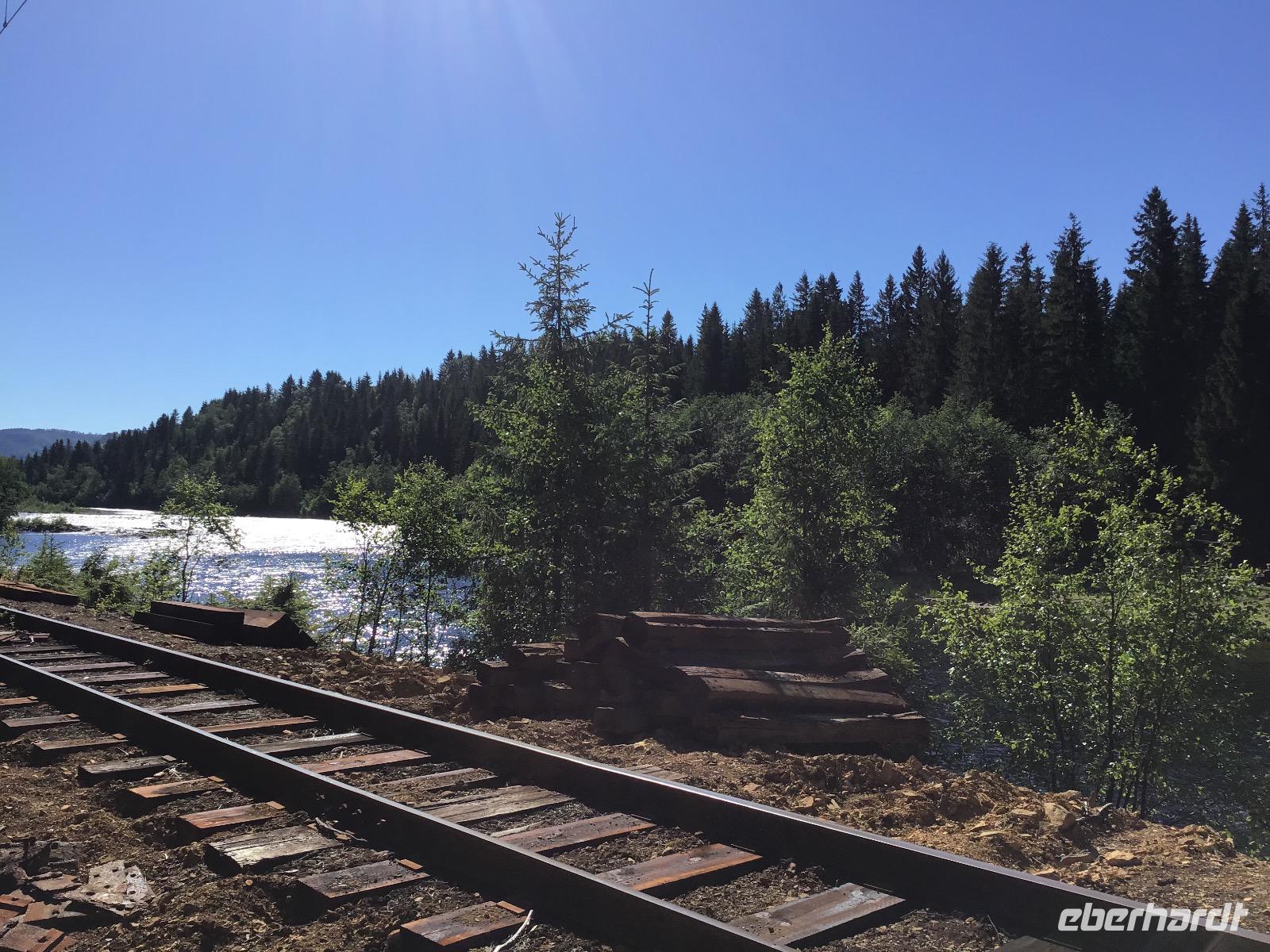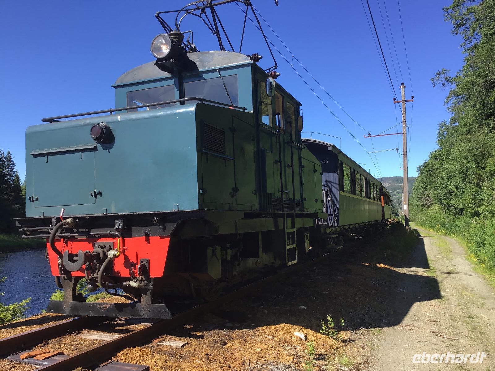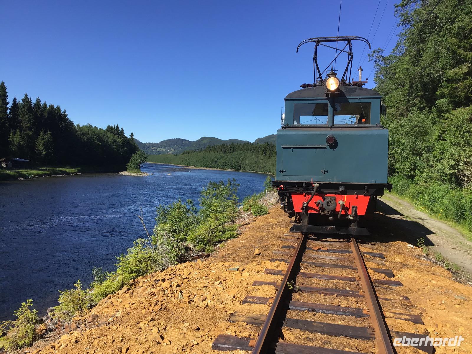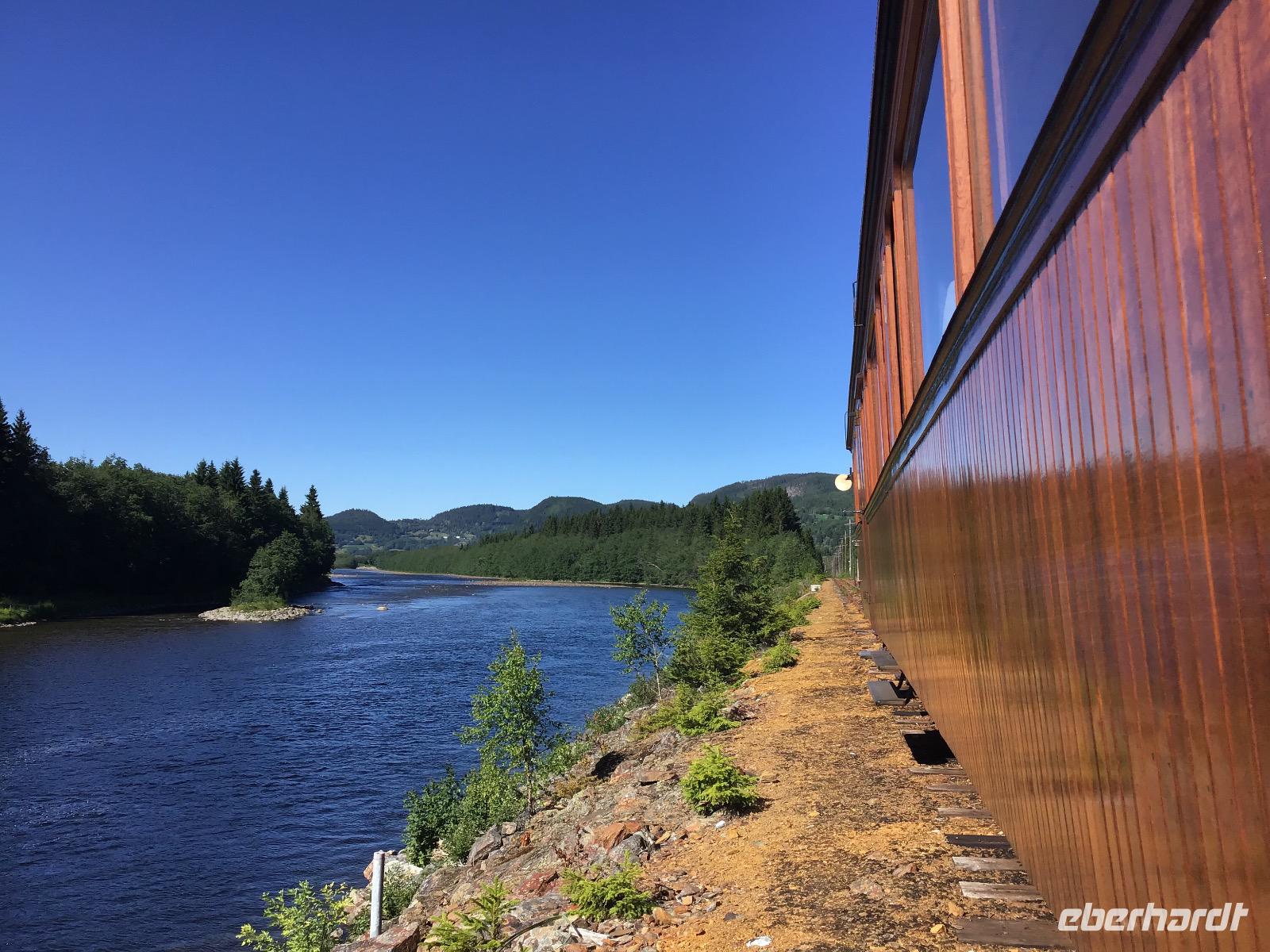 europäischem Vorbild zu errichten. Zweihundertfünfzig Jahre baute man an dem Dom und in den hunderten Jahren danach brannte er immer wieder ab. Bis heute ist der Bau nicht vollendet - denn: eine Sage besagt, dass, wenn der letzte Stein des Doms gesetzt wird, der Bau mitsamt der Stadt und allen ihren Einwohnern im Fjord versinkt. Am Nachmittag fahren wir mit der Thamshavnbanen von Bardshaug nach Løkken. Die Thamshavnbanen ist eine Museumsbahn, sie hat heute zwei Wagen, einen Personenwagen und einen Speisewagen, welcher aber heute nicht in Betrieb ist, sondern nur Dekorationszwecken dient. Wir haben das Züglein fast für uns allein. Der junge Guide gibt sich alle Mühe, uns in deutscher Sprache über Sehenswertes zu informieren. Mit lautem Zugpfeifen durchqueren wir die Dörfer, die an der Strecke liegen, immer wieder stehen Kinder an der Strecke, die uns fröhlich zuwinken. Unterwegs legen wir einen Stopp ein, an dem wir den Zug verlassen und nach Herzenslust fotografieren dürfen.