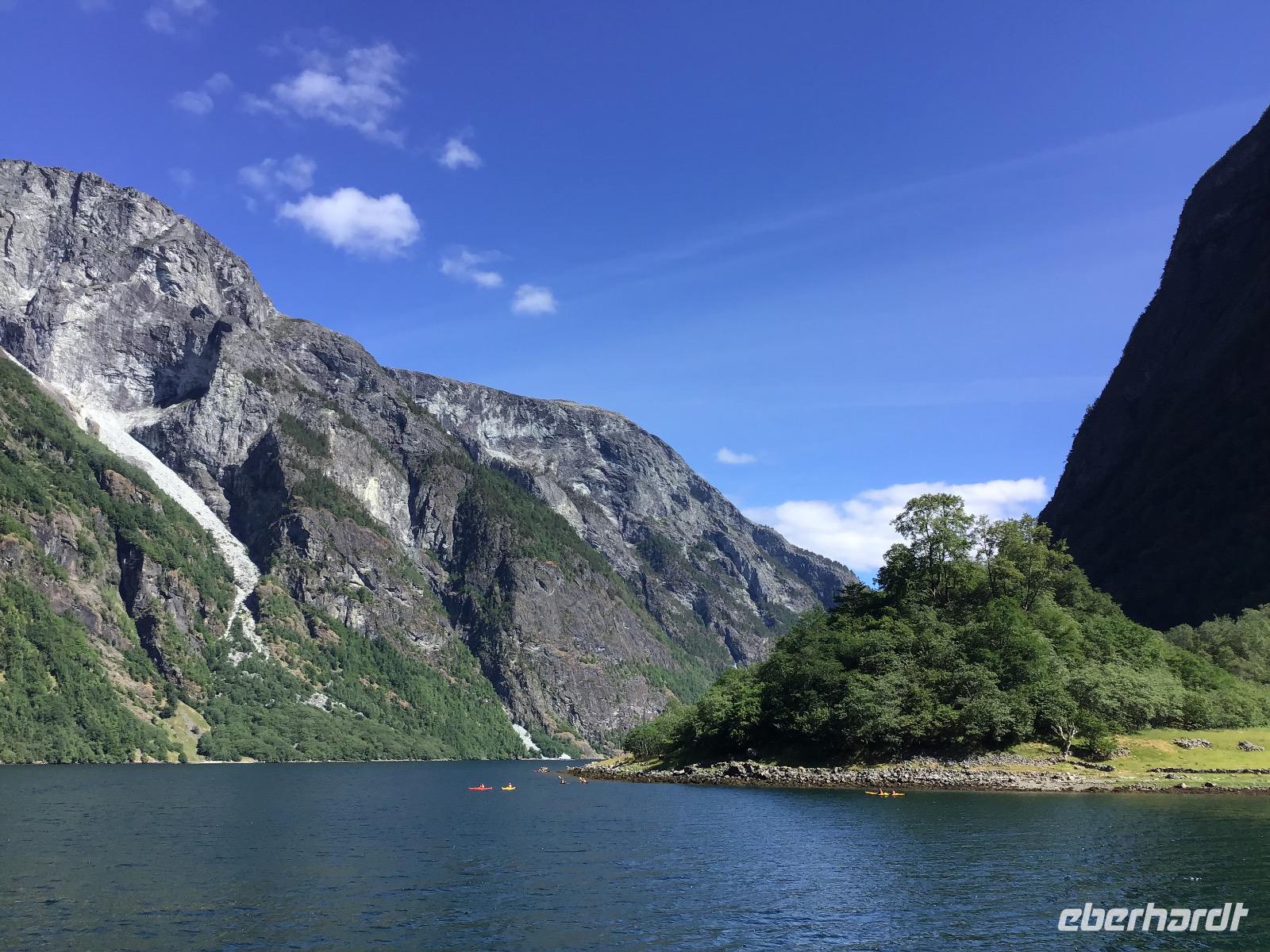 Tiefblaue Fjorde, steil aufragende Felswände, glitzernde Bächlein, die steilste Felswand Europas, spektakuläre Zugfahrten, lautlos dahinteibende Schiffe, Schneefelder auf Bergspitzen - dies und noch v