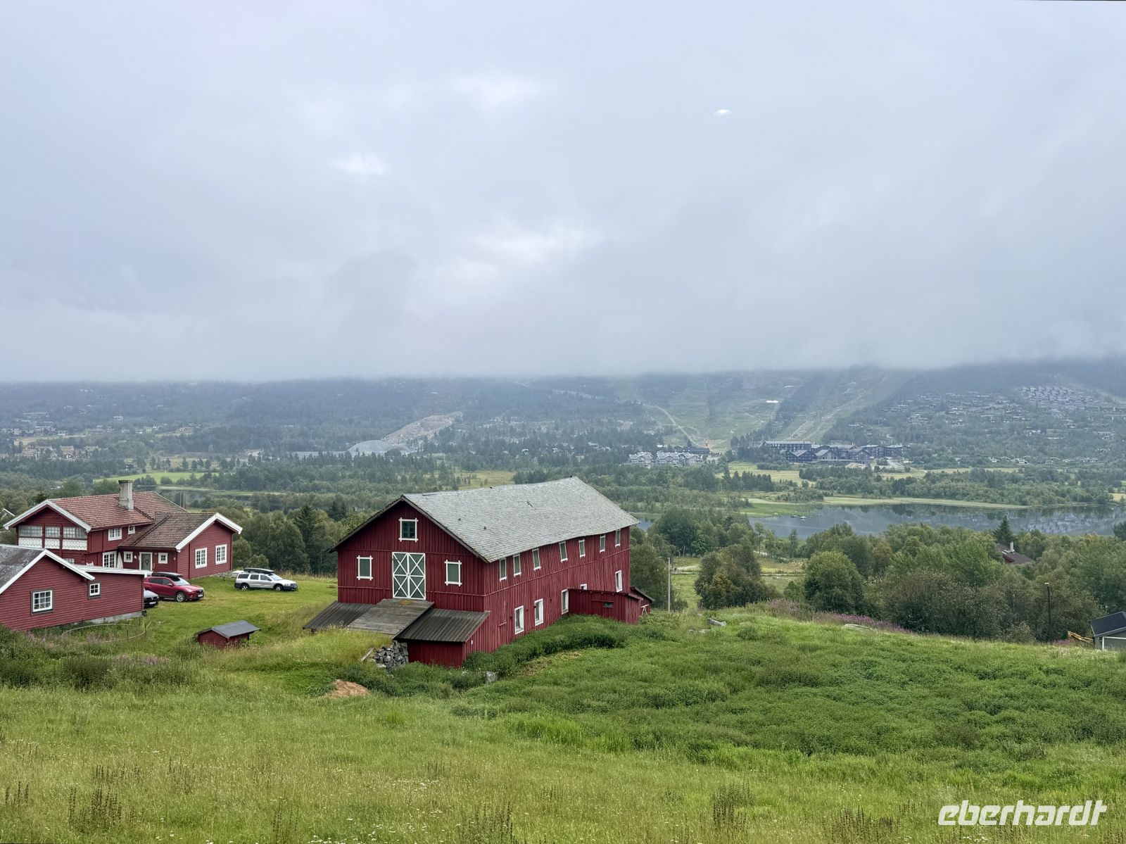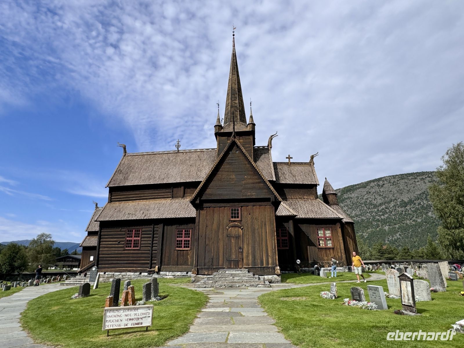 Auch heute ist der Wettergott gnädig und begrüßt uns mit einem blauen Himmel und strahlendem Sonnenschein. Abgerundet wird der Start in den Tag mit einem vollwertigen Frühstücksbuffet in unserem Übernachtungshotel. Und so beginnen wir unseren Tag gut gestärkt und erholt und brechen am Vormittag auf zu neuen Abenteuern. Unsere Reise führt uns weiter entlang des Mjøsasee, der sich uns heute wie ein Spiegel präsentiert. Nach knapp einer Stunde Fahrt erreichen wir am Ende des Sees unser erstes Highlight an diesem Tag – die beeindruckende Schanzenanlage in Lillehammer, die für die 17. Olympischen Winterspiele im Jahr 1994 errichtet wurde. Unser Uwe bringt uns heute sogar bis ganz nach oben, von wo aus wir einen faszinierenden Blick auf Lillehammer und den See genießen. Einige von uns nutzen bei dem tollen Wetter sogar die Möglichkeit die 936 Stufen nach unten zu laufen und entdecken dabei weitere schöne Ausblicke auf die 2 Schanzen. Heute haben wir sogar das Vergnügen 2 jungen Skispringern bei ihren Flügen vom Schanzentisch zuschauen zu können. Was für ein tolles Erlebnis. Weiter führt unsere Fahrt durch das schöne Gudbrandsdal, das mit 200 Kilometern das längste Tal Norwegens ist. Nach jeder Kurve hat die Landschaft ein neues spektakuläres Gesicht. Am Nachmittag erreichen wir einen von Norwegens Beiträgen zur Weltarchitektur – eine Stabkirche. Zuerst statten wir der kleinen touristisch nicht so stark frequentierten Vågå-Stabkirche einen kurzen Besuch ab, bevor wir die beeindruckende Stabkirche in Lom erreichen – eine der ältesten und besterhaltenen im Land. Über 800 Jahre Geschichte erwartet uns hier und lässt uns ins Staunen versetzen. Mit diesen Eindrücken setzen wir am Nachmittag unseren Weg Richtung Geirangerfjord fort. Uns erwartet ein faszinierender Streckenabschnitt, der uns innerhalb kürzester Zeit durch die verschiedensten norwegischen Landschaften führt. Über Hochebenen und Serpentinen geht es vorbei an links und rechts der Straße hochragenden Felsen und weiter bis hinunter ins Tal. Dabei überwinden wir Höhenmeter von bis zu 1000 Meter. Und dann plötzlich direkt hinter einer Kurve zeigt sich das tiefblaue Wasser des berühmtesten Fjordes Norwegens. Natürlich lassen wir es uns nicht nehmen und legen hier einen Stopp ein, um die herrliche Sicht auf den Geirangerfjord zu genießen. Mit diesen tollen Eindrücken erreichen wir nur wenige Minuten später dann unser Übernachtungsdomizil im kleinen Örtchen Geiranger und genießen hier einen angenehmen Sommerabend ohne viele Touristen am schönen Geirangerfjord.