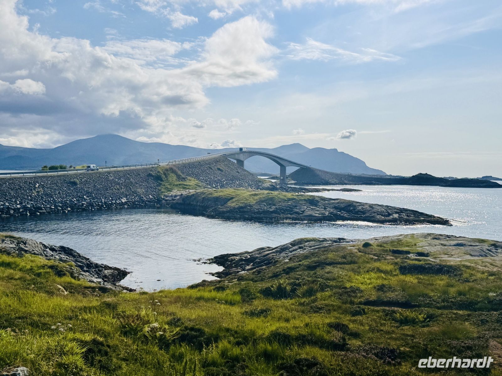 Nachdem wir mit Trondheim den nördlichsten Punkt unserer Reise erreicht haben, brechen wir heute wieder in Richtung Süden auf. Doch zuvor erhalten wir in unserem Hotel, dem Scandic Nidelven, das beste norwegische Frühstück überhaupt. Die Auswahl ist unbeschreiblich und lässt uns im wahrsten Sinne des Wortes staunen. Nicht umsonst wurde das hiesige Frühstücksbuffet bereits mehrfach ausgezeichnet. Was für ein toller Start in diesen Tag. Auch wenn wir gerne noch etwas länger bleiben würde, müssen wir dann aber doch aufbrechen. Heute geht es für uns zunächst in die für ihren Klippfisch bekannte Stadt Kristiansund. Doch heute lassen wir unseren Bus außer Acht und entscheiden uns für den Weg über das Wasser. Im Hafen von Trondheim besteigen wir das Hurtigruten Schiff MS Polarlys, auf dem wir die ruhige Schifffahrt durch Norwegens Fjordlandschaft genießen. Unser Weg führt uns durch den mit 130 km drittlängsten Fjord Norwegens, den Trondheimfjord. In Kristiansund angekommen werden wir schon von unserem Uwe und seinem Bus erwartet. Nun geht es für uns mit dem Bus weiter über die berühmte Atlantikstraße in die Stadt der Rosen nach Molde. Die Atlantikstraße verbindet zahlreiche Inselchen miteinander, die bis zum Bau der Straße nur mit dem Schiff erreichbar waren. Auf der knapp 8,5 km lange Straße, die direkt am Meer entlangführt überqueren wir zwölf Brücken und genießen den weiten Blick über den Atlantik. In Molde begeben wir uns am Abend, nach einem fantastischen Abendessen, dann wieder auf unser Hurtigruten Schiff und genießen eine ruhige Nacht auf dieser historischen Postschiffroute.