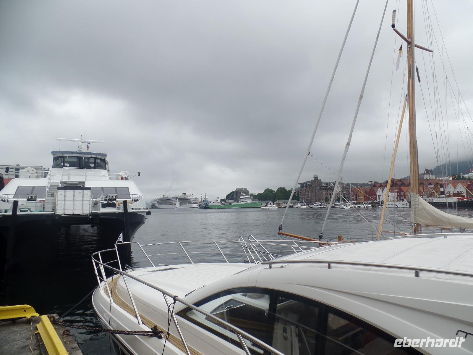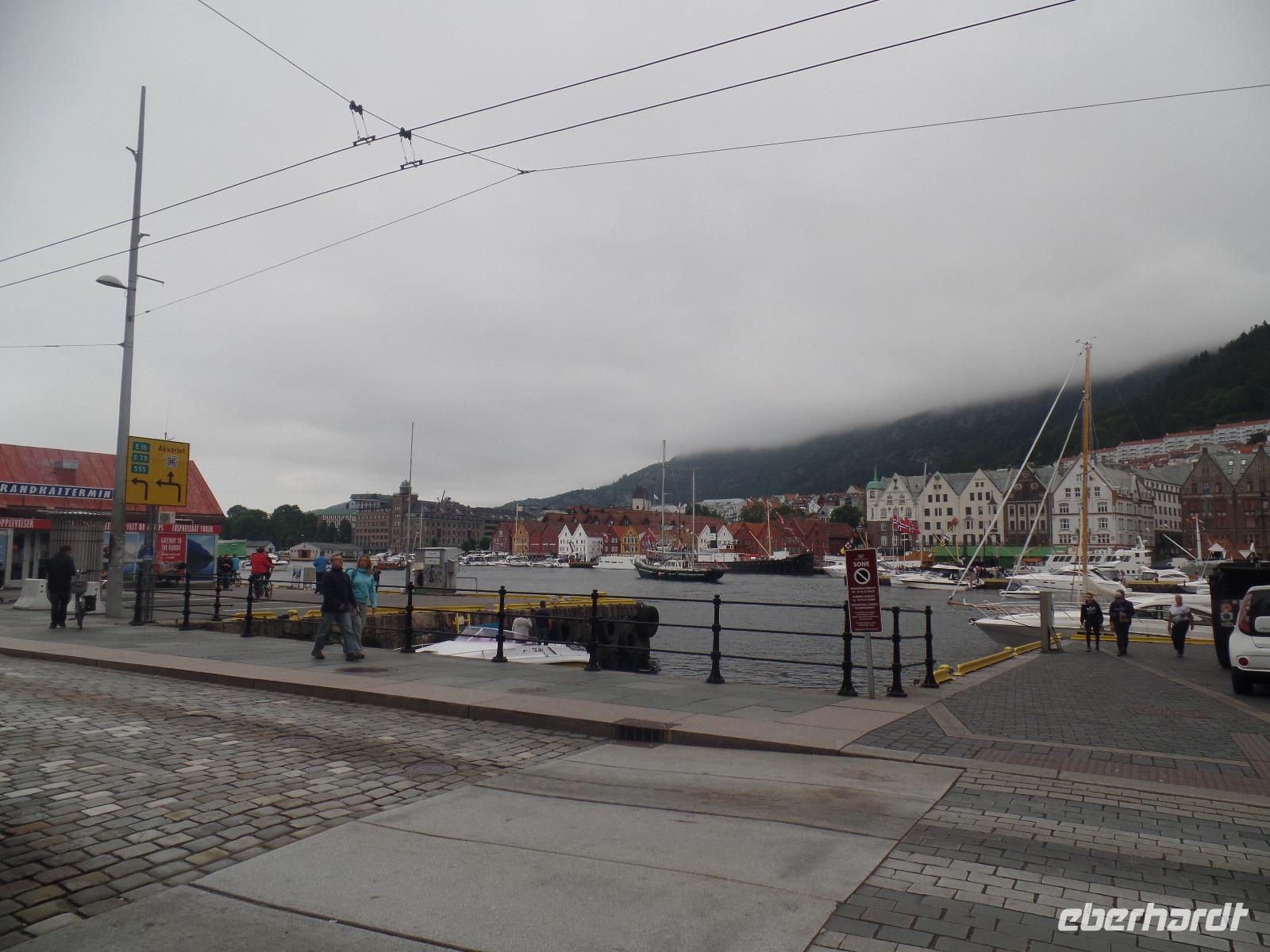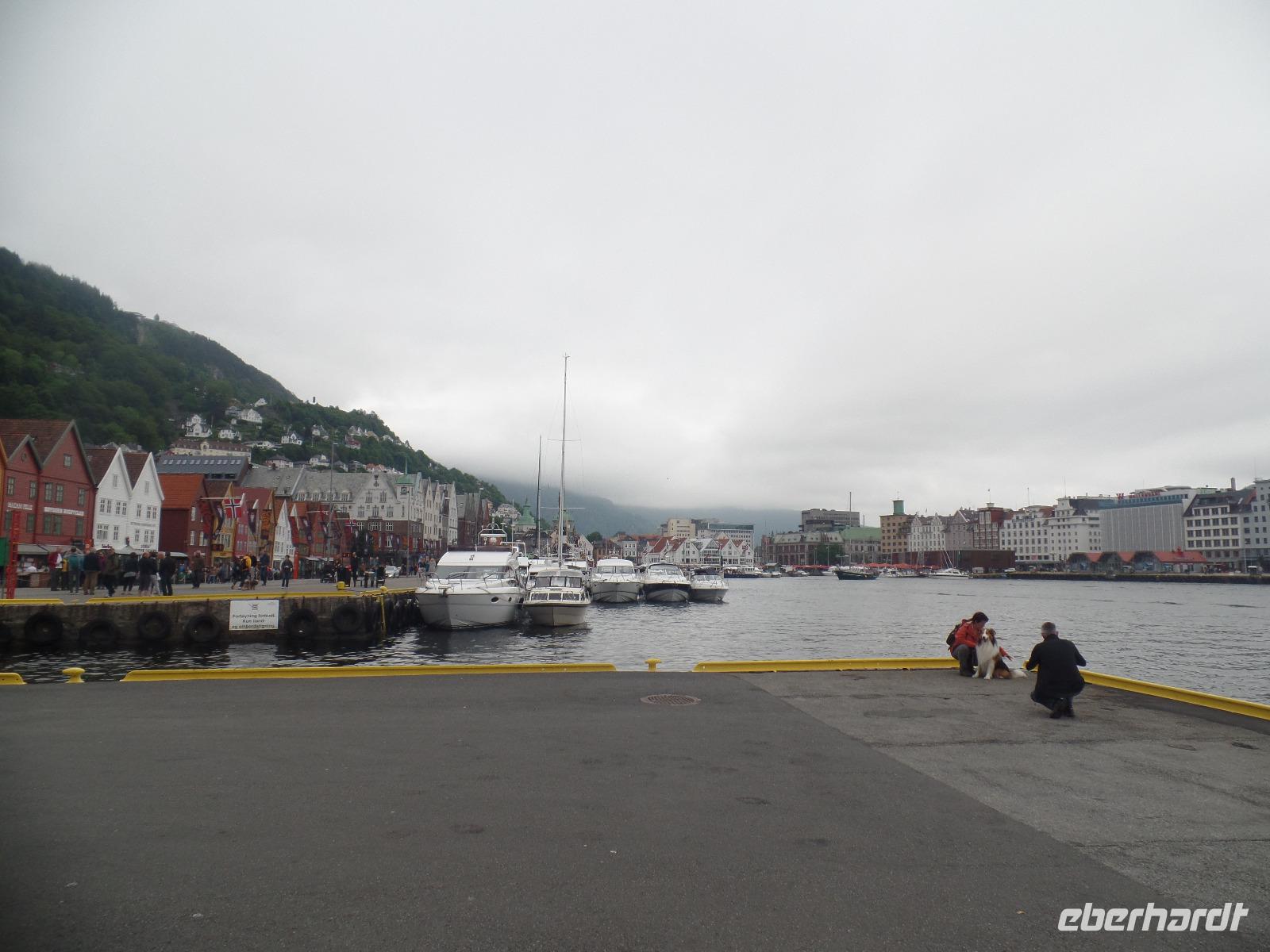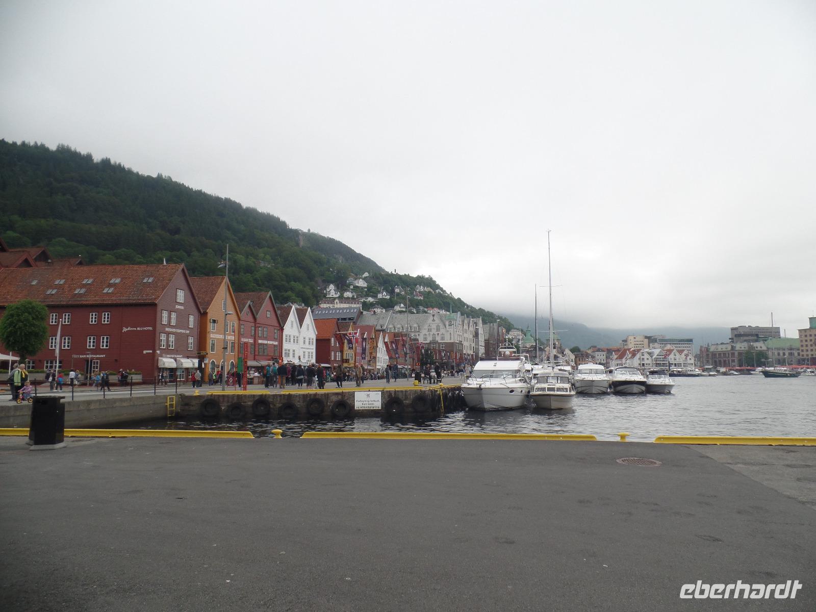 Am Morgen treffen wir im Hafen von Bergen ein. Bergen begrüßt uns mit einem Tag ohne Regen, dies ist sehr selten, denn dort regnet es fast 360 Tage im Jahr.