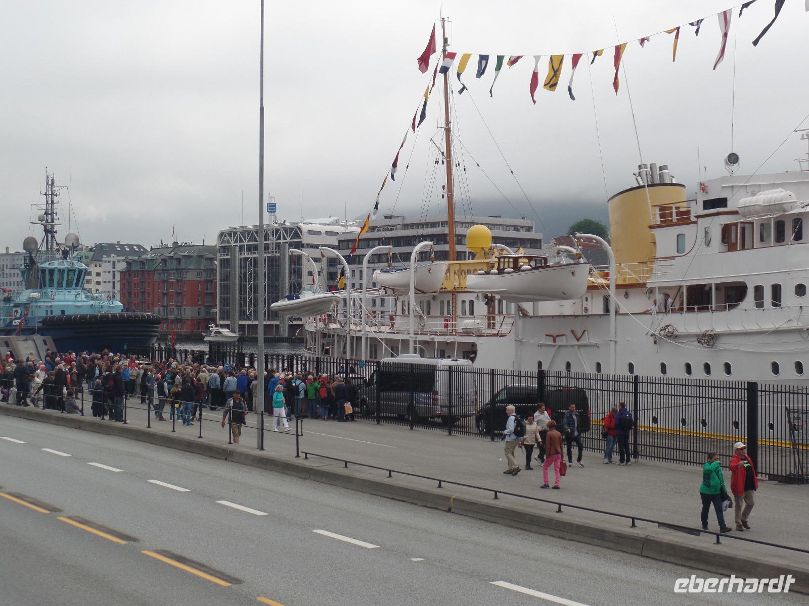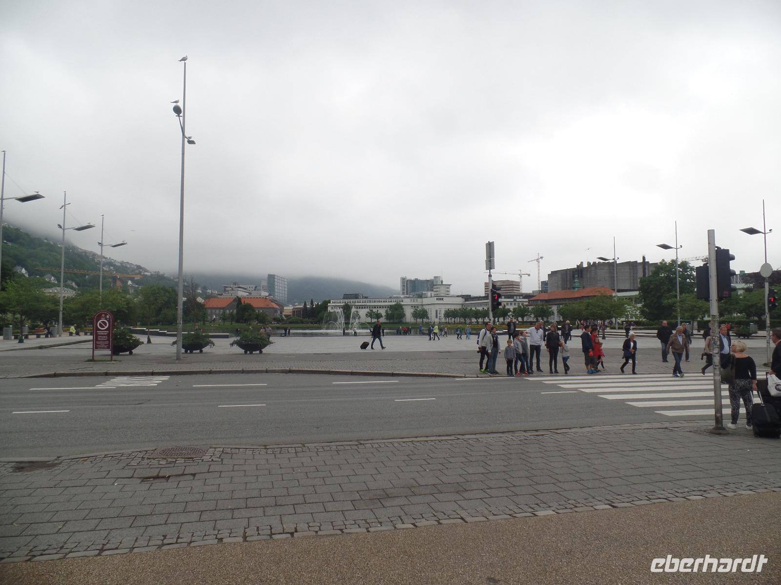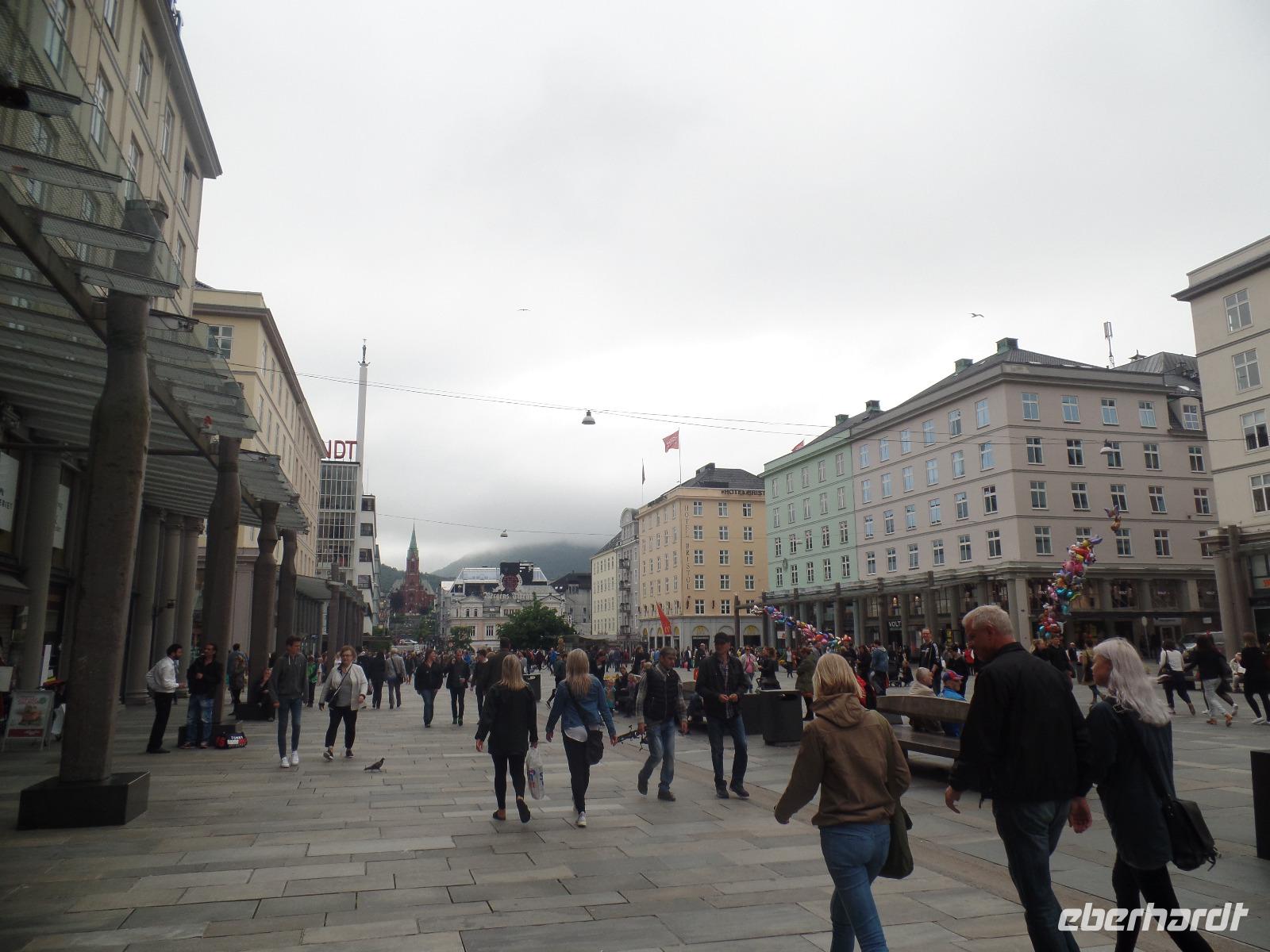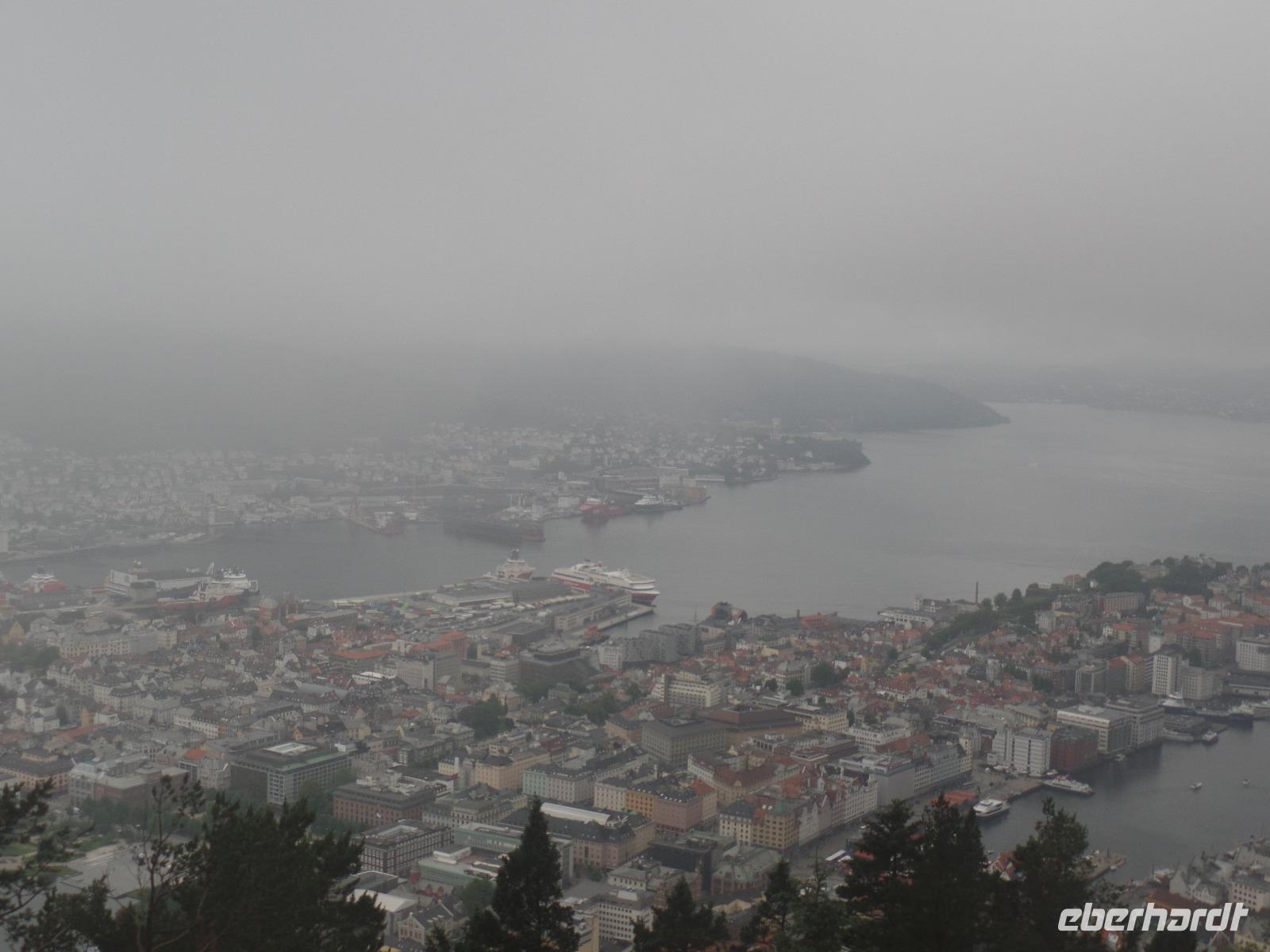 Am Morgen treffen wir im Hafen von Bergen ein. Bergen begrüßt uns mit einem Tag ohne Regen, dies ist sehr selten, denn dort regnet es fast 360 Tage im Jahr.