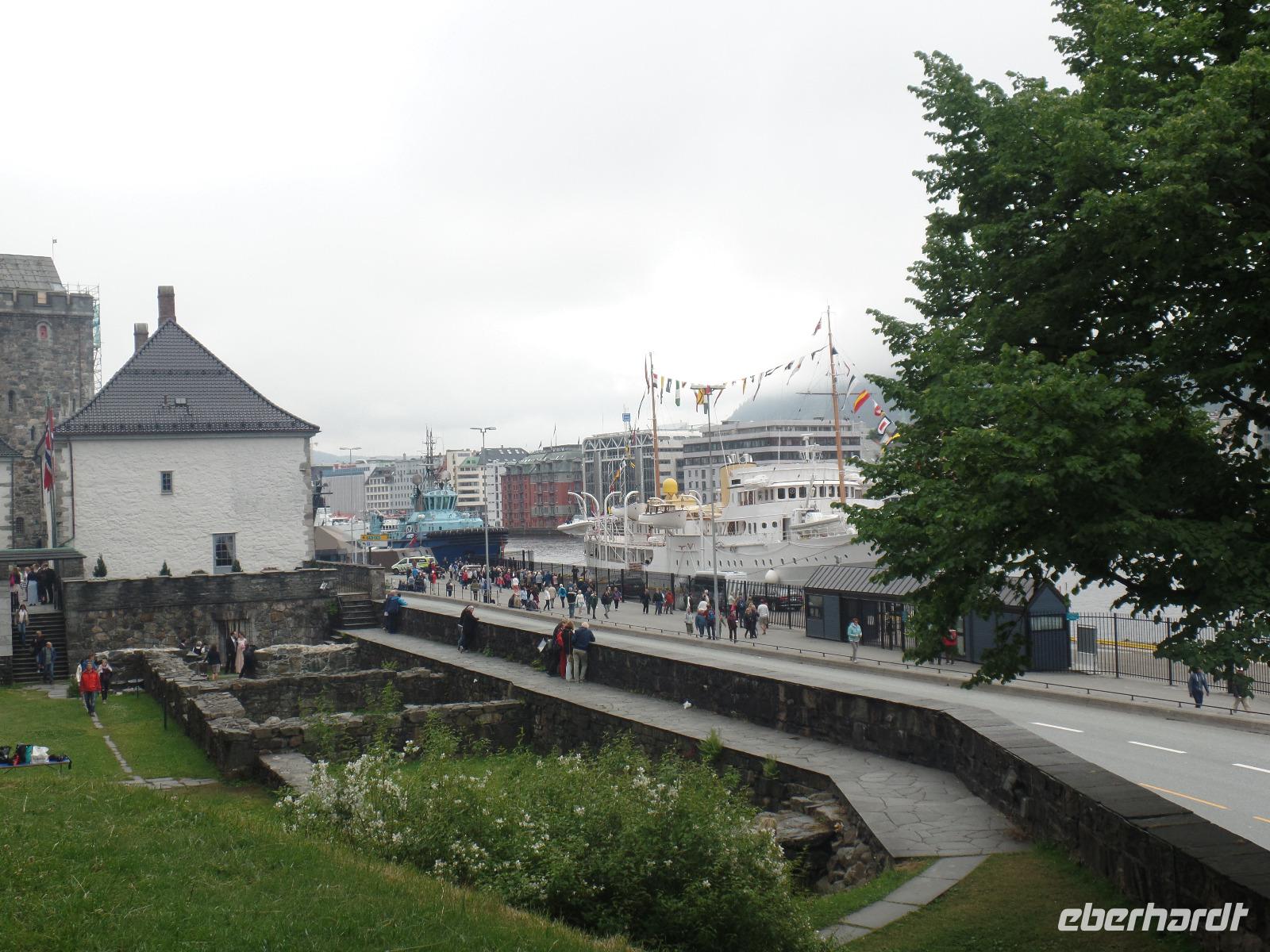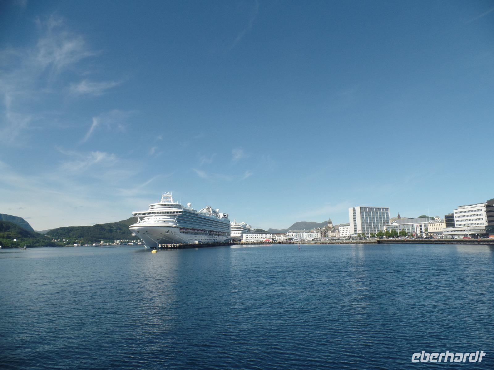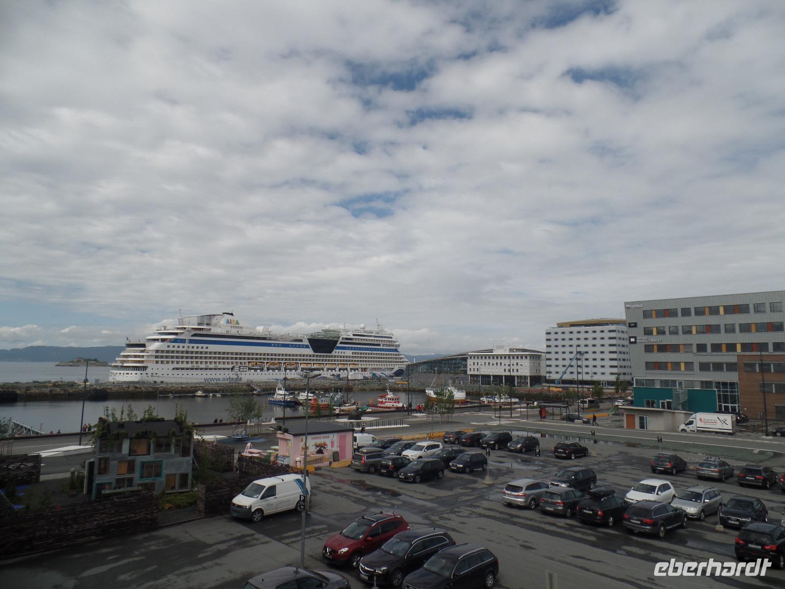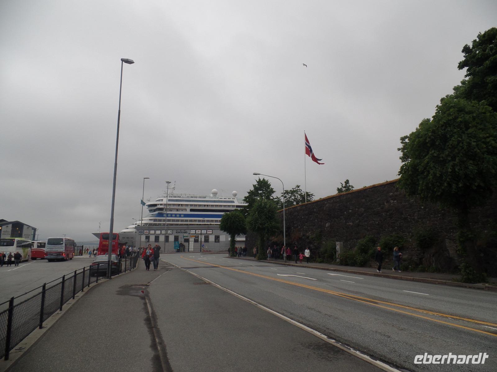 Am Morgen treffen wir im Hafen von Bergen ein. Bergen begrüßt uns mit einem Tag ohne Regen, dies ist sehr selten, denn dort regnet es fast 360 Tage im Jahr.