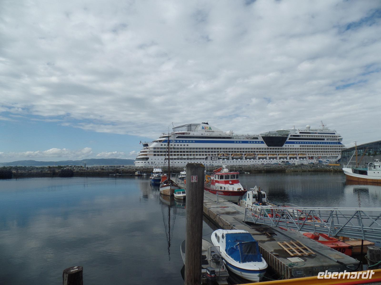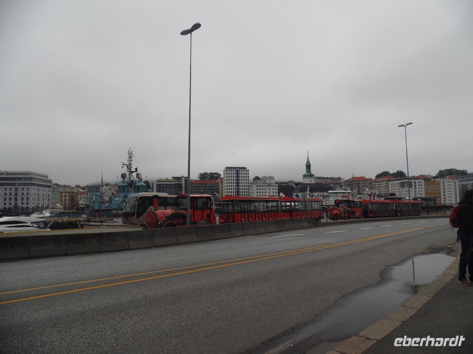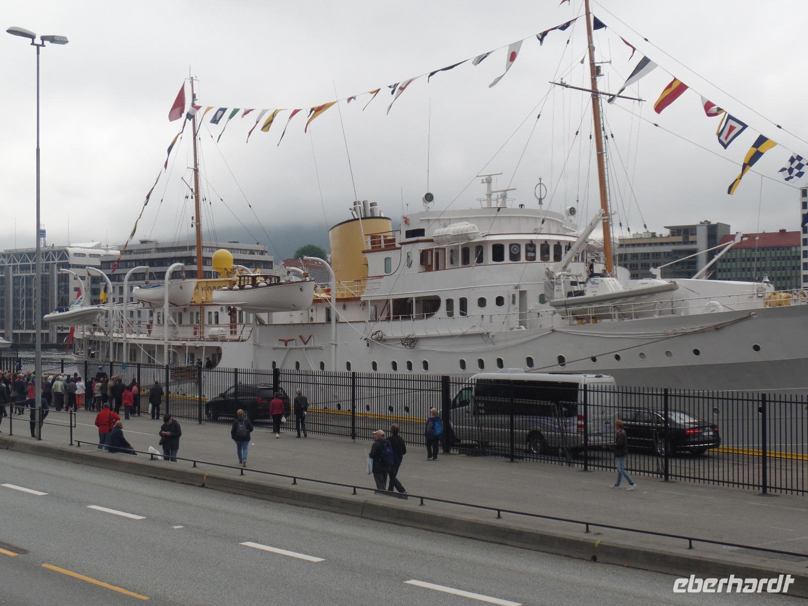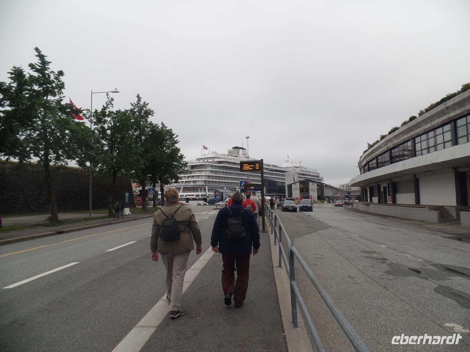 Am Morgen treffen wir im Hafen von Bergen ein. Bergen begrüßt uns mit einem Tag ohne Regen, dies ist sehr selten, denn dort regnet es fast 360 Tage im Jahr.