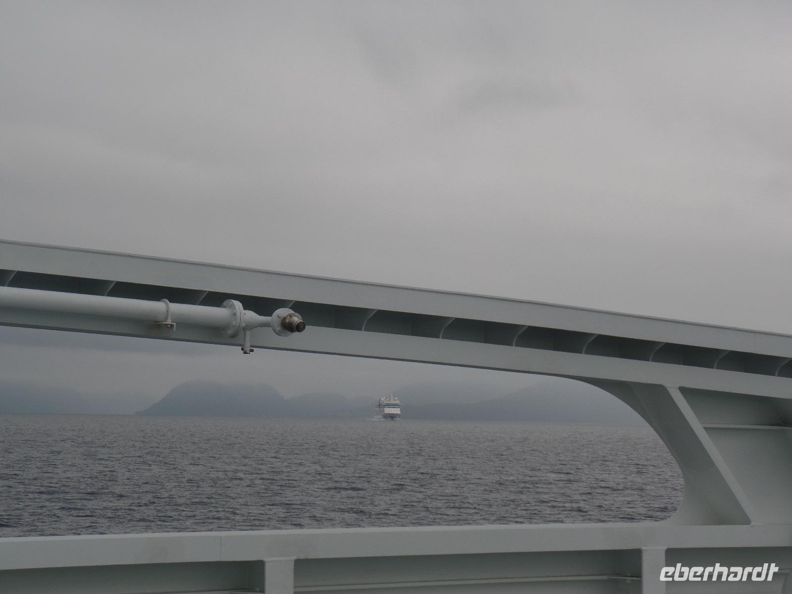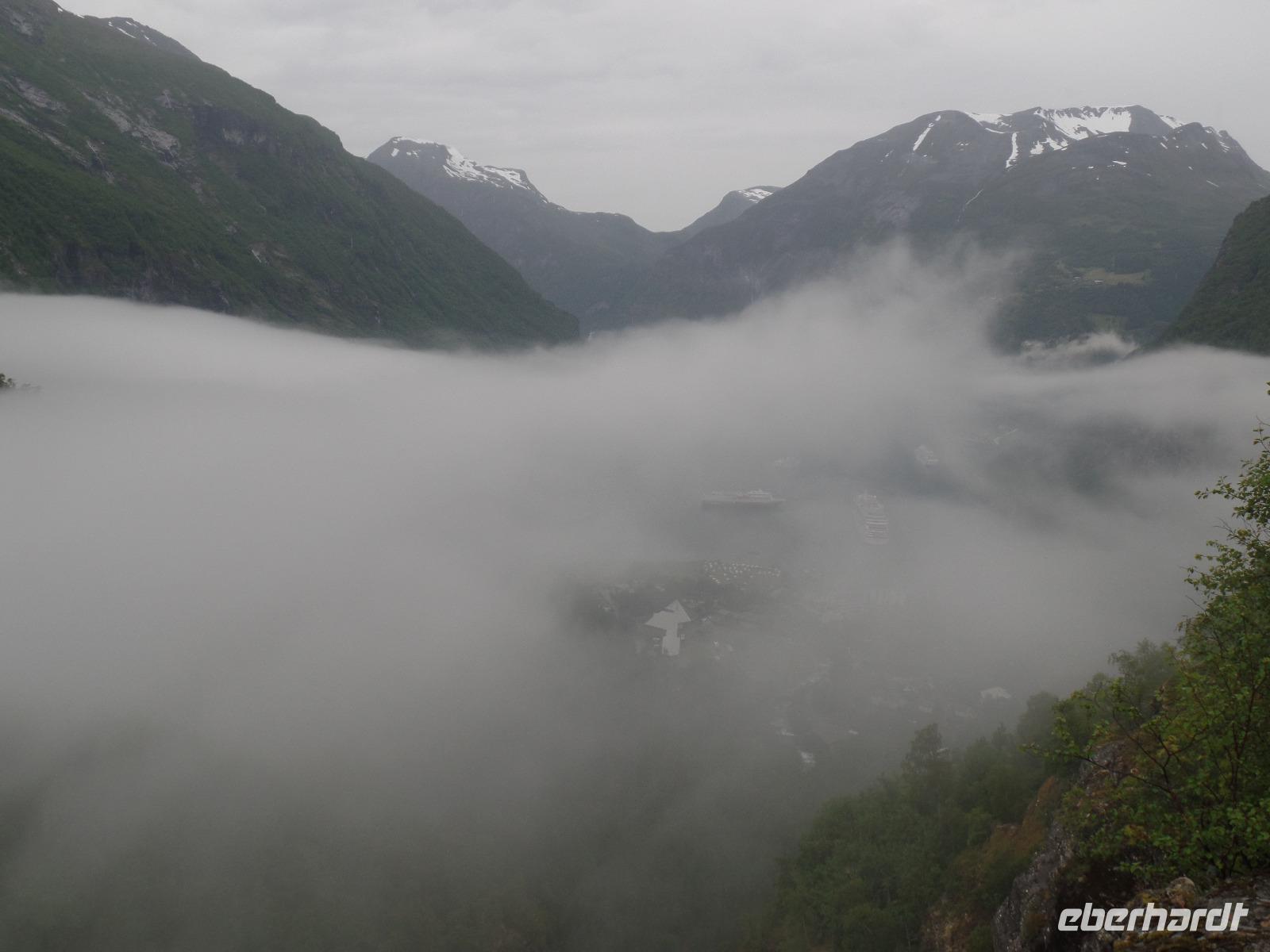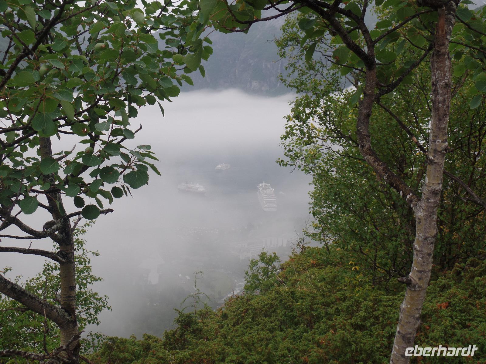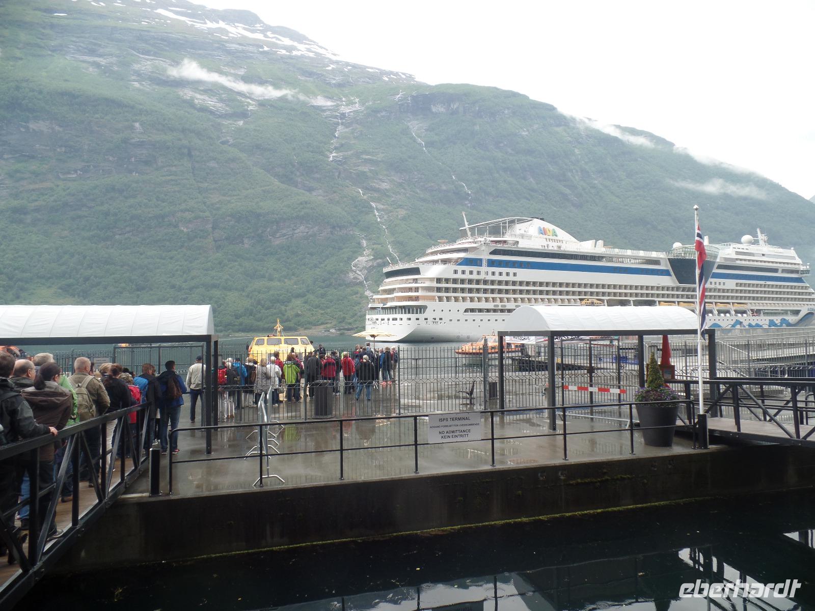 An diesem Tag sind wir nicht allein im Fjord, drei weitere Kreuzfahrtschiffe liegen auch auf Reede und wir staunen nicht schlecht über das rege Treiben in dem 500 Seelen Dorf Geiranger. Am Abend setzen wir unsere Fahrt weiter fort in Richtung Norden.