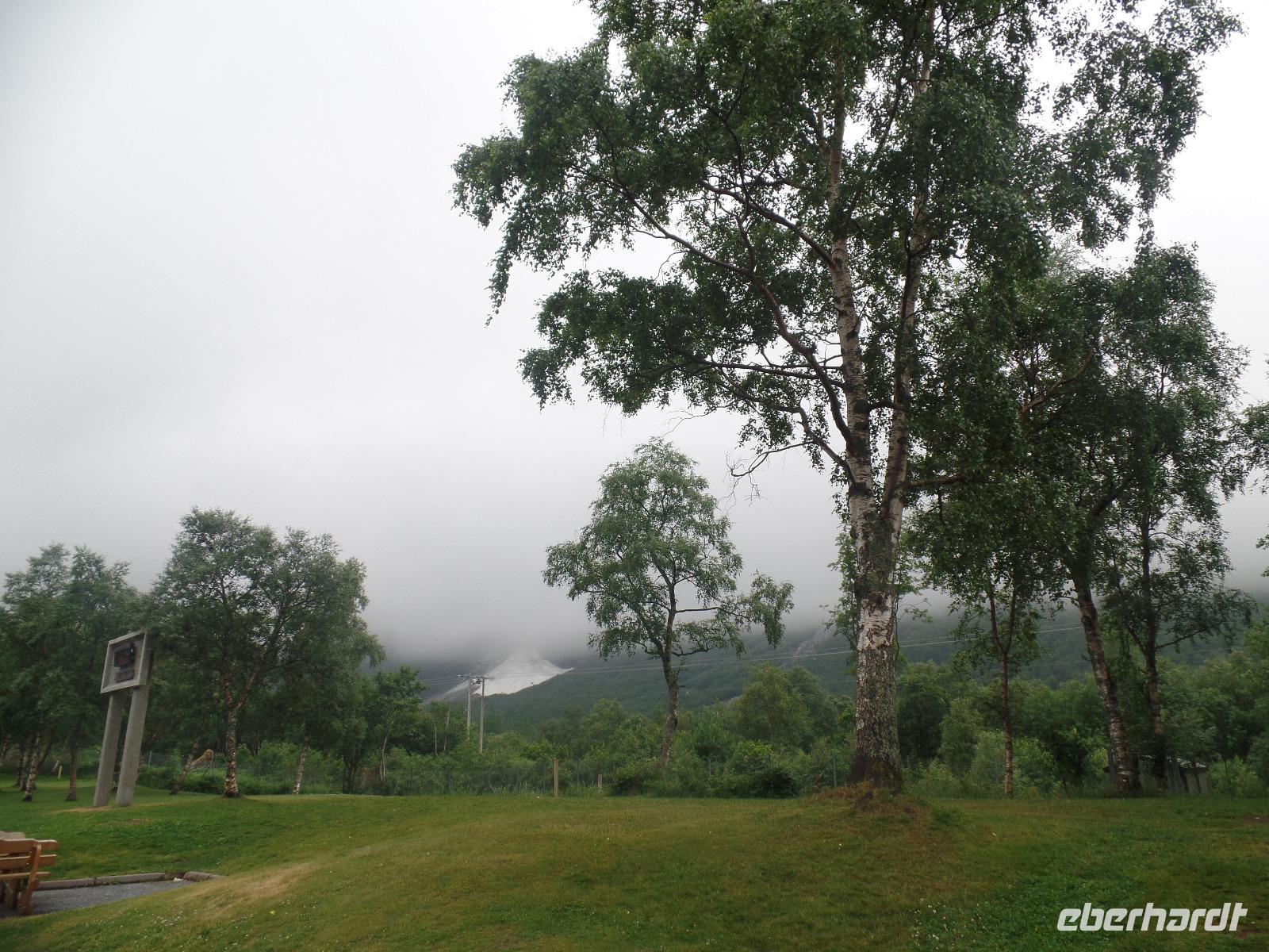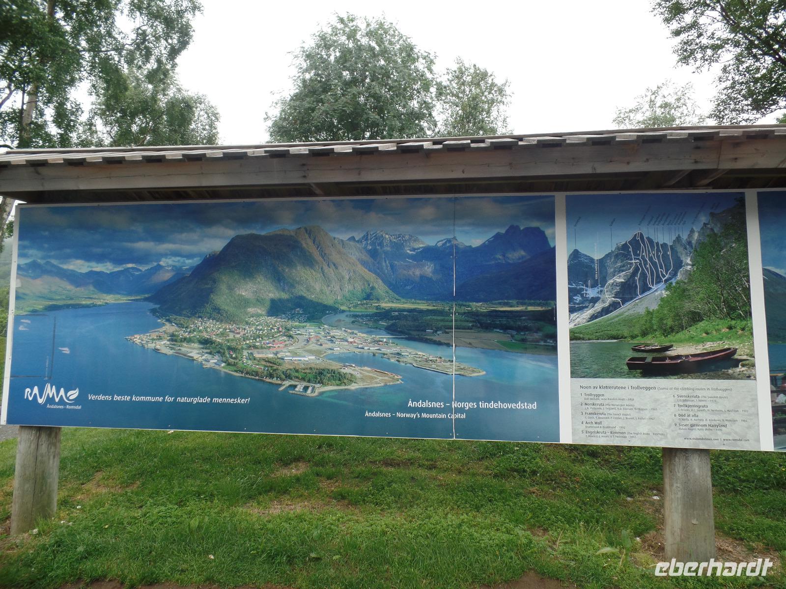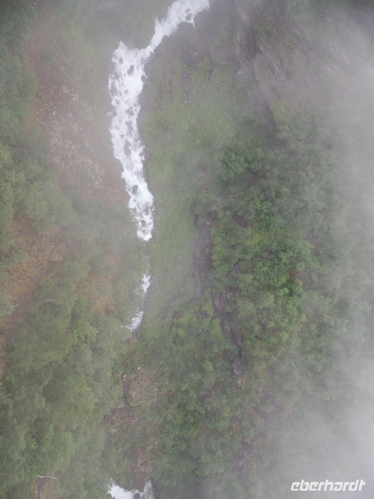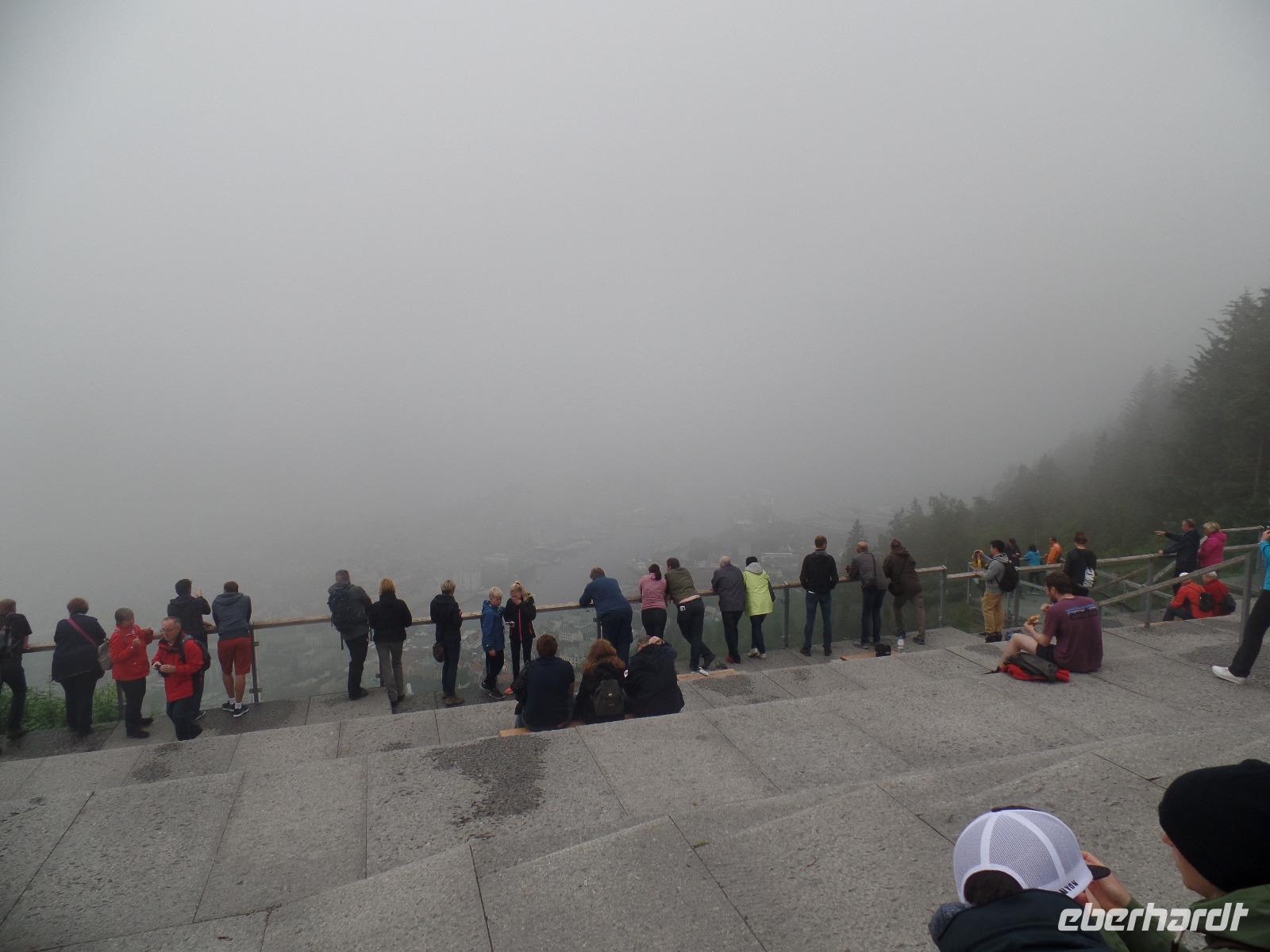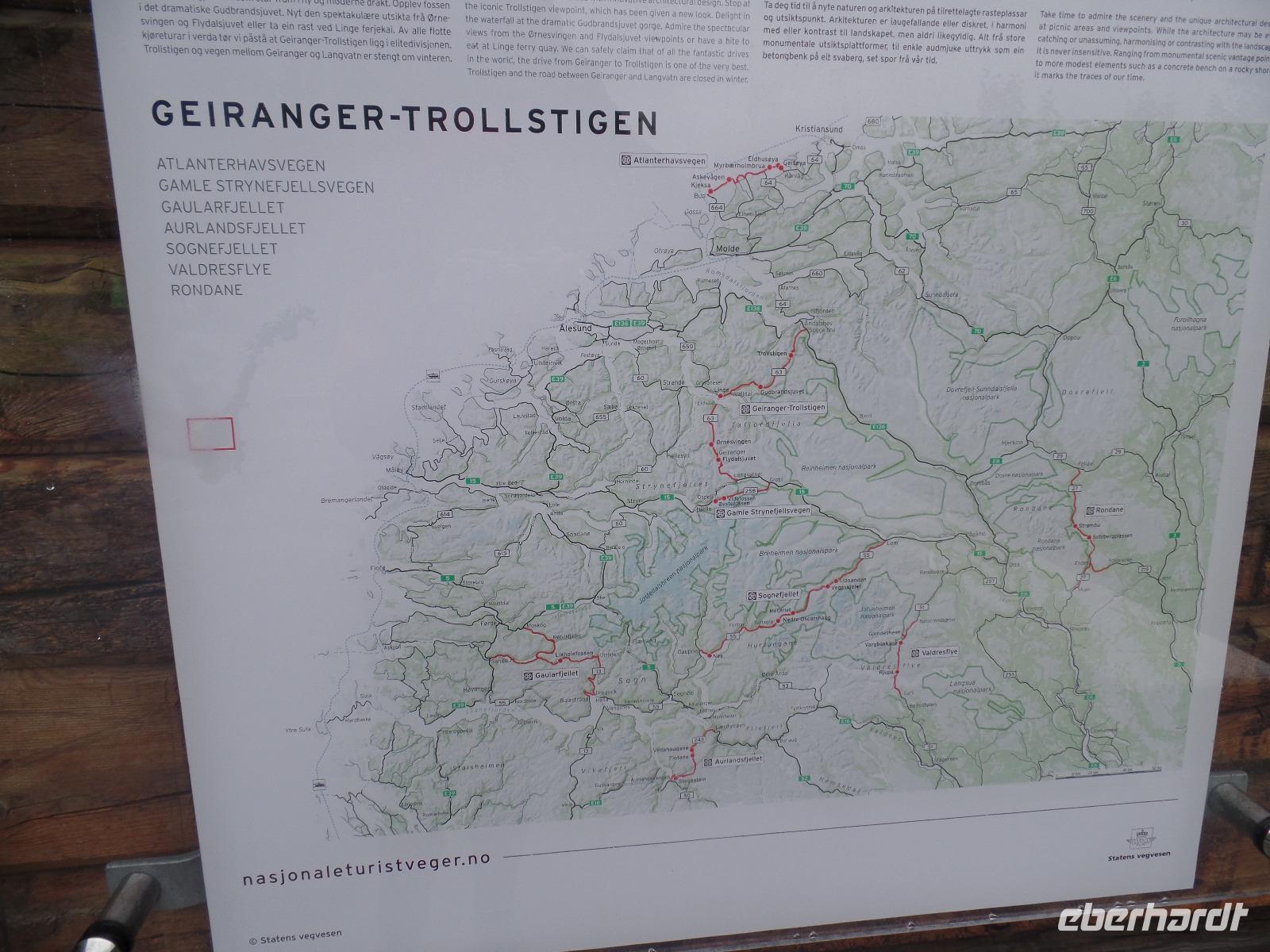 Am Morgen erwartet uns Hans-Werner, unser Reiseleiter, und Paul, unser Busfahrer. Es geht los und wir beginnen unsere Fahrt zur Trollwand. Dort legen wir einen kurzen Stopp ein. Leider zeigt sich das Wetter heute nicht von seiner besten Seite. Wir haben typischen skandinavischen Nebel, der durch die tief hängenden Wolken auftritt. Doch auch dies trübt nicht die Stimmung und somit fahren wir weiter. Unterwegs sehen wir komische Gestalten auf Verkehrsschildern...Trolle haben eine besondere Bedeutung in Norwegen. Die Gegend um die Trollstigen spiegeln diese Besonderheit wider und somit gibt es Verkehrschilder mit einem putzigen Trollkerlchen.