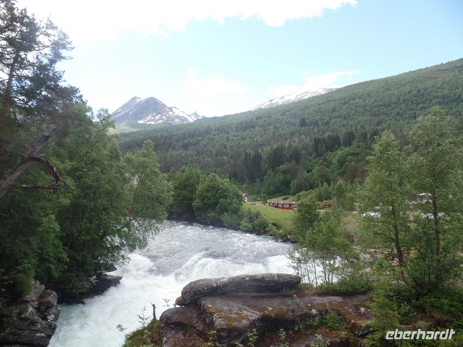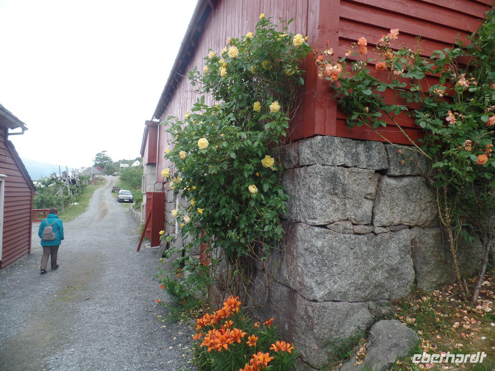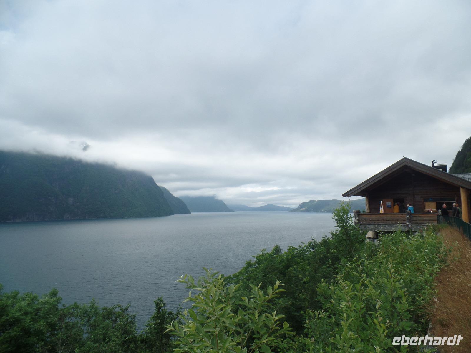 Am Mittag sind wir im Naturcenter Hardangervidda. Nach einem herrlichen Film über die Landschaft Norwegens und ihre Tierwelt stärken wir uns bei einem Lunch. Heute gibt es Waffeln mit der bekannten Romme. Alle haben die Gelegenheit diese zu probieren. Nach dieser Stärkung fahren wir entlang des Eidfjords in Richtung Süden. Es geht nach Lofthus. Dieser Ort ist bekannt für seinen Obstanbau. Die Gegend um den Hardangerfjord steht für den Obstgarten Norwegens.
