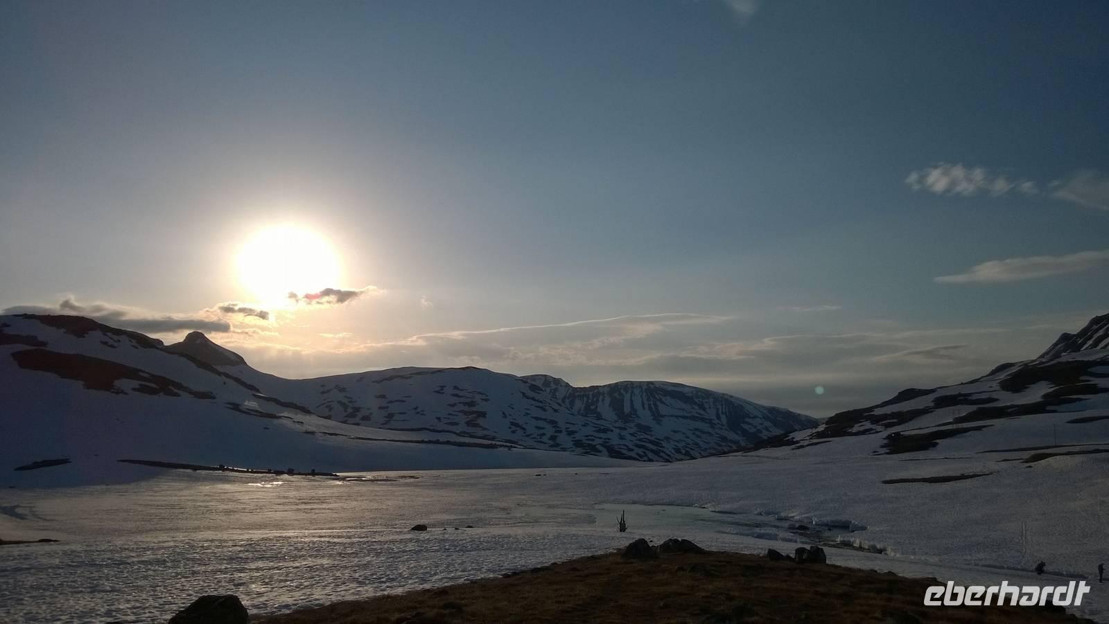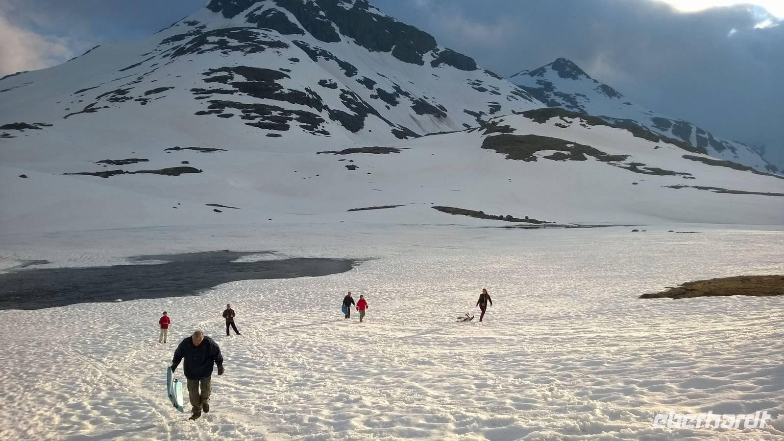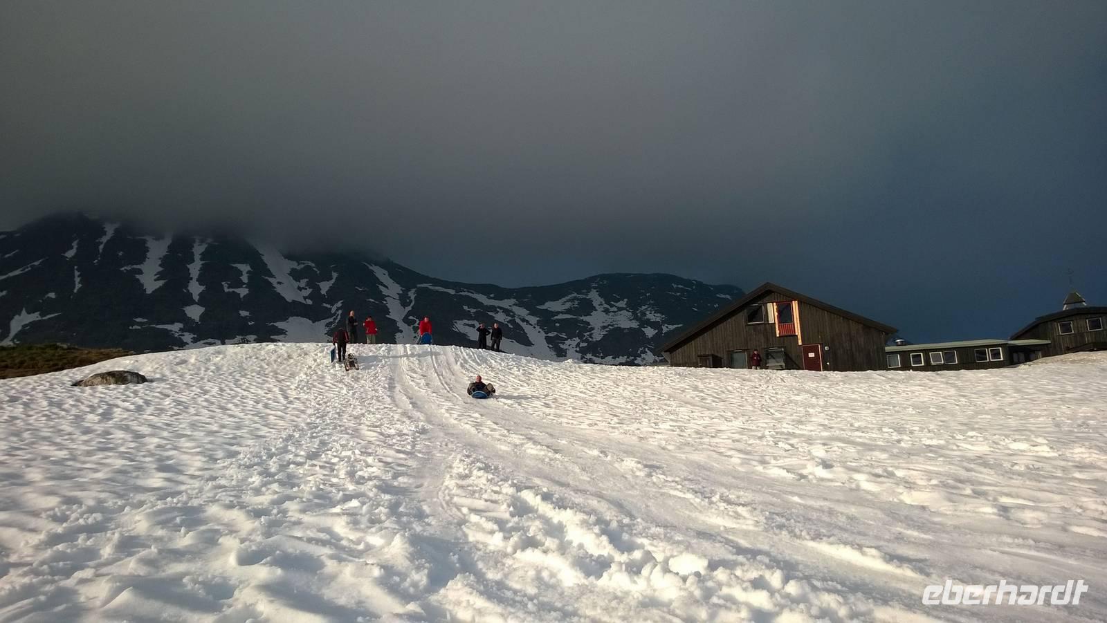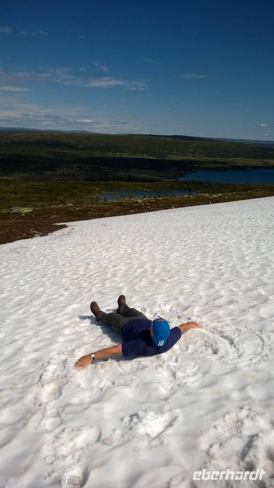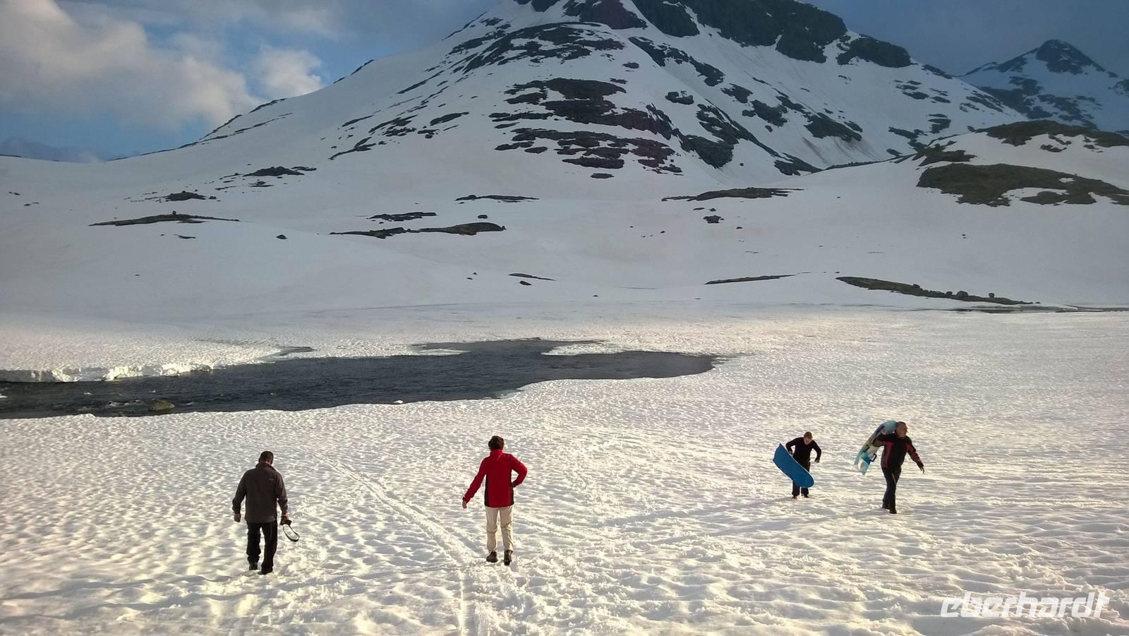 Am Morgen brüten wir unter der Sonne und hüten uns, einen Sonnenstich zu riskieren, am Abend stapfen wir durch Schnee und bauen Schneetrolle. Der Winter liegt nur 220km nördlich vom Hochsommer - und natürlich mehr als 1000 Meter höher.