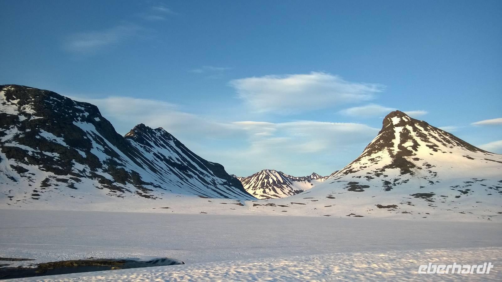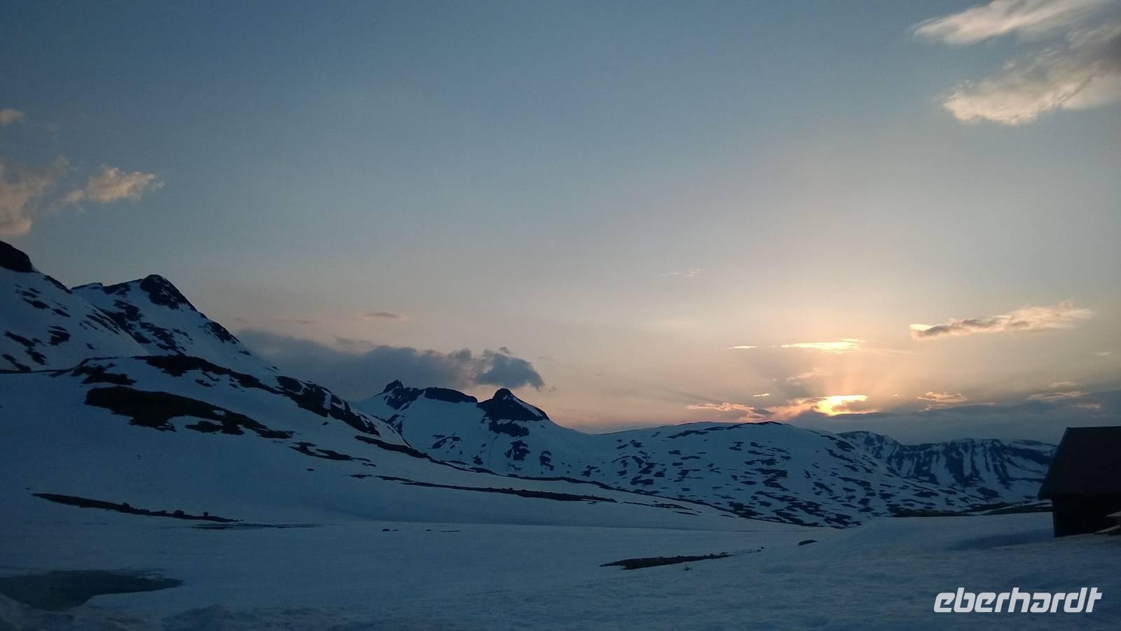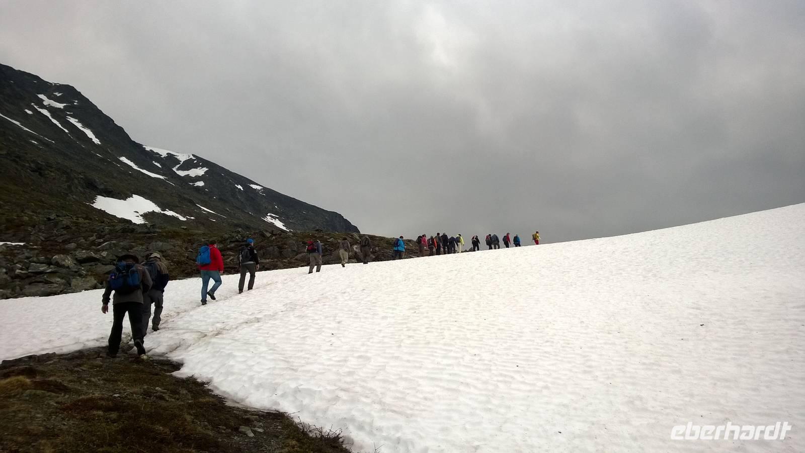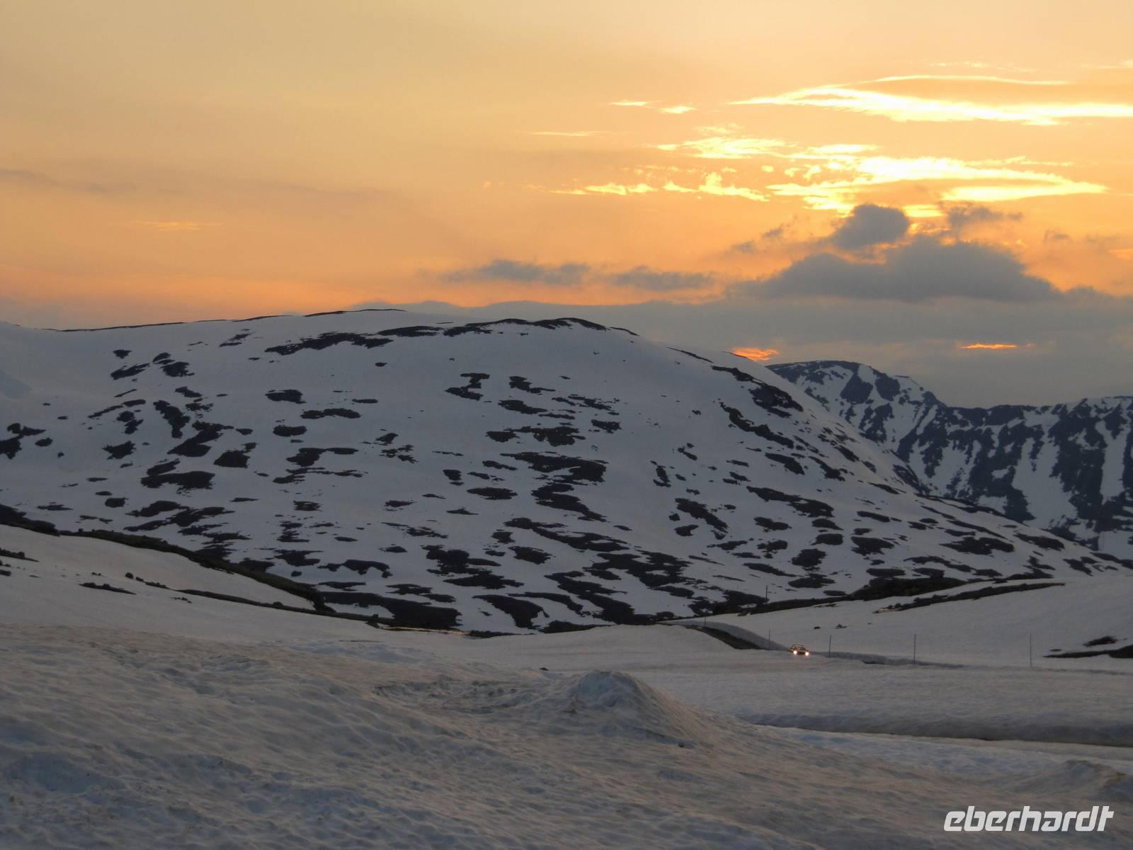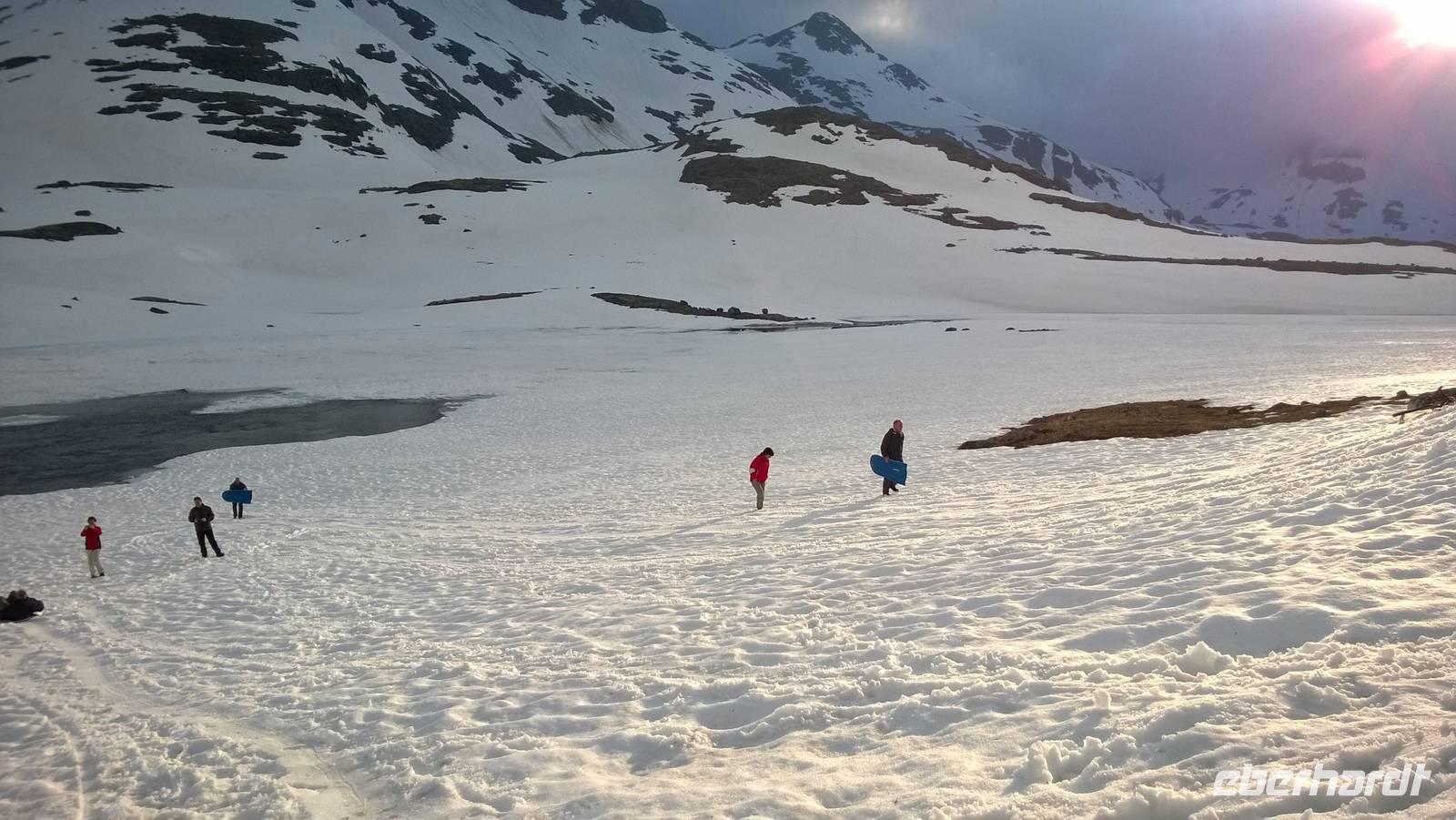 Am Morgen brüten wir unter der Sonne und hüten uns, einen Sonnenstich zu riskieren, am Abend stapfen wir durch Schnee und bauen Schneetrolle. Der Winter liegt nur 220km nördlich vom Hochsommer - und natürlich mehr als 1000 Meter höher.