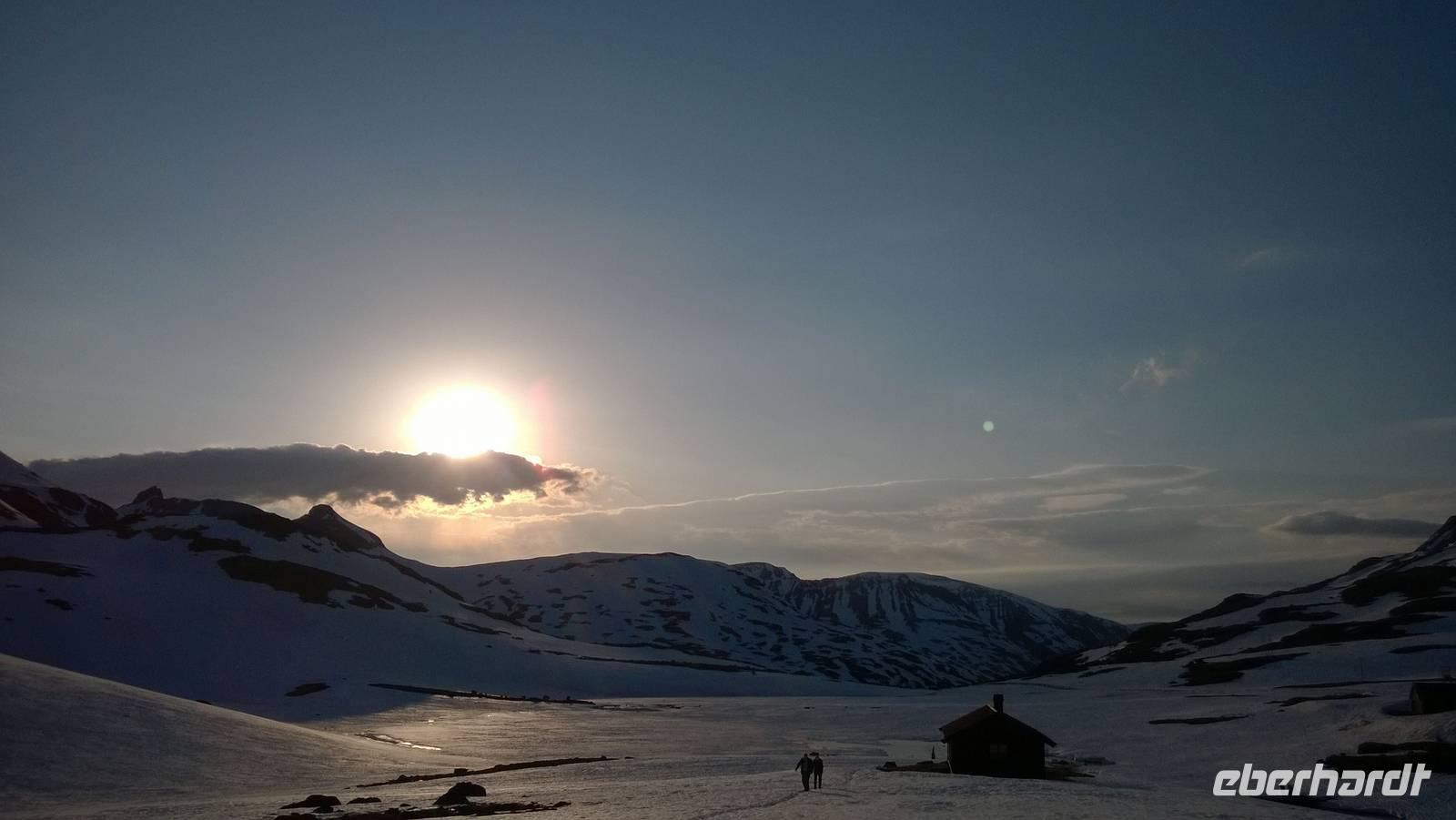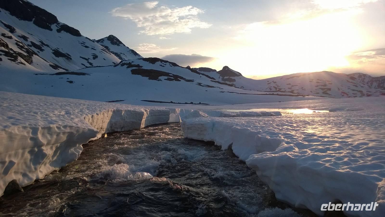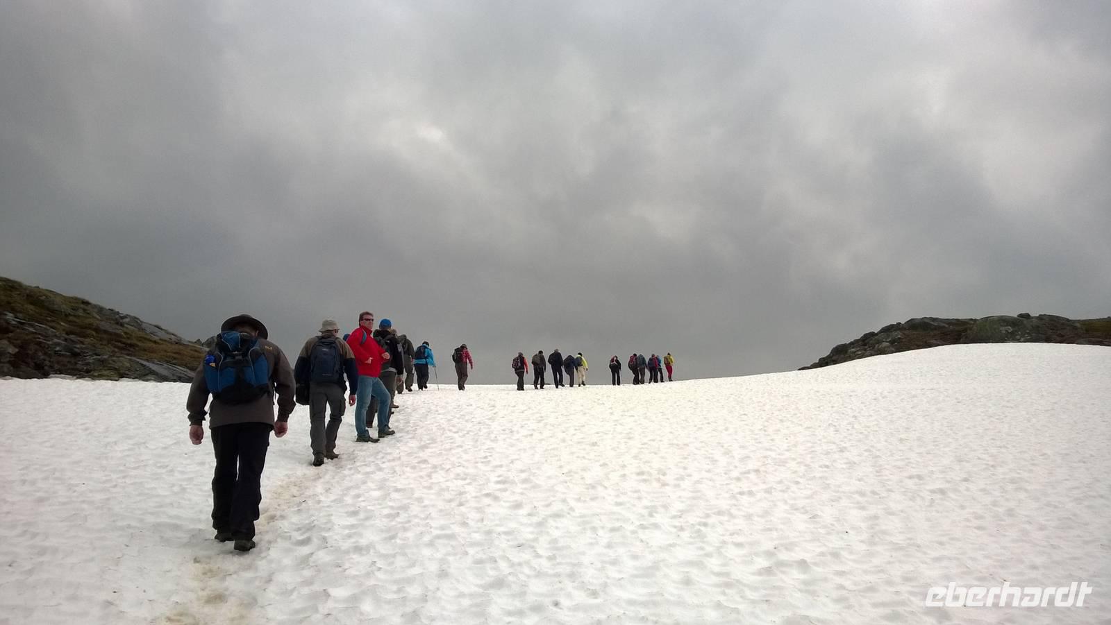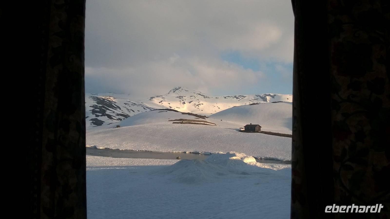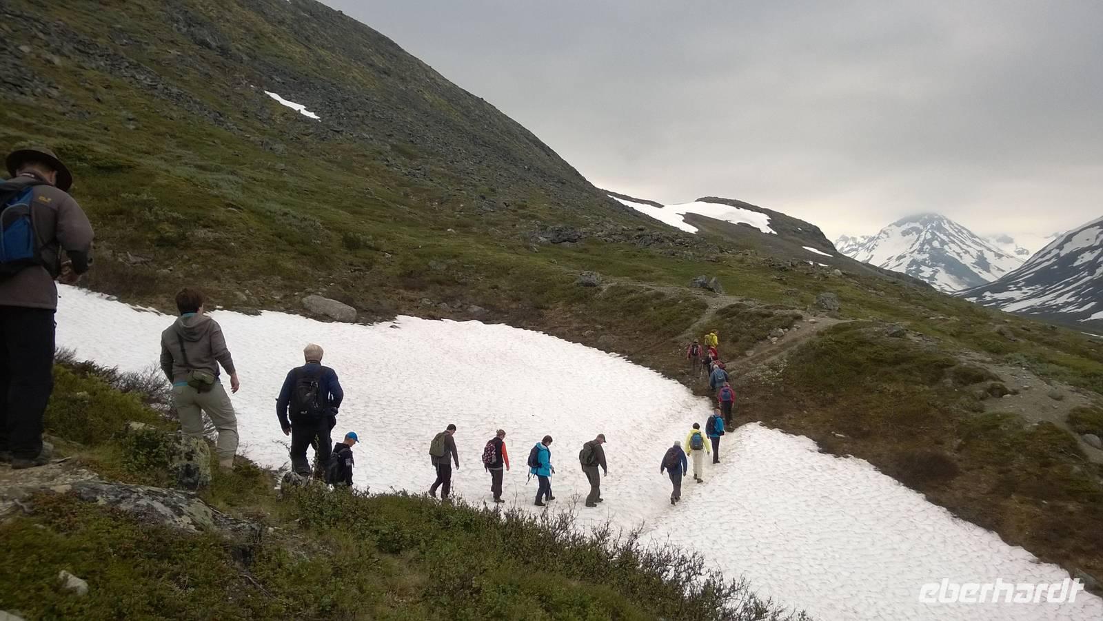 Am Morgen brüten wir unter der Sonne und hüten uns, einen Sonnenstich zu riskieren, am Abend stapfen wir durch Schnee und bauen Schneetrolle. Der Winter liegt nur 220km nördlich vom Hochsommer - und natürlich mehr als 1000 Meter höher.
