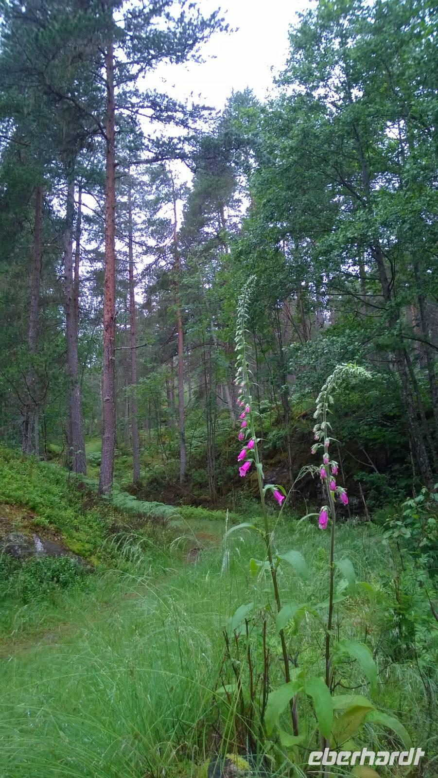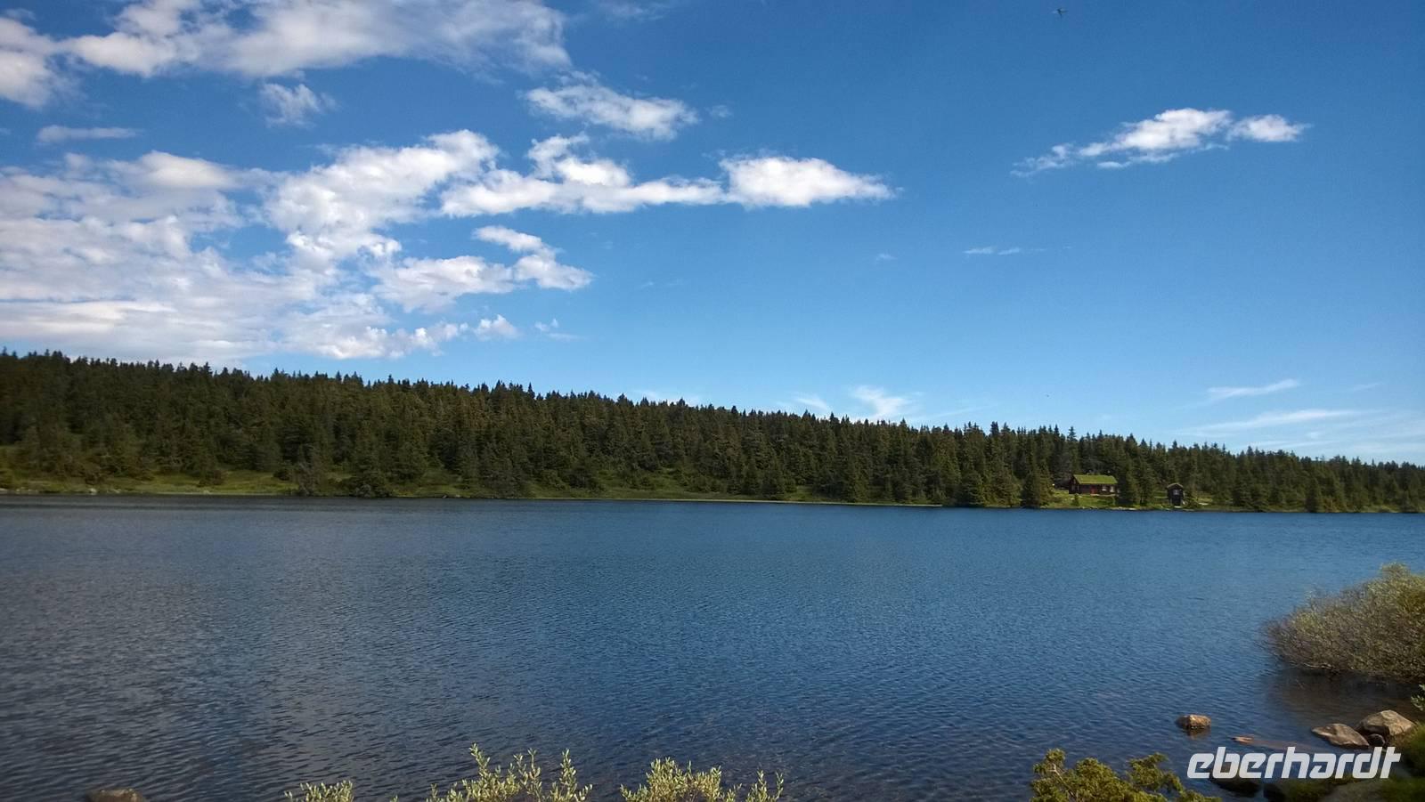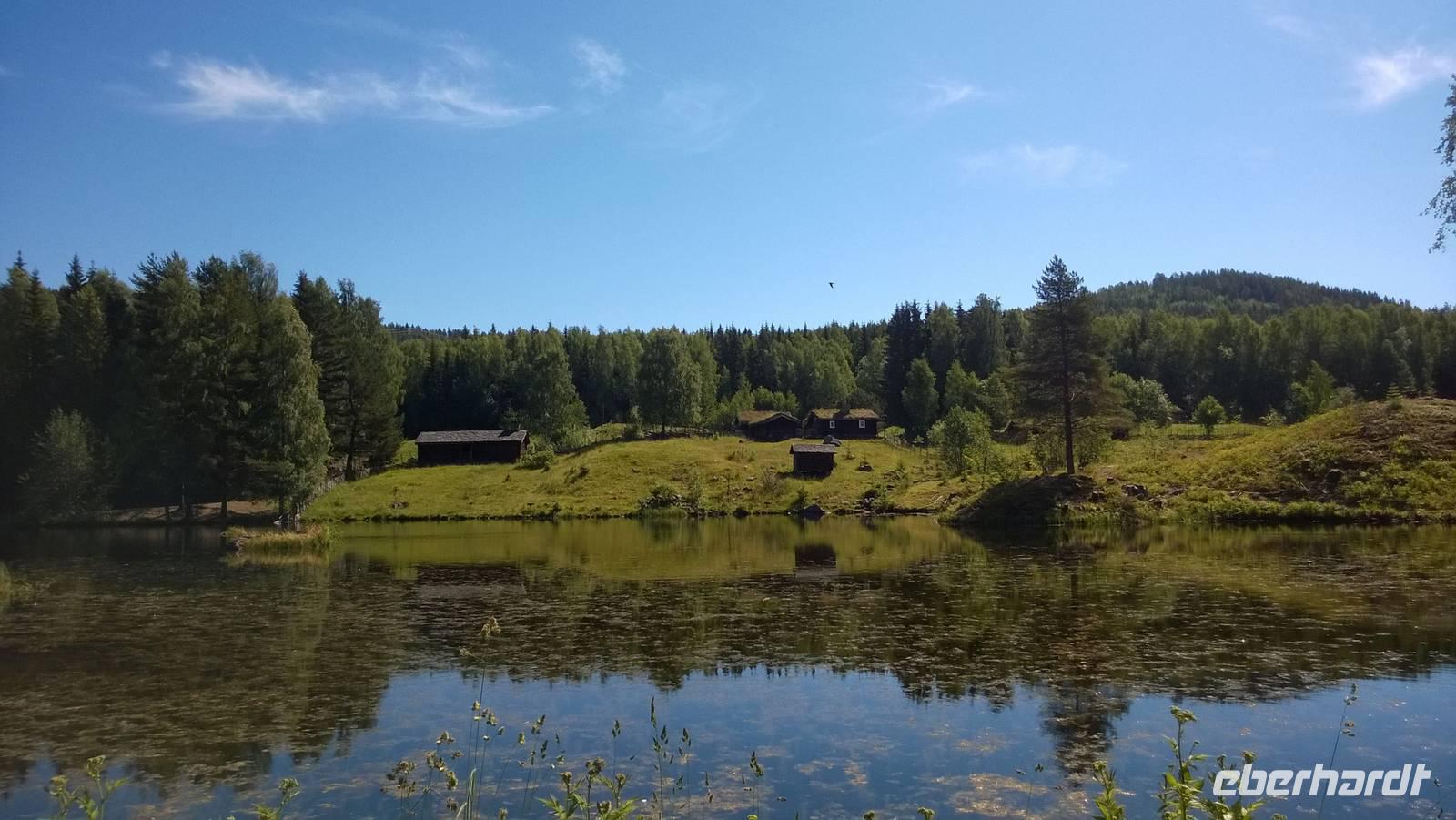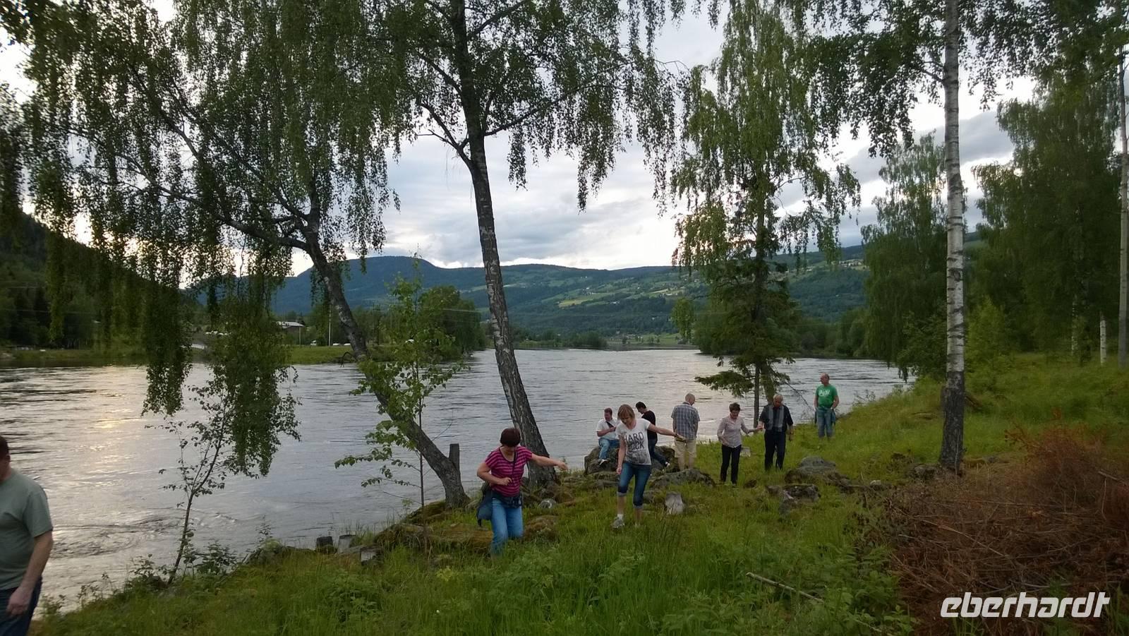 Schon jetzt sehen wir aus dem Bus heraus wunderschöne Natur. In Oslo Gardermoen sind wir mit dem Flugzeug gelandet, ein Teil der Gruppe war sogar schon da. Nun fahren wir Richtung Lillehammer, besichtigen die Schanzen und übernachten in Oyer. Auf der Strecke zum Hotel passieren wir wunderschöne Seen, die in der Sommersonne glitzern. Wir fahren am Ufer des Sees Mjösa entlang, durch das Guldbrandsdal, und am Fluss Gulbrandslaagen. Neben uns ragen die bewaldeten Berge hoch auf, Felsen blitzen durch das Grün, am Wegrand leuchten Lubinen wunderschön in bunten Farben.