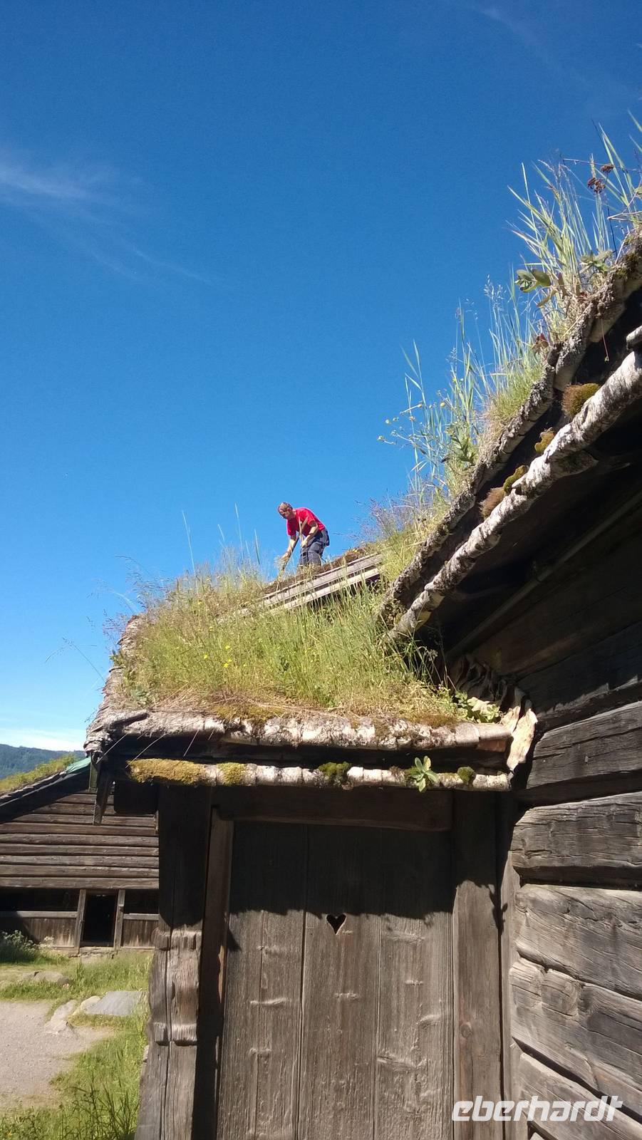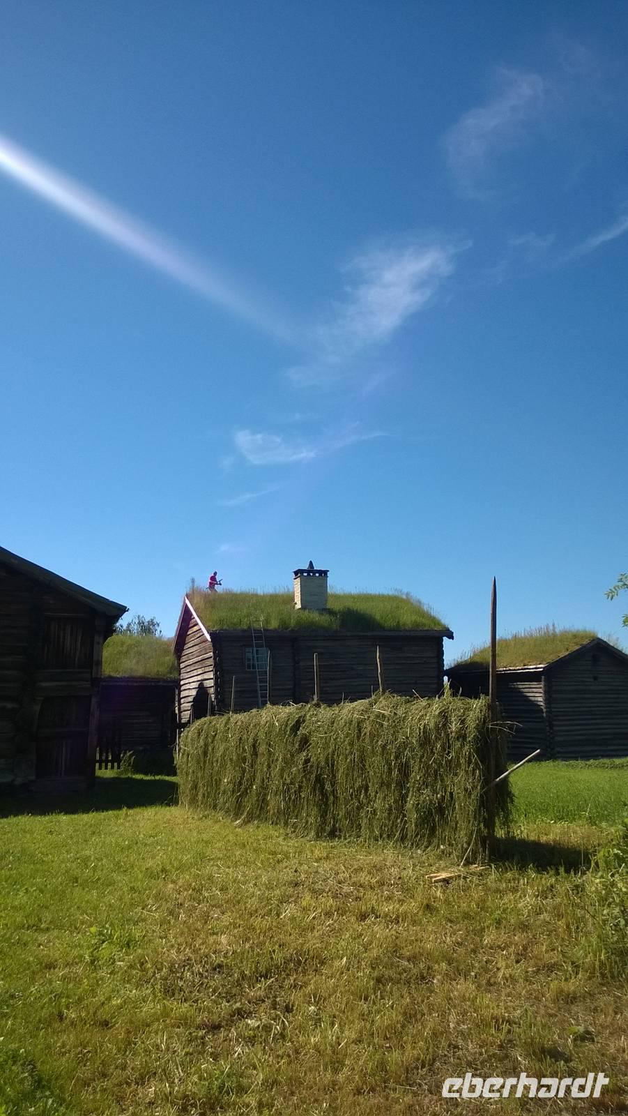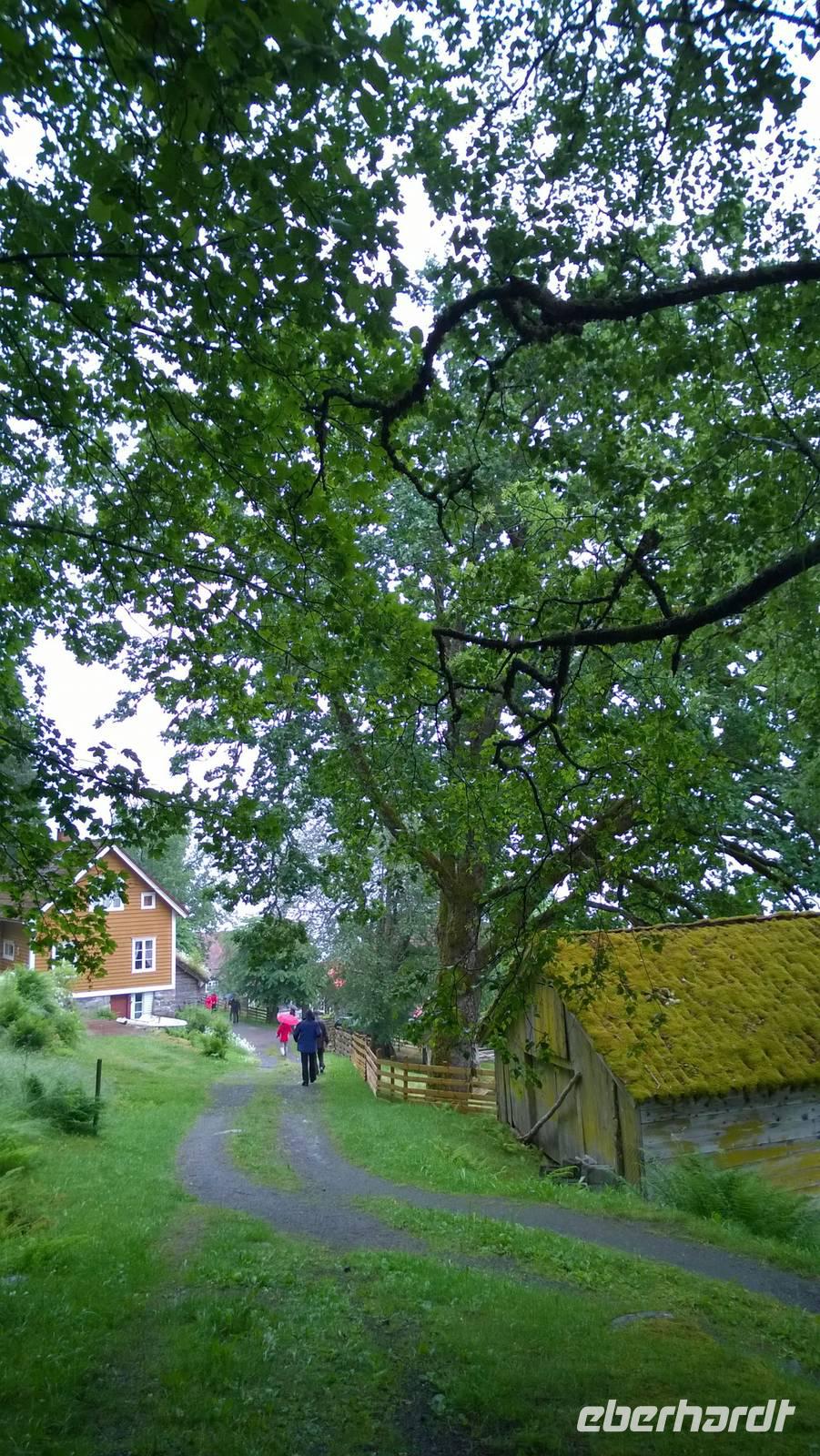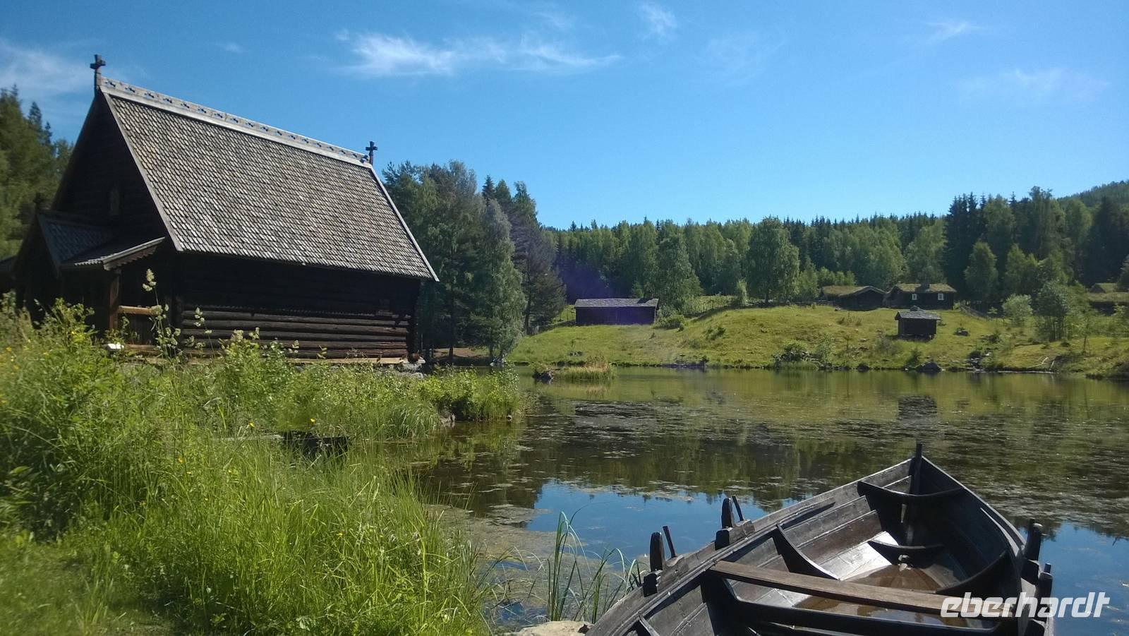 Das Freilichtmuseum Maihaugen in Lillehammer ist wirklich idyllisch! Unsere Museumsführerin Sarah bringt mit uns zusammen Leben in die alten, traditionellen Häuser. In der Schule sitzen wir geordnet nach Mädels und Buben, lernen etwas über die Besonderheiten des norwegischen Alphabets und singen „Bruder Jakob". Später im großen Wohnzimmer einer Bauernstube gruppieren wir uns um den langen Esstisch. Der Hausherr an der Stirnseite, die Mägde und Burschen ganz unten. Was für eine ulkige Rollenverteilung! Jedenfalls ist das wohl der unterhaltsamste Museumsbesuch seit Langem.
