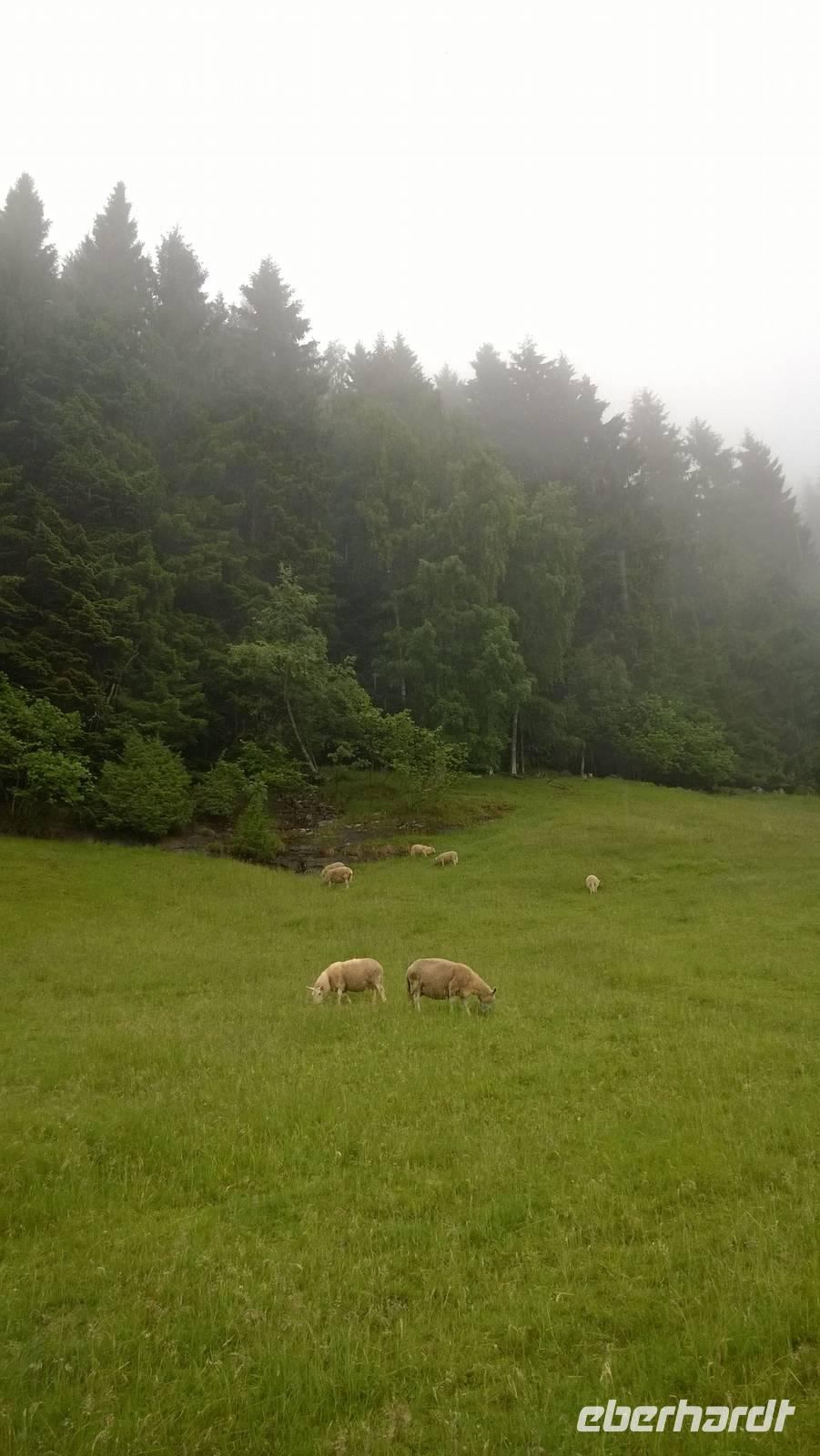 Irgendwann spät, nachdem zwei fußlahme Ehefrauen und Busfahrer Kai uns schon seit einer Ewigkeit in Vasbygdi sehnsüchtig erwarten, kommen wir doch noch an. Mit steifen Knien und müden Gliedern. Was für eine Wandertour! Es waren viele schöne Landschaften, die sich uns eingeprägt haben und viele schmale Wege, Brücken und Gewässer, die unsere Trittsicherheit getestet haben. Nun gibt's ein ordentliches Abendbrot in der wohl heimeligsten Unterkunft der Reise und dann bleibt wohl nicht viel anderes, als unter den gemütlichen Federkissen neue Energie zu tanken.