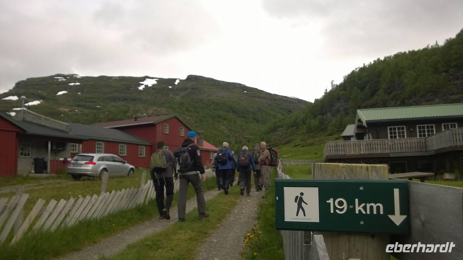 Die längste aller Wanderungen steht uns bevor und frohgemut warten wir in Osterbo auf unsere Wanderführerin Laila. Wer sollte schon damit rechnen, dass sich die 19 Kilometer nach Vasbygdi als ein solches Abenteuer herausstellen?