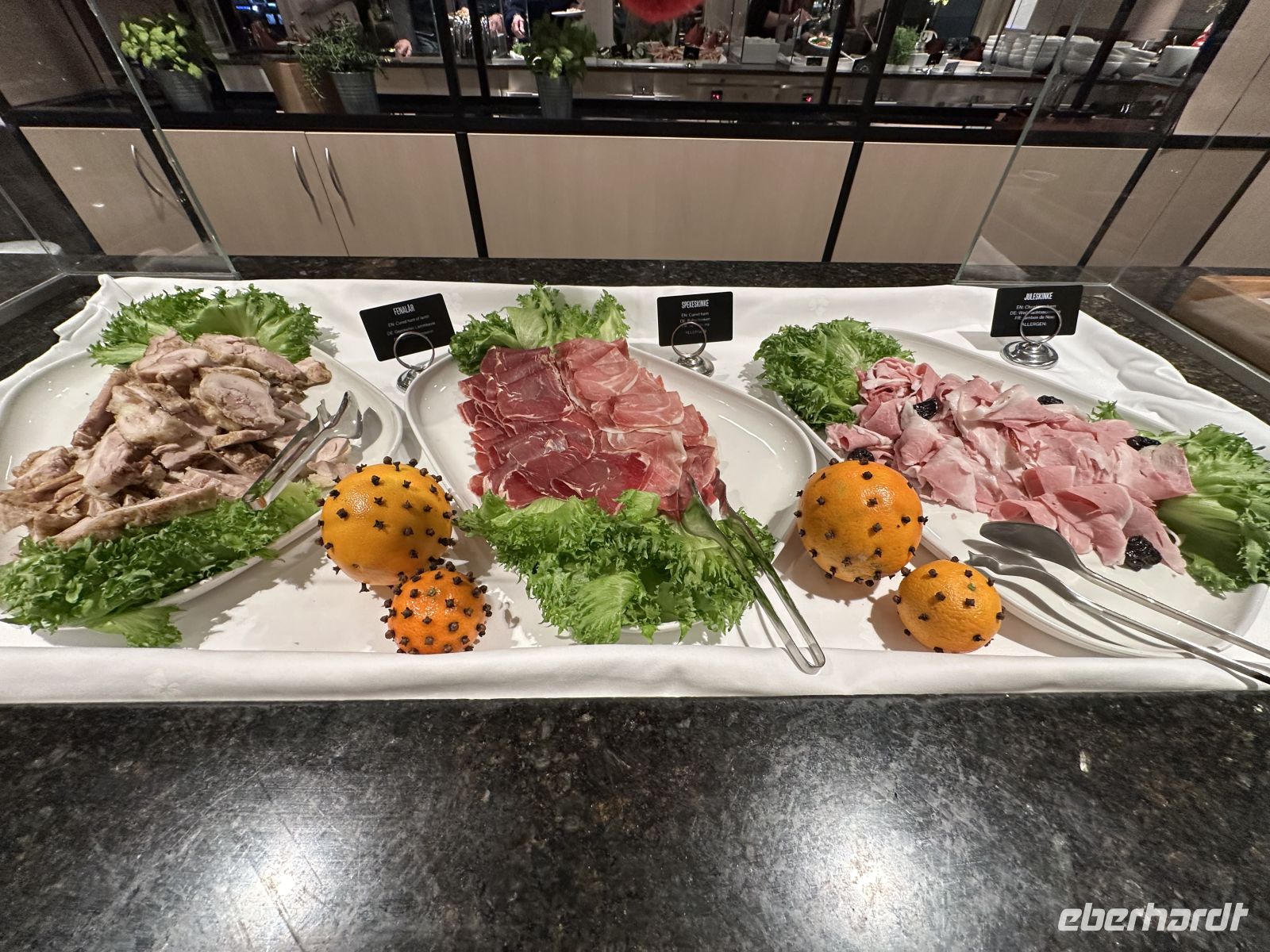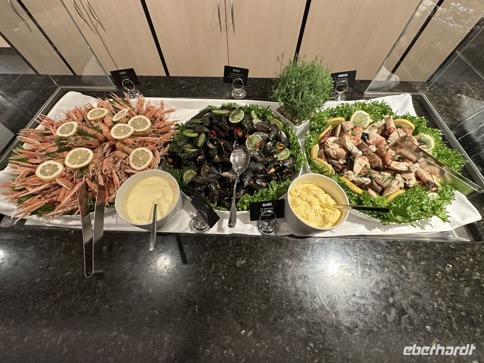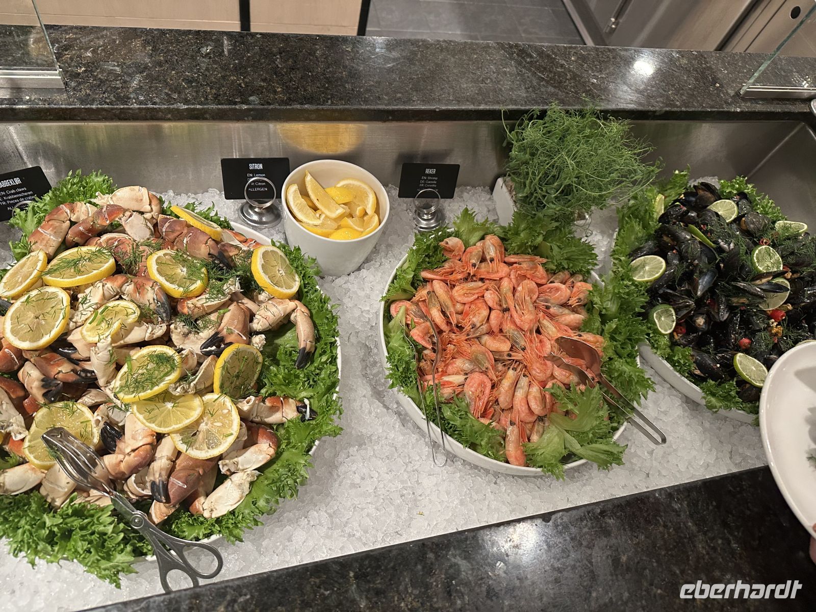 Nach dem Ablegen wartet eine Passage auf offener See auf uns. Das Wetter fordert seinen Tribut: Das Restaurant bleibt am Abend halb leer, da viele Mitreisende mit Seekrankheit kämpfen. Zudem macht ein Erkältungsvirus an Bord die Runde. Wer standhaft geblieben ist, genießt ein opulentes Weihnachtsbuffet: Viel Fleisch (wie das typische Pinnekjøtt) und der berühmte Stockfisch. Meeresfrüchte-Satt: Lachs, feine Fischspezialitäten, Muscheln und beeindruckende Krabbenbeine.