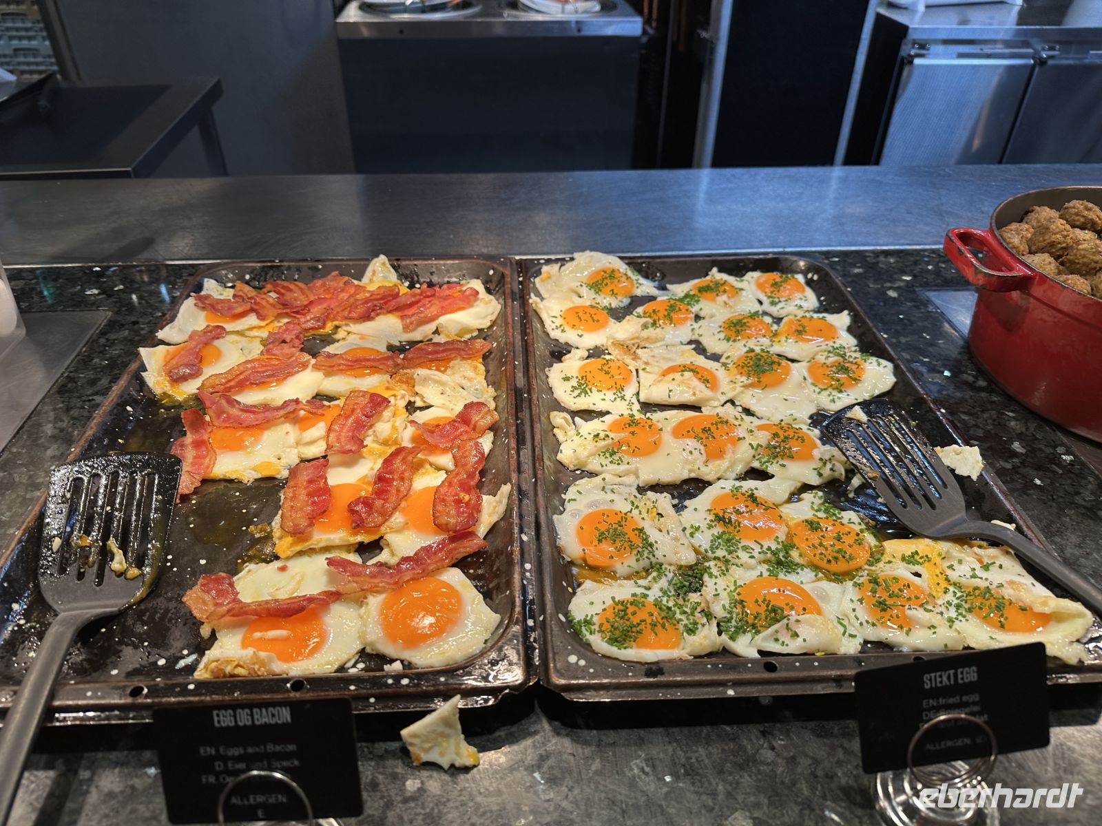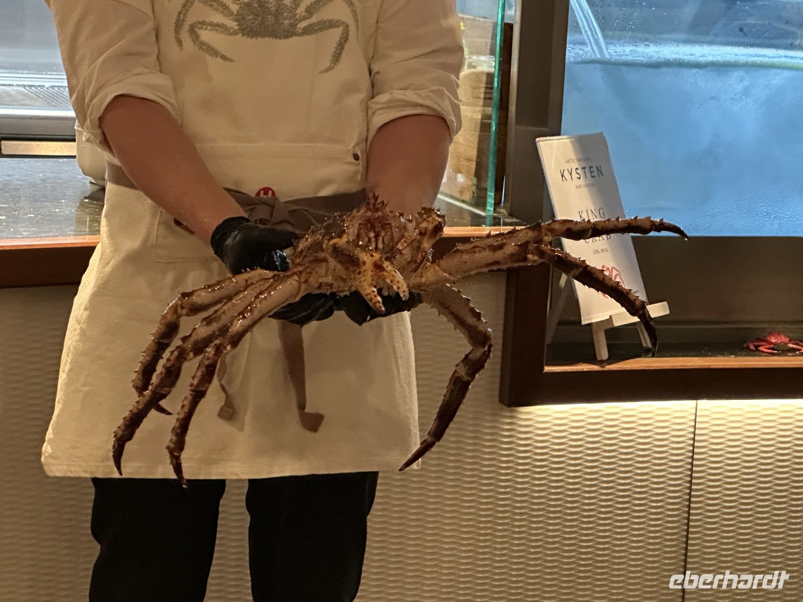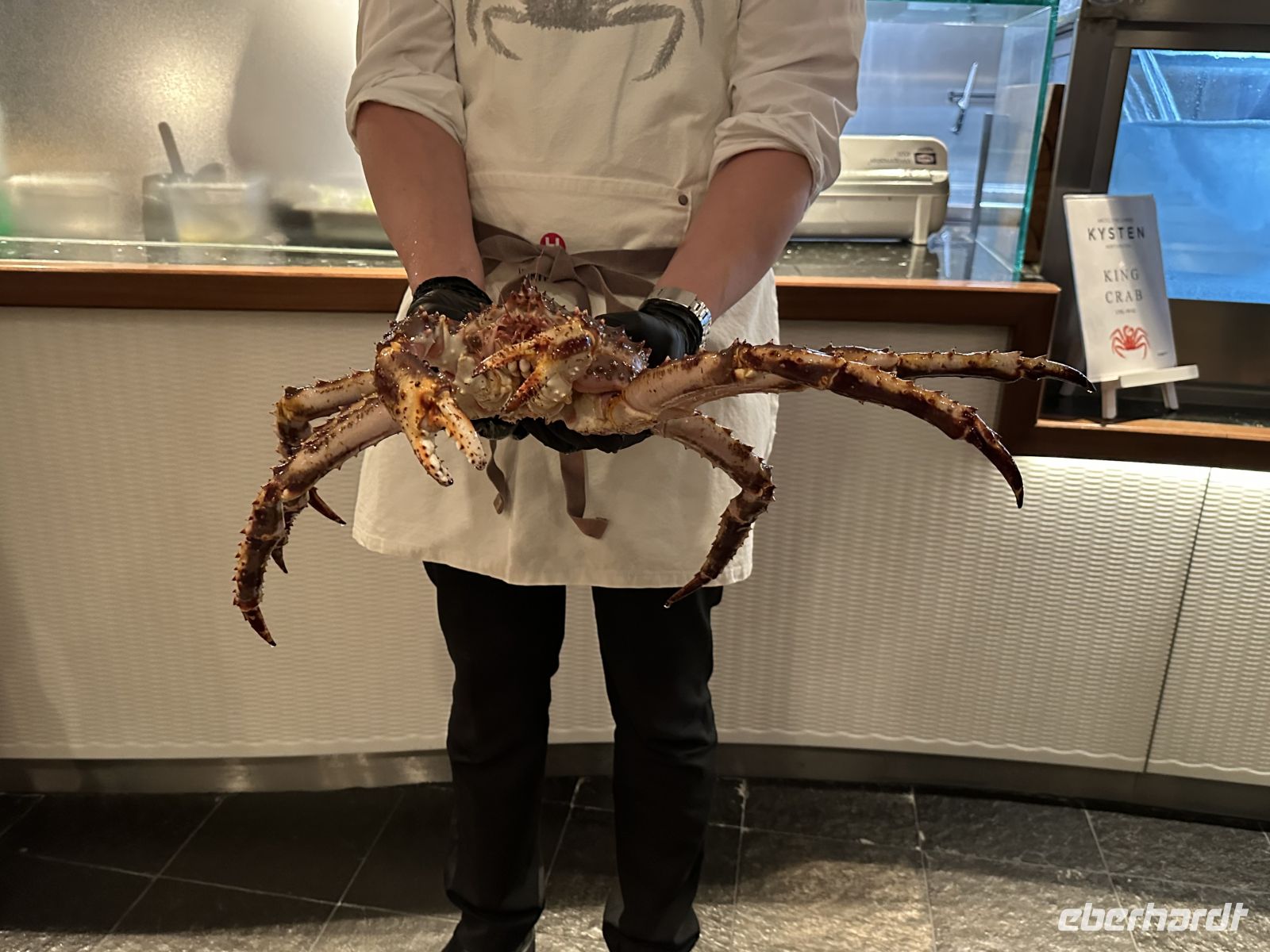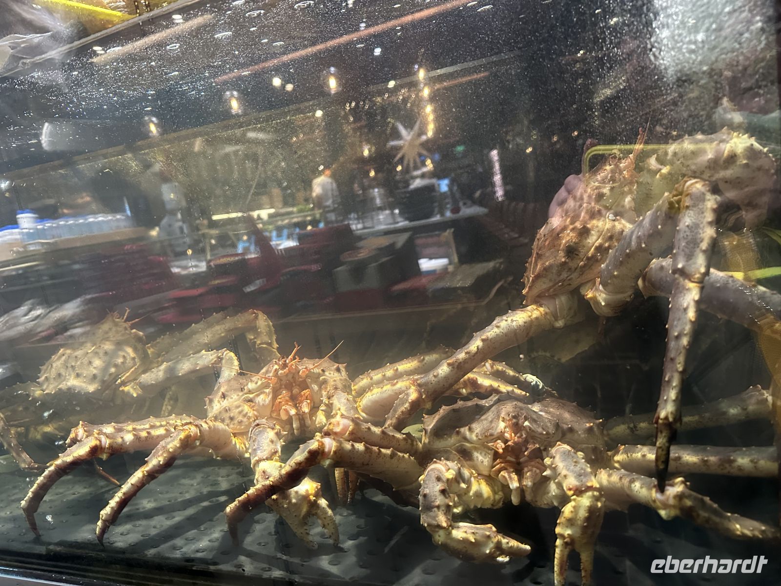 Nach dem Ablegen wartet eine Passage auf offener See auf uns. Das Wetter fordert seinen Tribut: Das Restaurant bleibt am Abend halb leer, da viele Mitreisende mit Seekrankheit kämpfen. Zudem macht ein Erkältungsvirus an Bord die Runde. Wer standhaft geblieben ist, genießt ein opulentes Weihnachtsbuffet: Viel Fleisch (wie das typische Pinnekjøtt) und der berühmte Stockfisch. Meeresfrüchte-Satt: Lachs, feine Fischspezialitäten, Muscheln und beeindruckende Krabbenbeine.