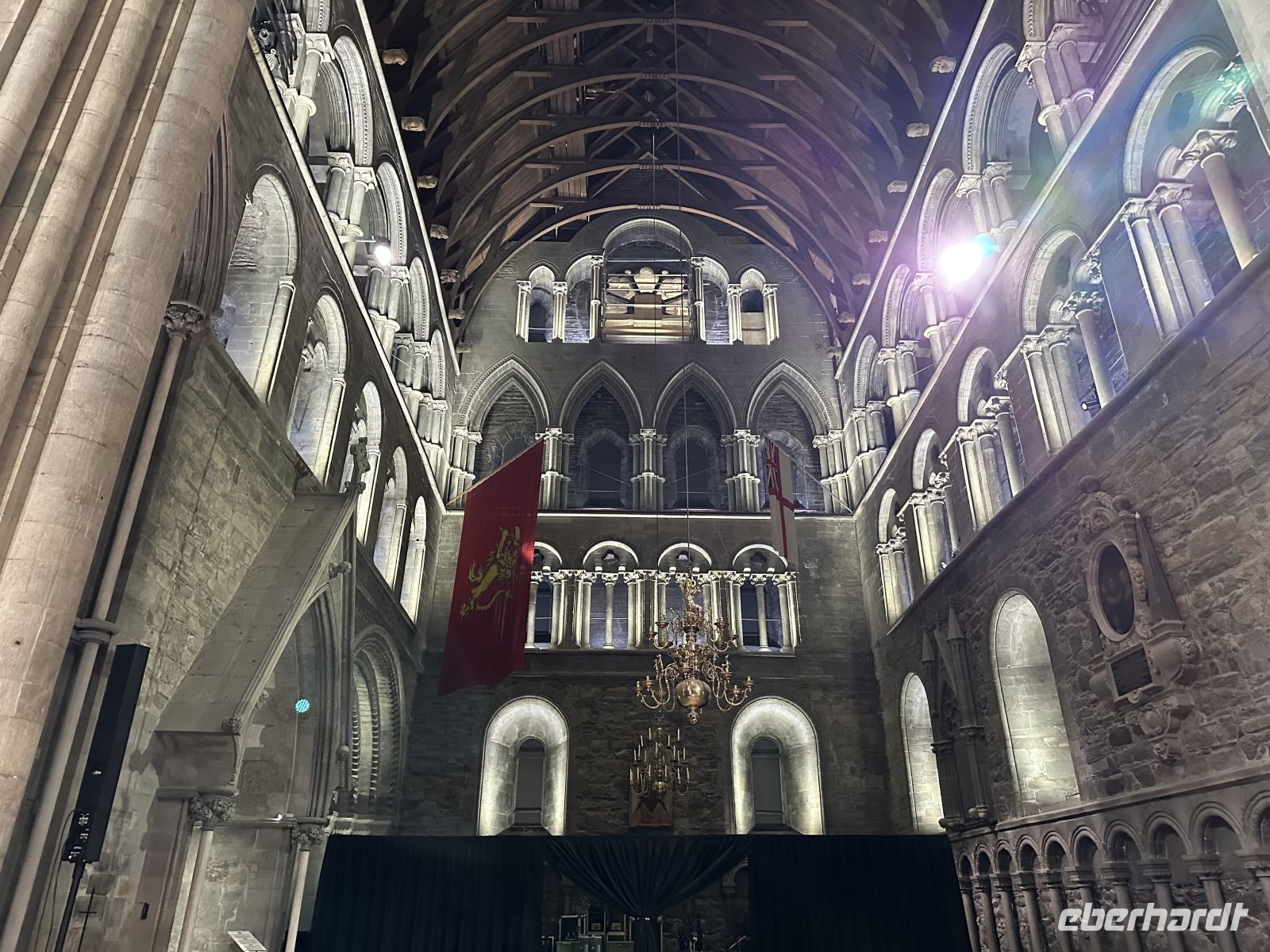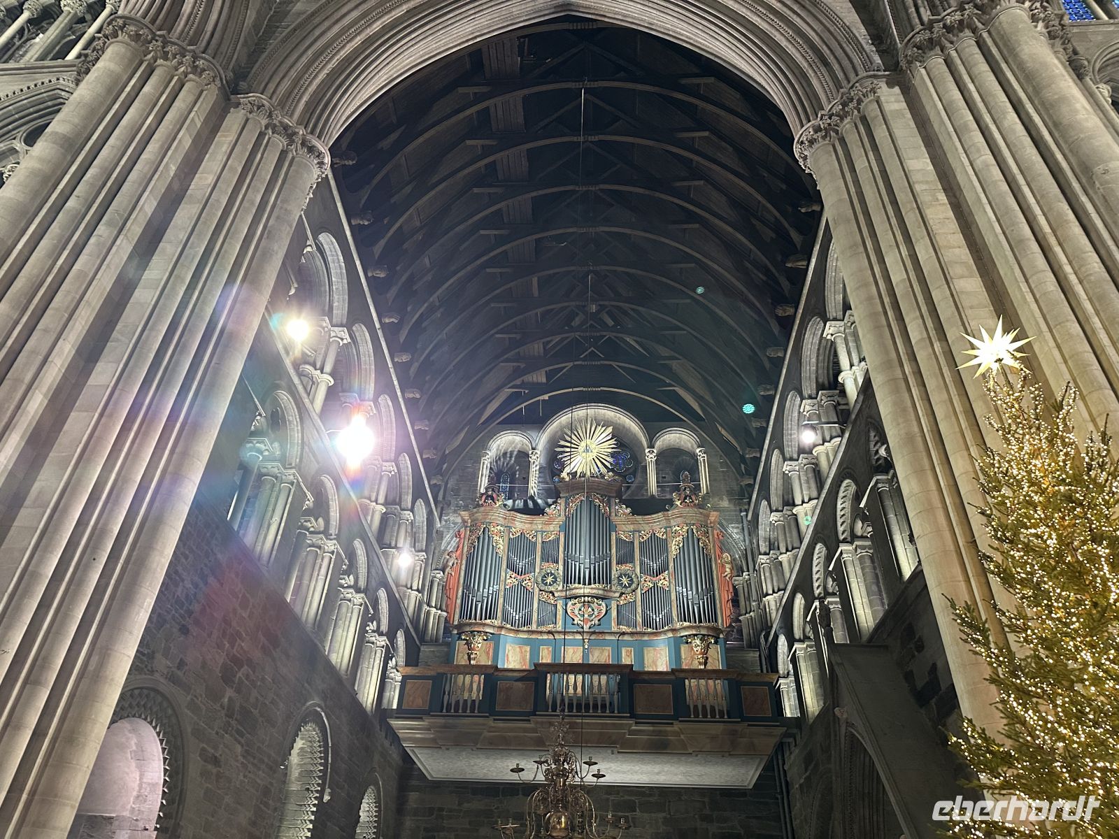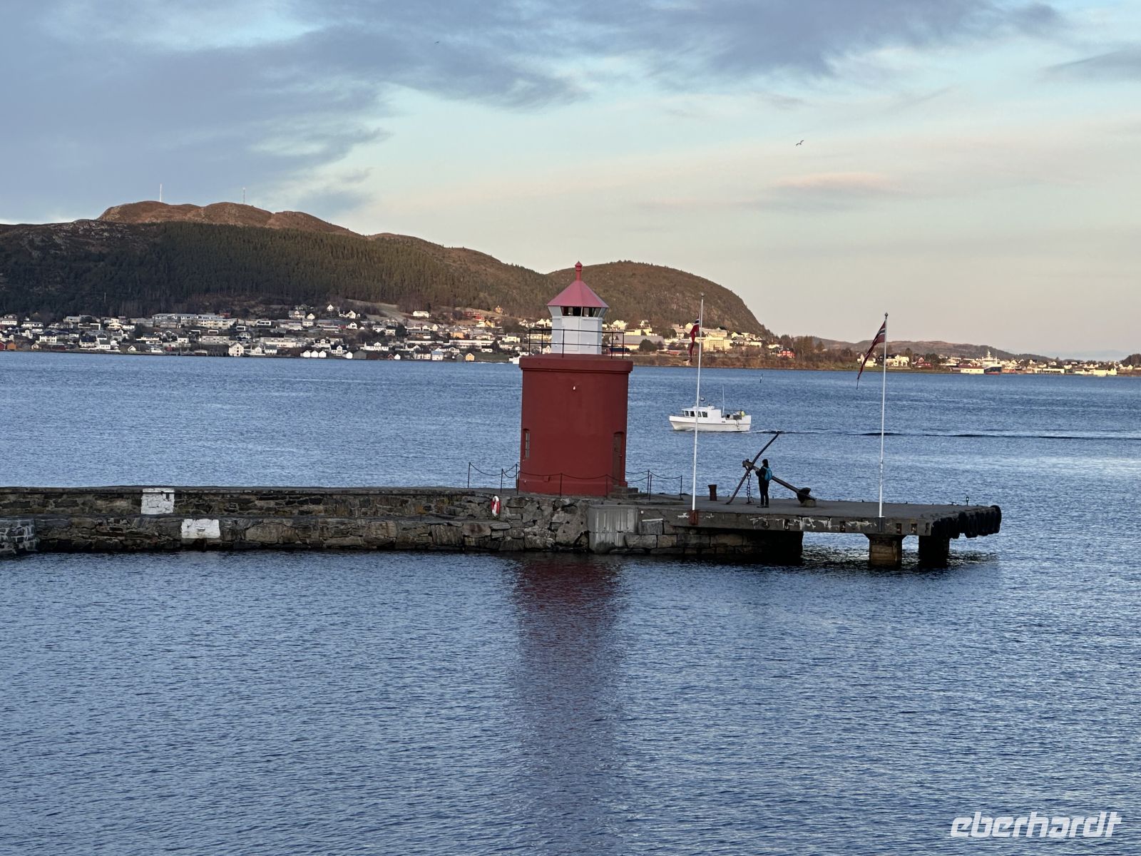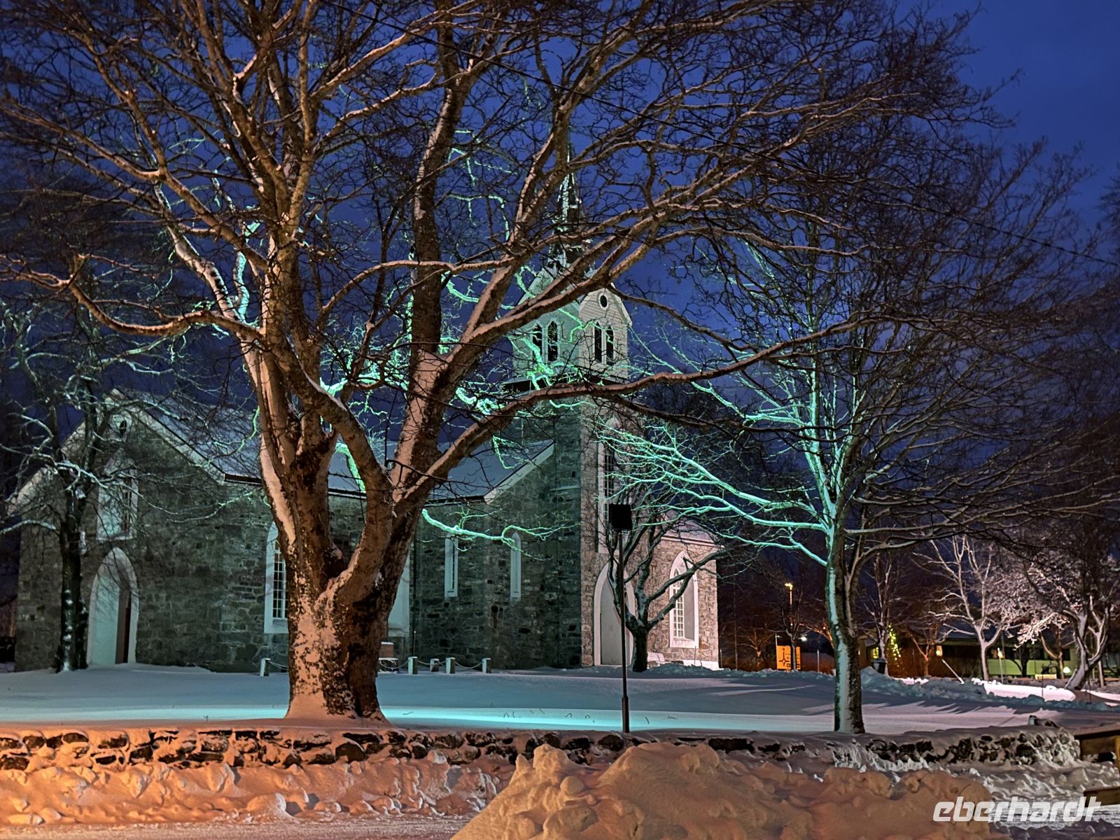 Der heutige Heiligabend beginnt mit einem echten Spektakel: Um 10:30 Uhr findet die Polarkreistaufe statt. Meeresgott Njord persönlich gibt uns die Ehre. Wer mutig genug ist, lässt sich eine Kelle Eiswürfel in den Nacken schütten – eine Tradition, die wir mit einem anschließenden Schnaps und viel Spaß feiern. Auch für die Post ist gesorgt: Der Postmann kommt extra an Bord, damit wir unsere Weihnachtskarten mit dem begehrten Polarkreis-Sonderstempel versehen können. Wer möchte, hilft danach beim Schmücken des Weihnachtsbaums, während das Schiff langsam auf Bodø zusteuert. Um 13:00 Uhr laufen wir in den Hafen ein. Die geplante Fackelwanderung zur Kirche gestaltet sich als Herausforderung: Es ist extrem windig, und die Flammen haben gegen die Böen einen schweren Stand. Dennoch machen wir uns auf den Weg. Der Gottesdienst um 14:00 Uhr ist so gut besucht, dass die Kirche aus allen Nähten platzt – nicht jeder findet einen Platz im Inneren.