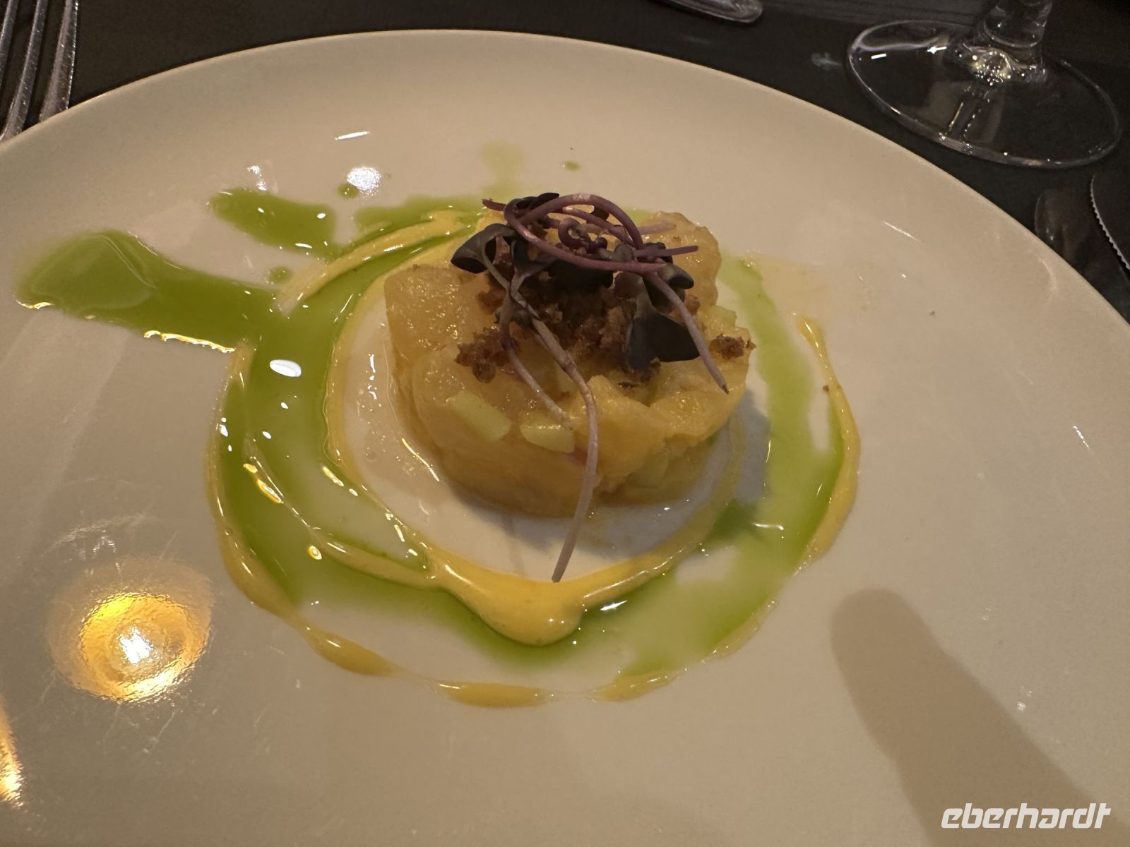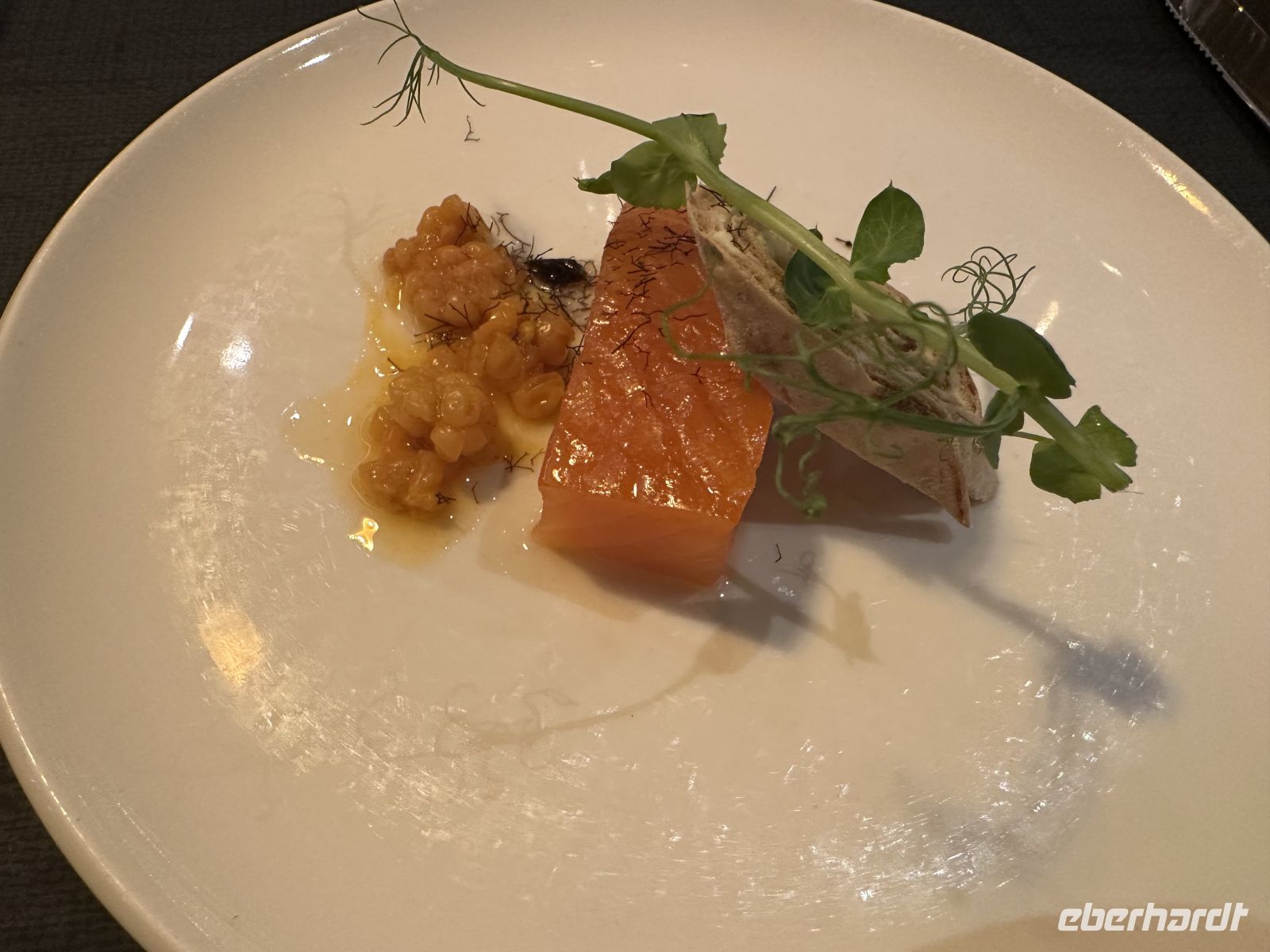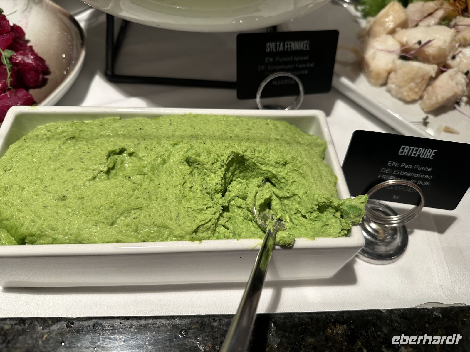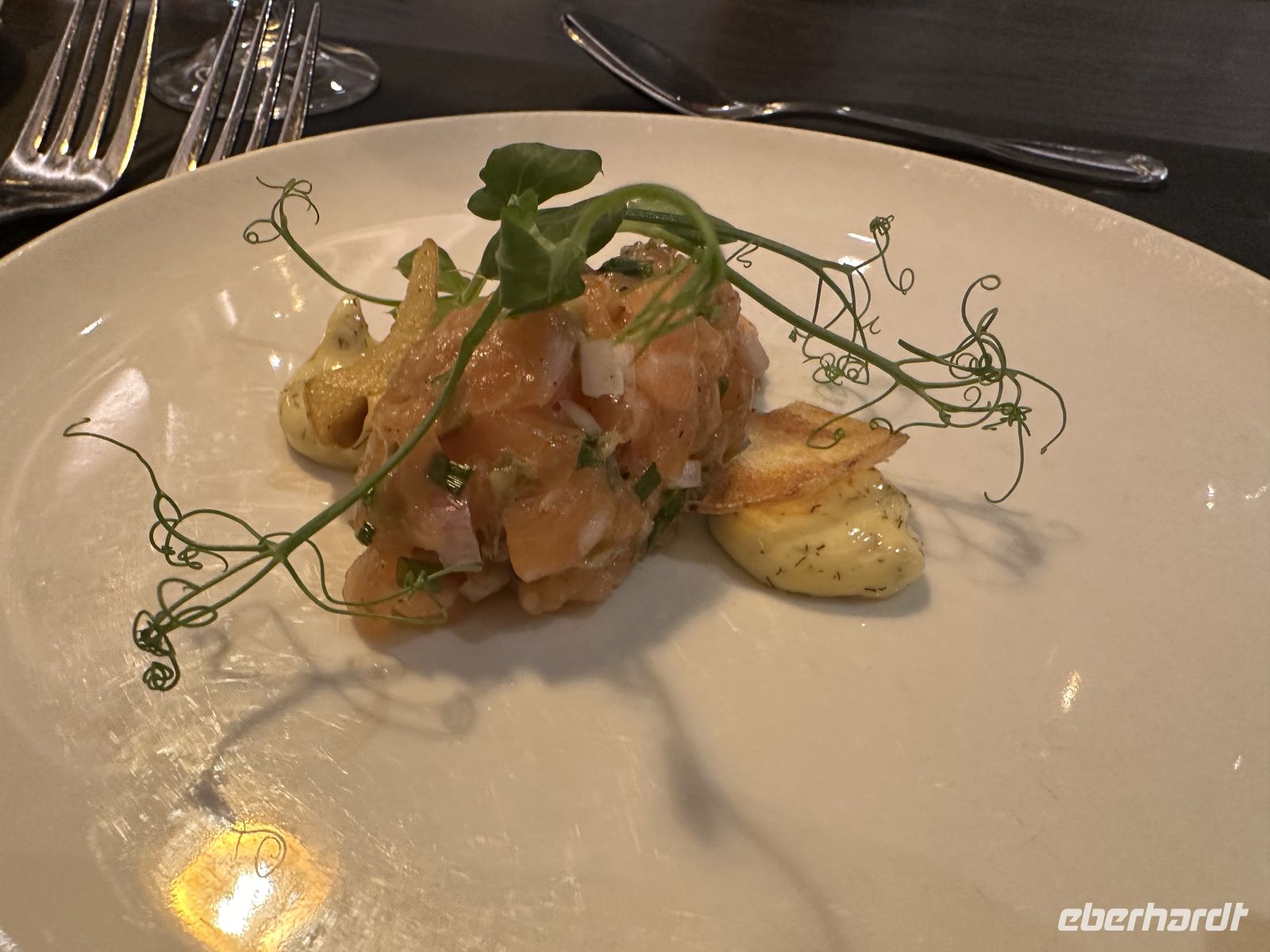 • Vorspeisen: Den Auftakt macht ein feines Lachstatar, gefolgt von einer wärmenden Erbsensuppe.