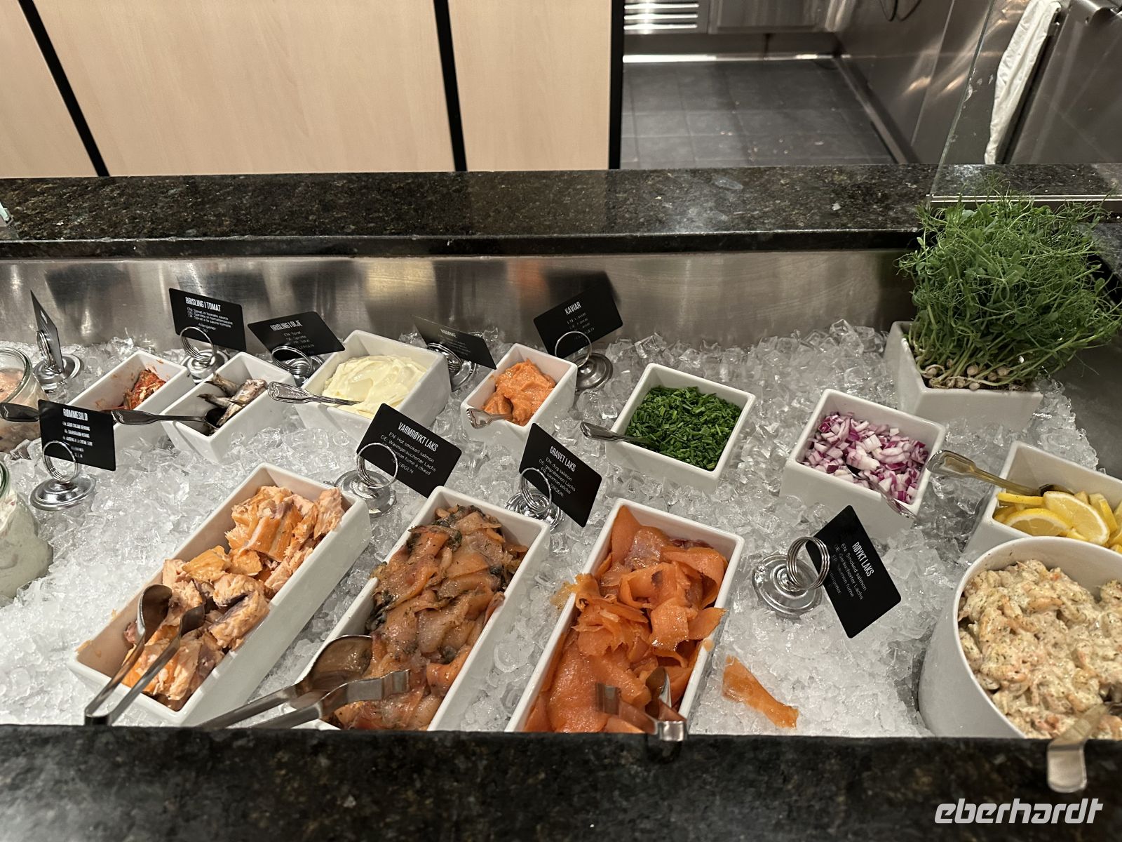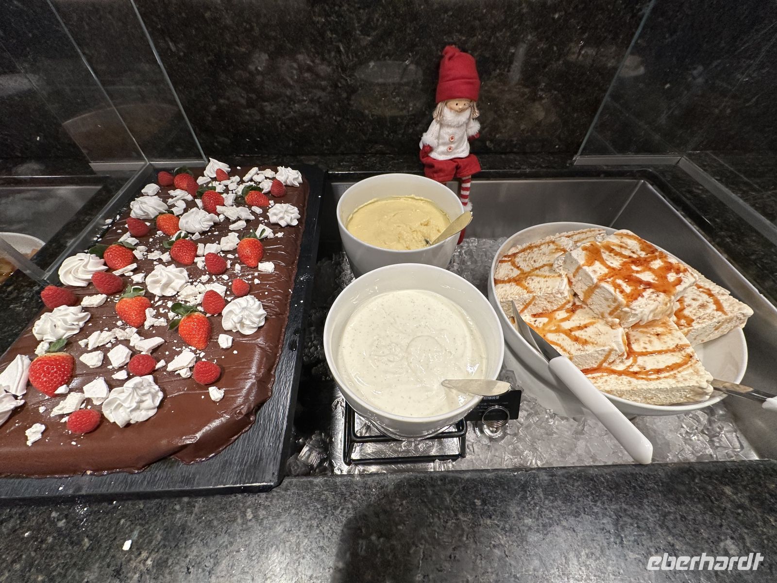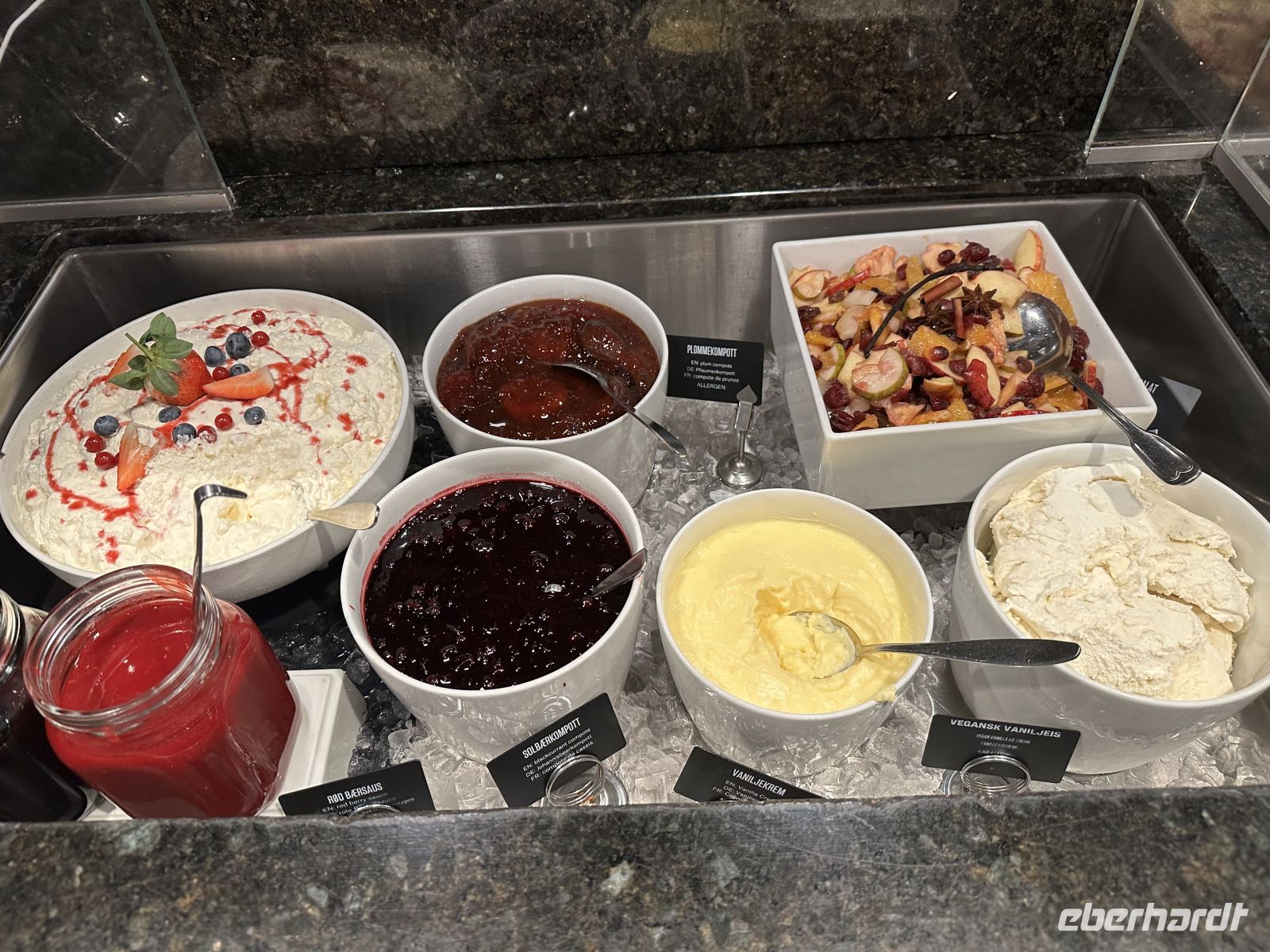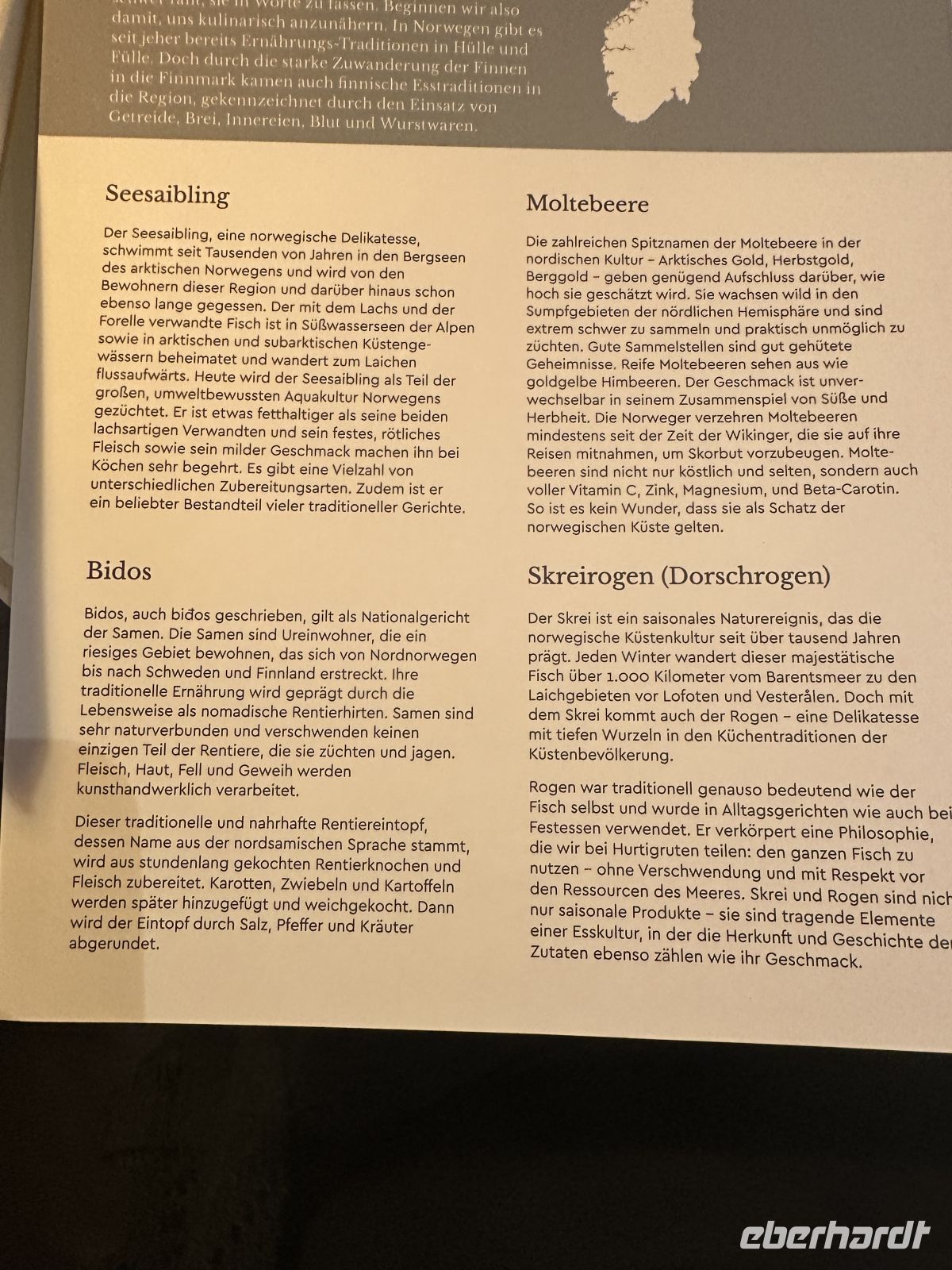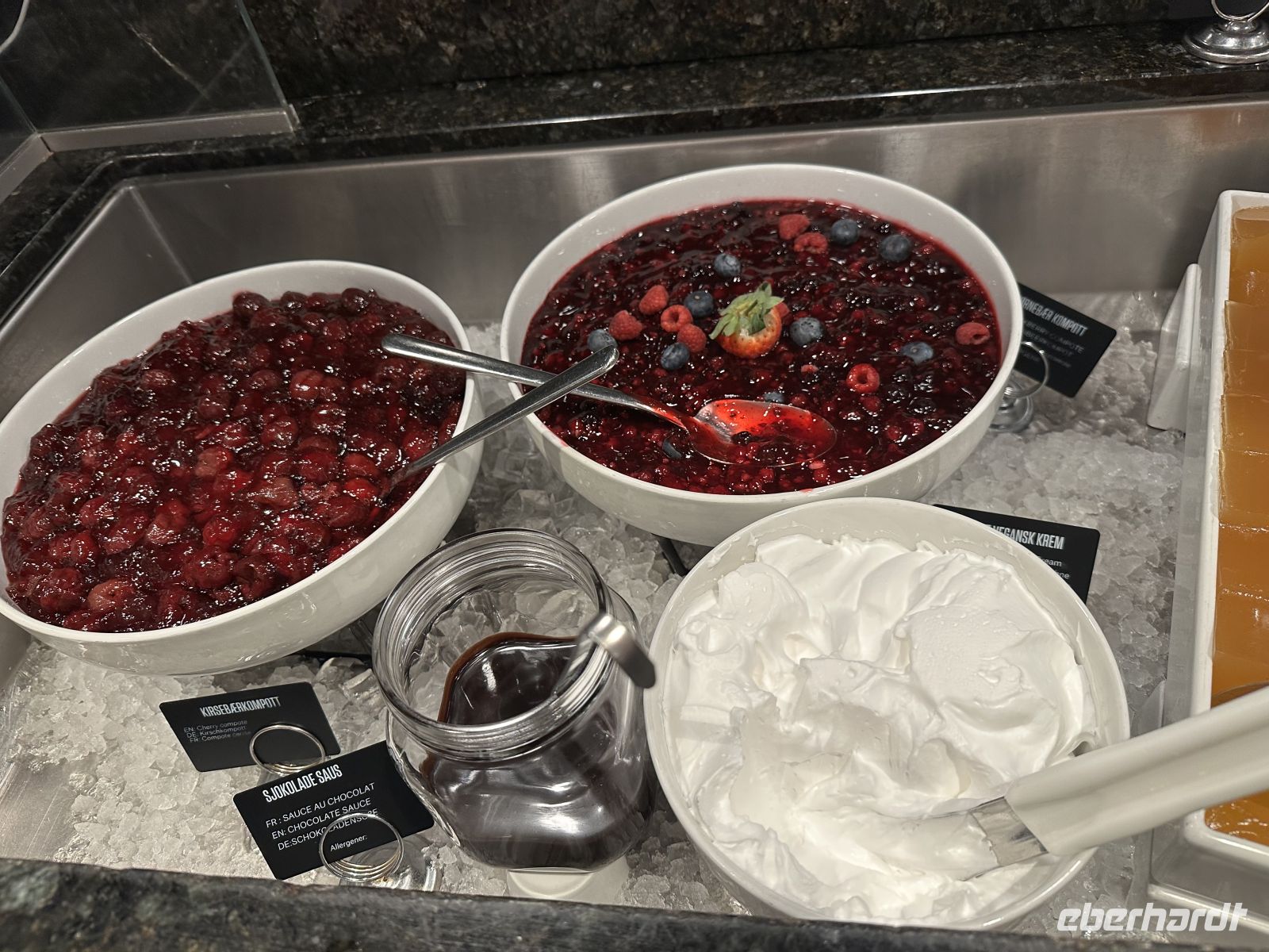• Dessert: Den krönenden Abschluss bildet ein Biskuit mit Vanilleeis, Baiser und den typisch norwegischen Moltebeeren.