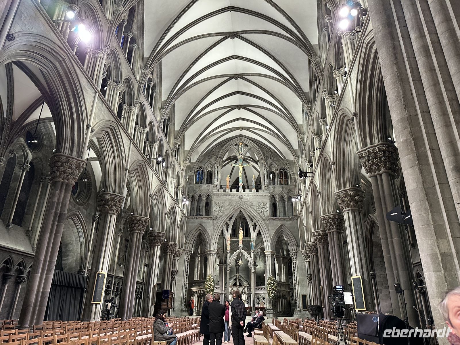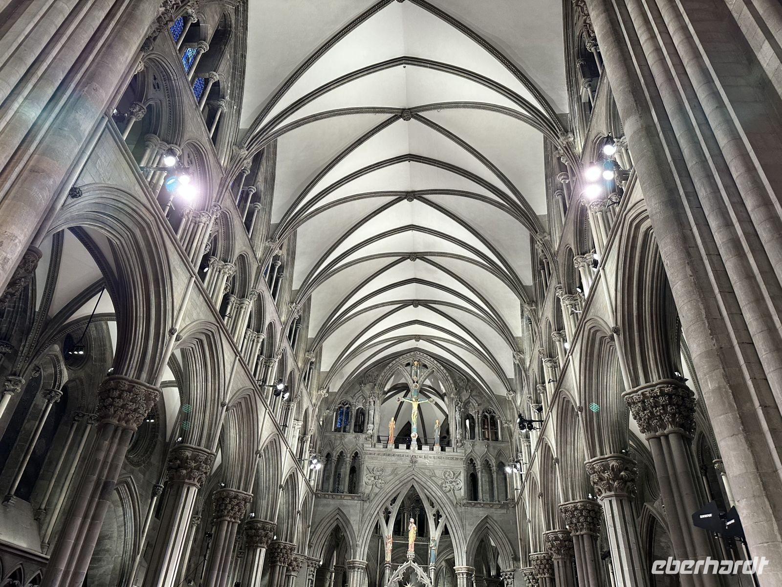 Der Morgen beginnt mit einem kleinen Rätsel auf See: Wir begegnen einem anderen Hurtigruten-Schiff, doch plötzlich liegt unsere MS Nordlys vollkommen still. Warum wir uns eine Zeit lang nicht bewegen, bleibt unklar – die Stille auf dem Wasser hat jedoch etwas fast Magisches. Diese Verzögerung wirkt sich auf unseren Zeitplan aus. Statt um 09:45 Uhr laufen wir erst nach 10:00 Uhr im Hafen von Trondheim ein. Um uns wenigstens ein bisschen Spielraum zu verschaffen, wird die Abfahrt kurzerhand von 12:45 Uhr auf 13:00 Uhr verlegt. Unser örtlicher Stadtführer Paolo nimmt die Herausforderung sportlich an. Der erste Teil des Rundgangs findet fast im Laufschritt statt. Zum Glück habe ich die Gruppe vorab gewarnt: Nur diejenigen, die gut zu Fuß sind, haben sich heute angeschlossen. Trotz des hohen Tempos kommen wir verspätet am imposanten Nidarosdom an. Jetzt muss es schnell gehen: Im Besucherzentrum melden wir uns am Gruppenschalter an und umgehen so die lange Schlange. Als „Eintrittskarte“ erhalten wir kleine runde Aufkleber. Unsere Kontaktperson Ingrid ist wegen unserer Verspätung natürlich nicht mehr am Eingang zu finden, doch Paolo beweist Spürsinn und macht sie im Dom ausfindig. Die Führung selbst ist fantastisch – informativ, tiefgründig und mit einer großen Portion Humor gewürzt. Danach drosseln wir das Tempo ein wenig und schlendern etwas gemäßigter zurück, sodass wir gegen 12:45 Uhr wieder am Schiff eintreffen. Zurück auf der MS Nordlys wird es weihnachtlich: Bei einem Wettbewerb im Plätzchen-Verzieren lassen einige Gäste ihrer Kreativität an großen Pfefferkuchenherzen freien Lauf. Um 16:00 Uhr folgt der nächste Programmpunkt: Ein spannender Vortrag beantwortet die Frage: „Wer waren die Wikinger?“ Um 17:15 Uhr lädt Jan, der Leiter des Expeditionsteams, zum täglichen Infotreffen ein. Es ist eine schöne Tradition: Er zeigt Bilder der gestrigen Erlebnisse und gibt Ausblicke auf den nächsten Tag. Zudem bekommen wir erste Ausschnitte des Reisefilms zu sehen, den ein Crewmitglied während der Fahrt erstellt (der Film kann später für 400 NOK erworben werden).