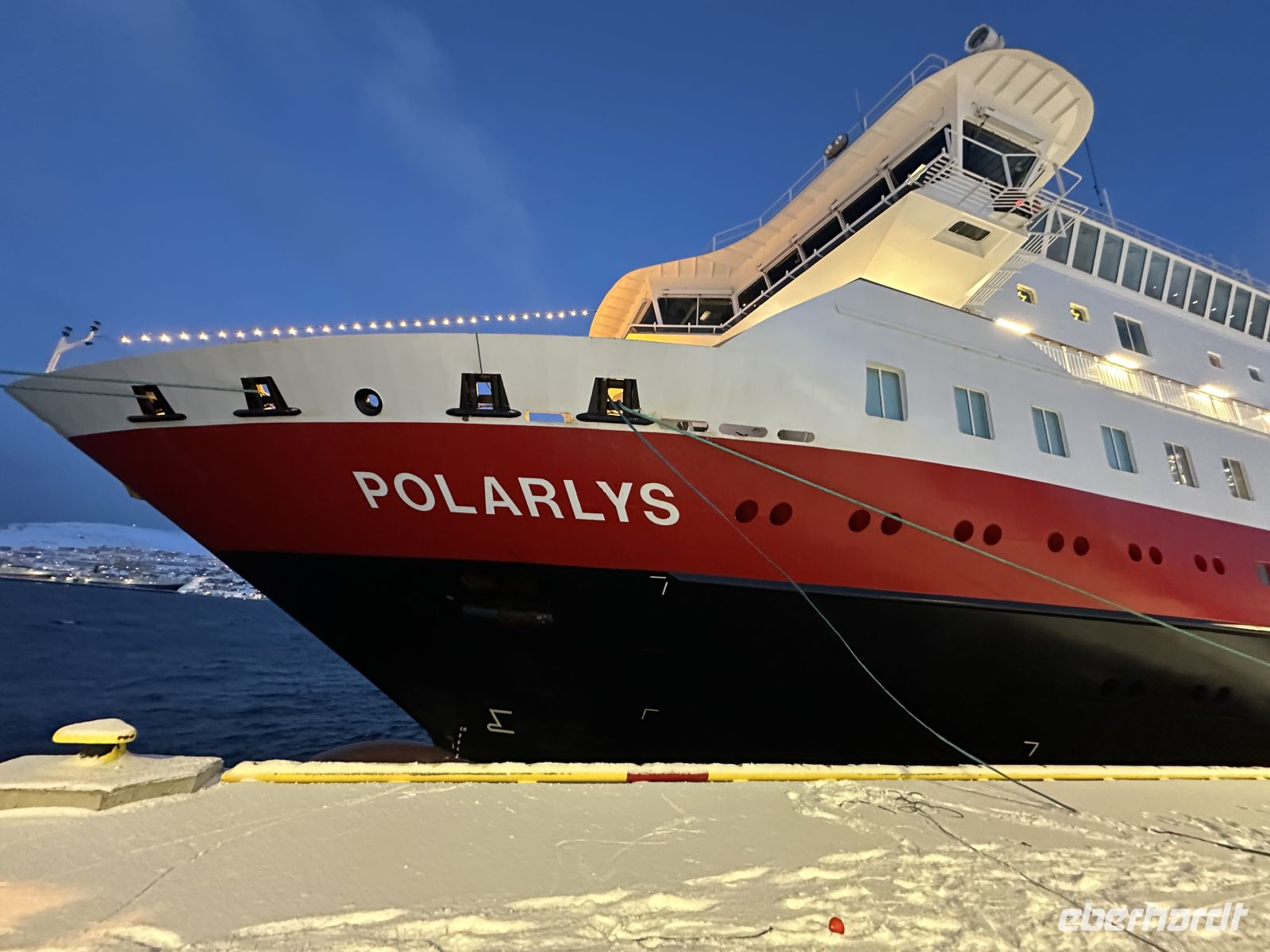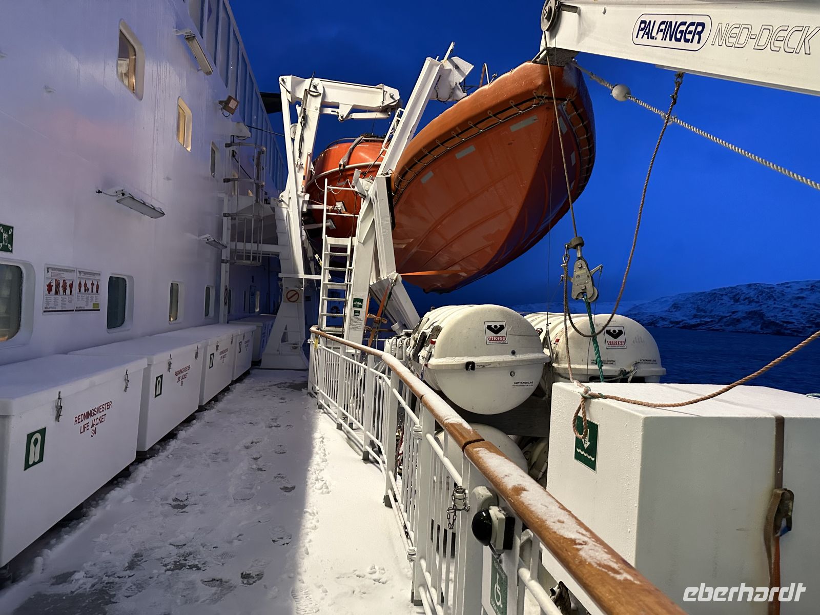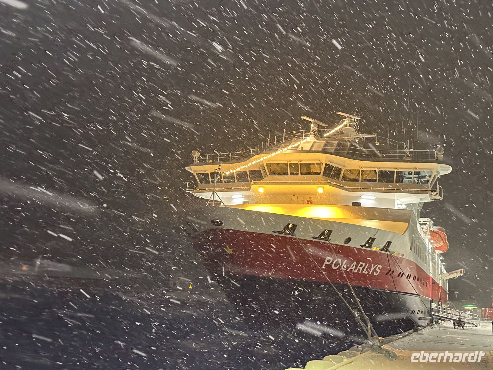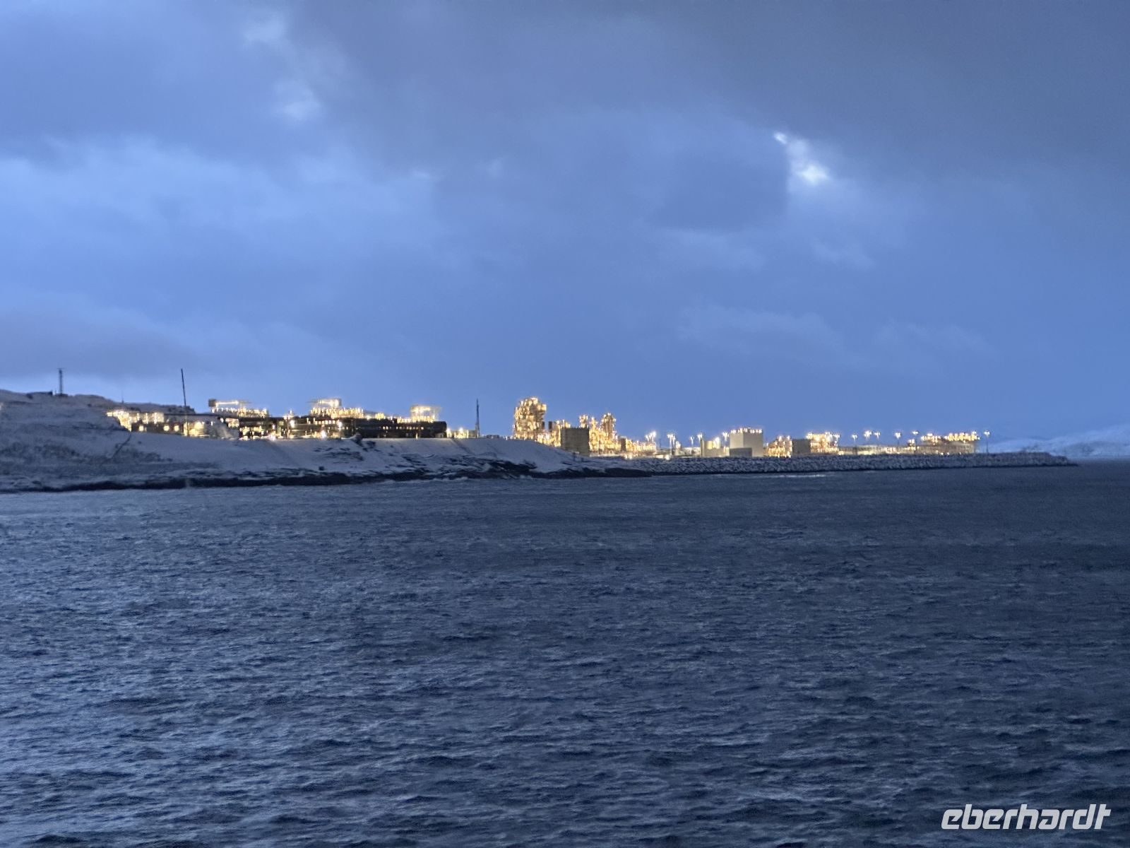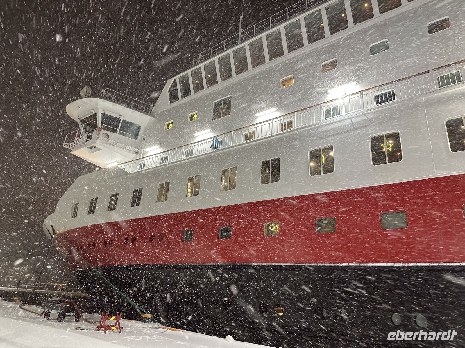 Der erste Weihnachtsfeiertag beginnt maritim: Gegen 11:00 Uhr legen wir einen kurzen Stopp in Finnsnes ein, bevor wir uns um 11:30 Uhr an Bord die faszinierende Präsentation der Riesenkrabben ansehen. Kurz darauf folgt eine wichtige Durchsage: Um 12:30 Uhr laden der Kapitän und der Expeditionsleiter zu einer außerordentlichen Versammlung ein. Die Natur hat ihre eigenen Pläne – wegen einer massiven Unwettergefahr wird die Route geändert. Statt Kirkenes wird unser nördlichstes Ziel nach dem Halt in Honningsvåg nun Alta sein.