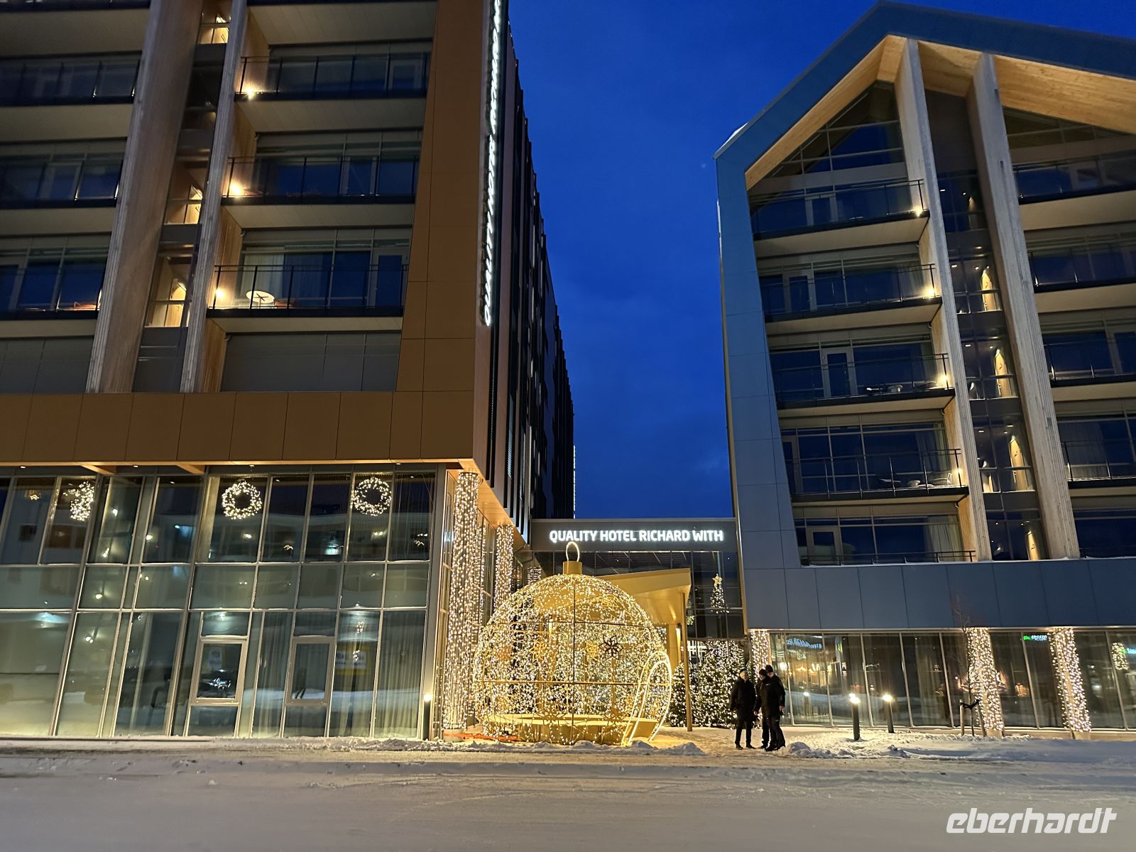 Am Nachmittag steht der Besuch des berühmten Igluhotels auf dem Plan. Es ist faszinierend zu sehen, wie aus purem Eis und Schnee kunstvolle Suiten, Skulpturen und sogar eine Kapelle entstanden sind. Die vergängliche Pracht und die kristalline Stille im Inneren lassen uns staunen.