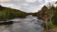 Das Wasserkraftwerk, das den ankommenden Fluss reguliert, ruht und so können wir die Kaskade des Hønefossen bewundern.
