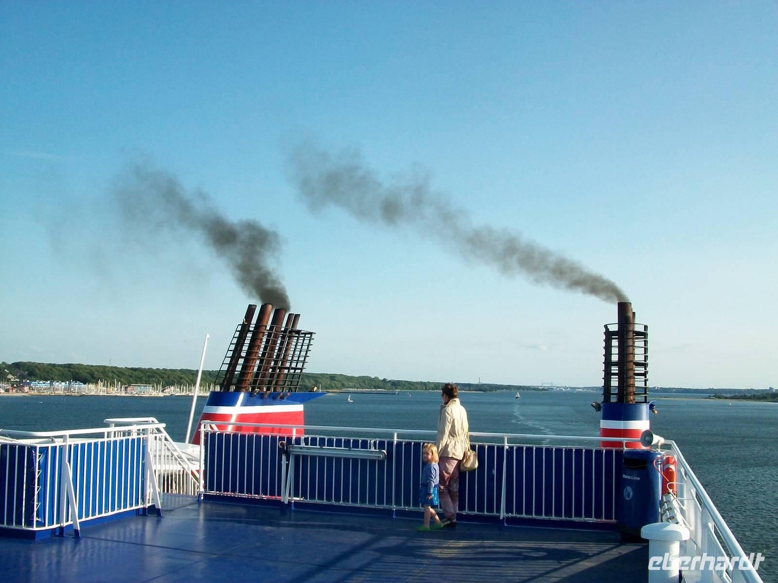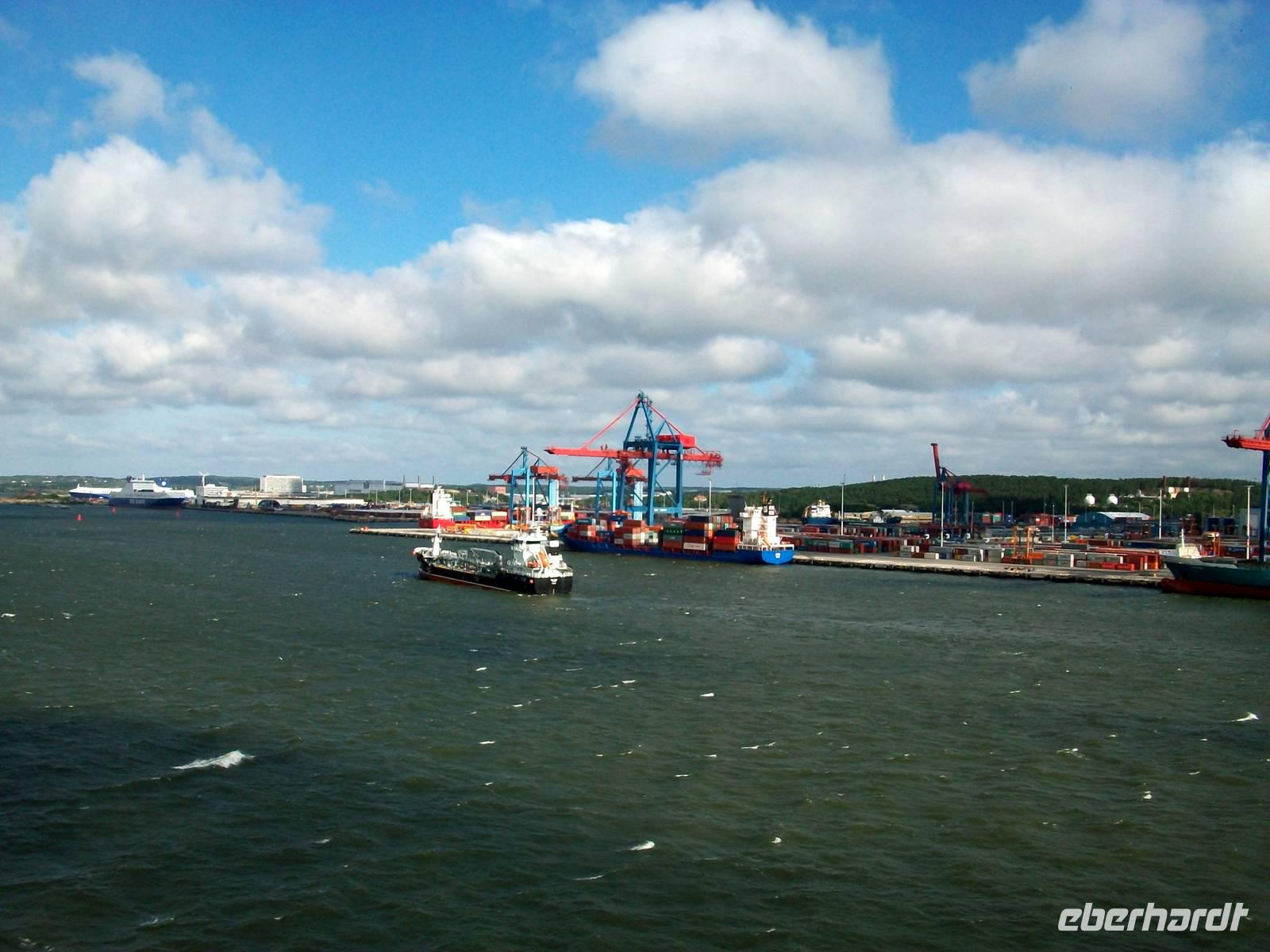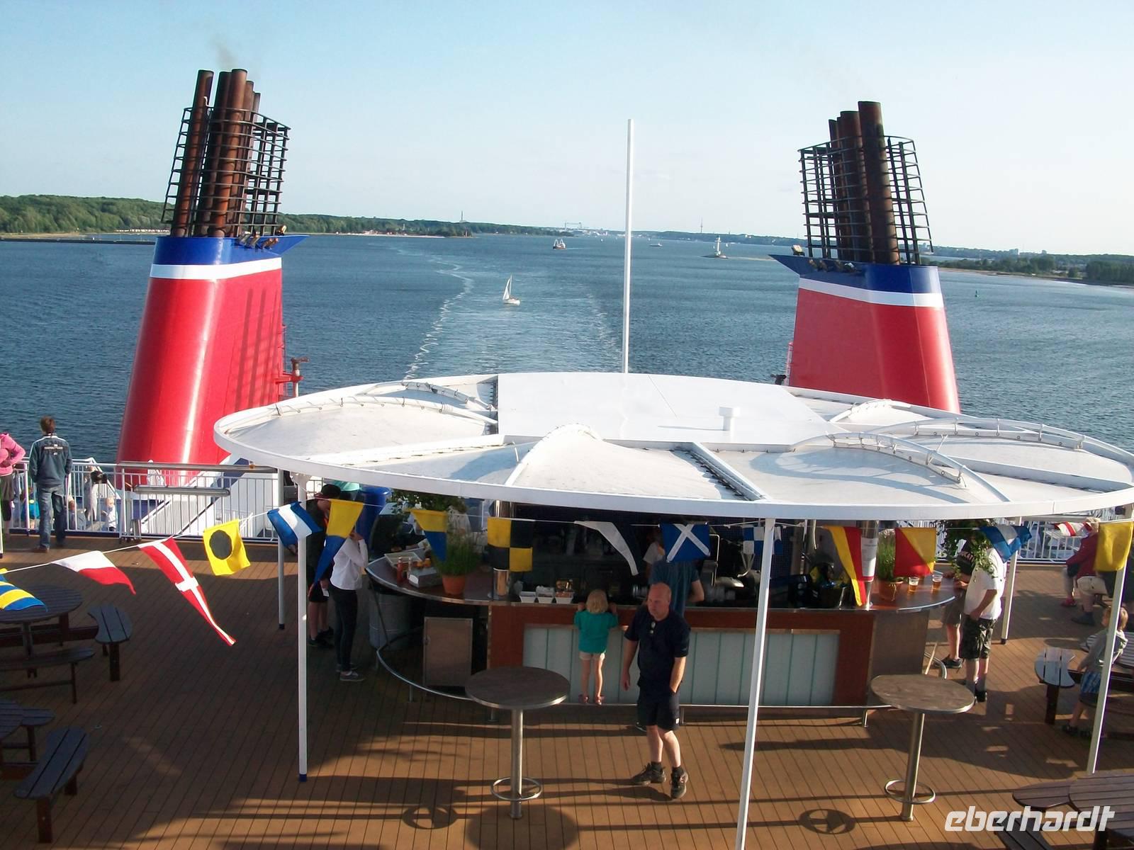 Dann sind wir in Schweden unterwegs; weiterhin begleitet uns die Sonne, auch als wir im Großraum von Göteborg anlangen. Unsere Fähre steht schon bereit; über die Gangway gelangen wir in das Innere und bis zum Abendessen verbleibt noch etwas Zeit zum Bummel auf dem Sonnendeck was heute seinem Namen volle Ehre macht.