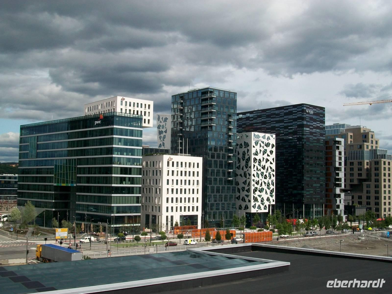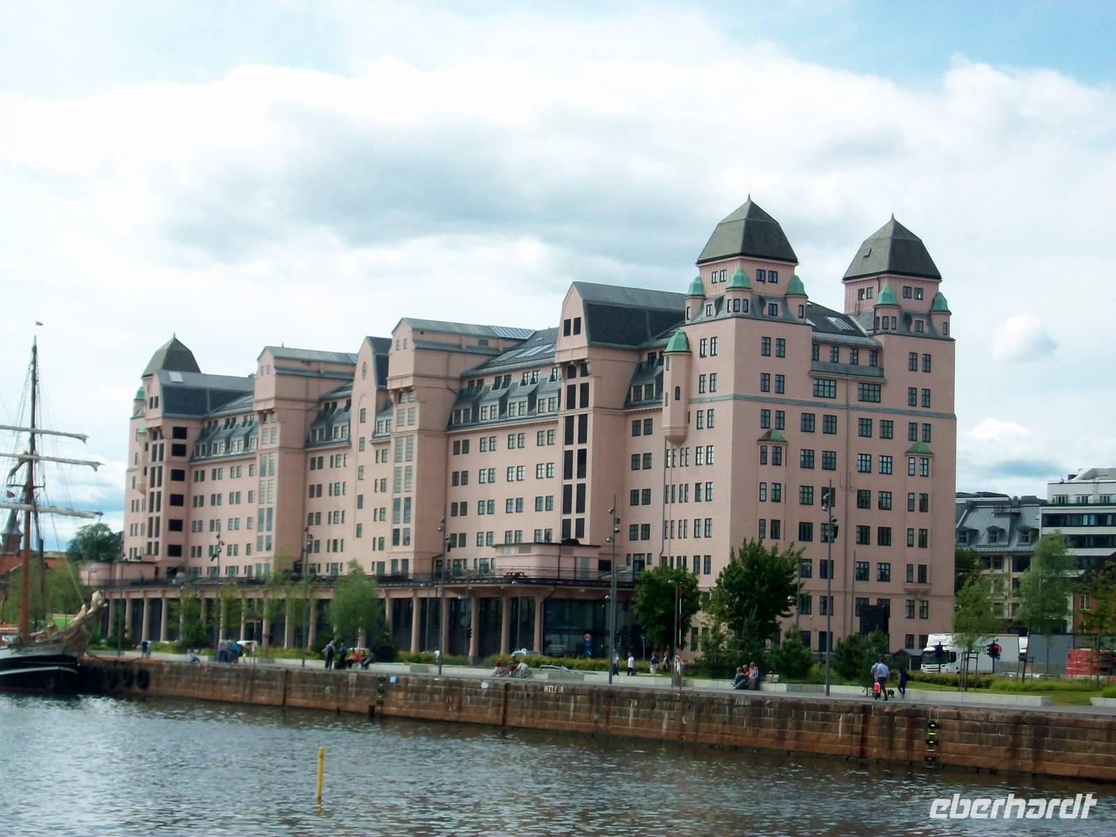 Dann noch eine Stunde und wir haben die Norwegische Hauptstadt Oslo erreicht, auch hier werden wir mit Sonnenschein empfangen. An der berühmten Festung Akershus wartet schon Stefanie unsere Stadtführerin, mit ihr gehen wir nun auf Entdeckungen in dieser einmaligen Stadt. Zunächst schauen wir am Opernhaus, einem sehr futuristischen Gebäude vorbei. Dann geht es in den westlichen Stadtteil mit den vielen schöne Häusern und gepflegten Fassaden.