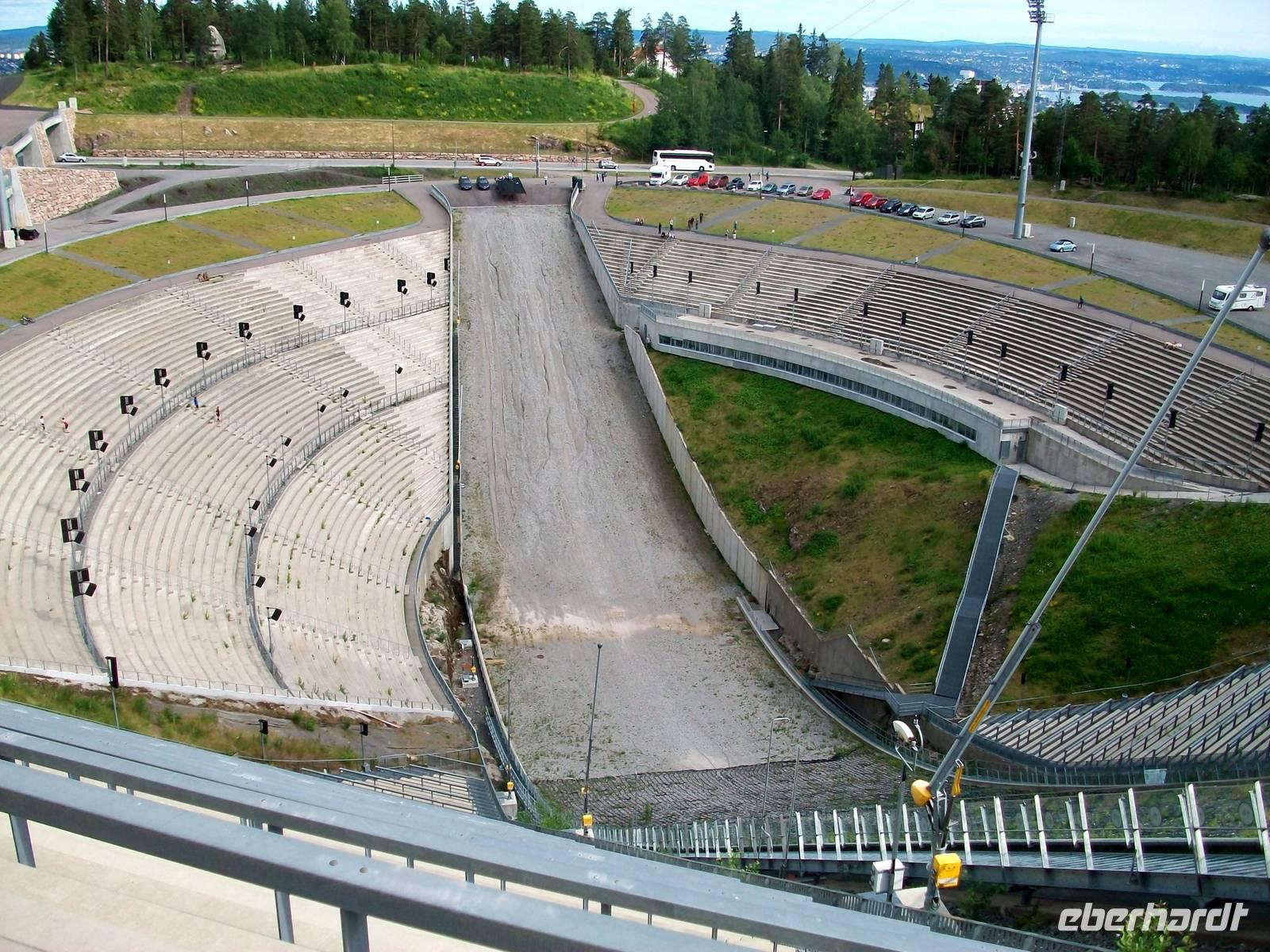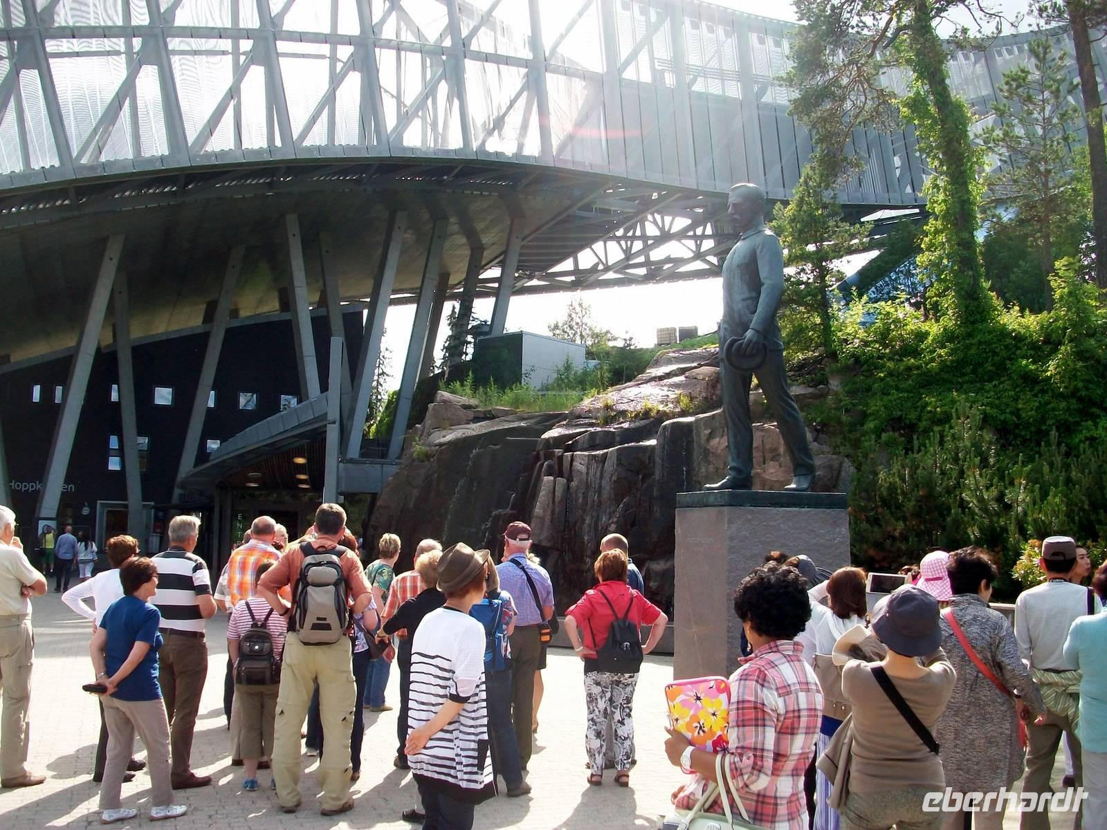Zum Schluss gelangen wir noch hinauf zum Holmenkollen mit der berühmten und sehr modernen Sprungschanze. Die ganz Wagemutigen gelangen zum Sprungturm in luftiger Höhe oder gönnen sich einen abenteuerlichen Trip im Skisimulator.