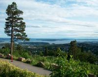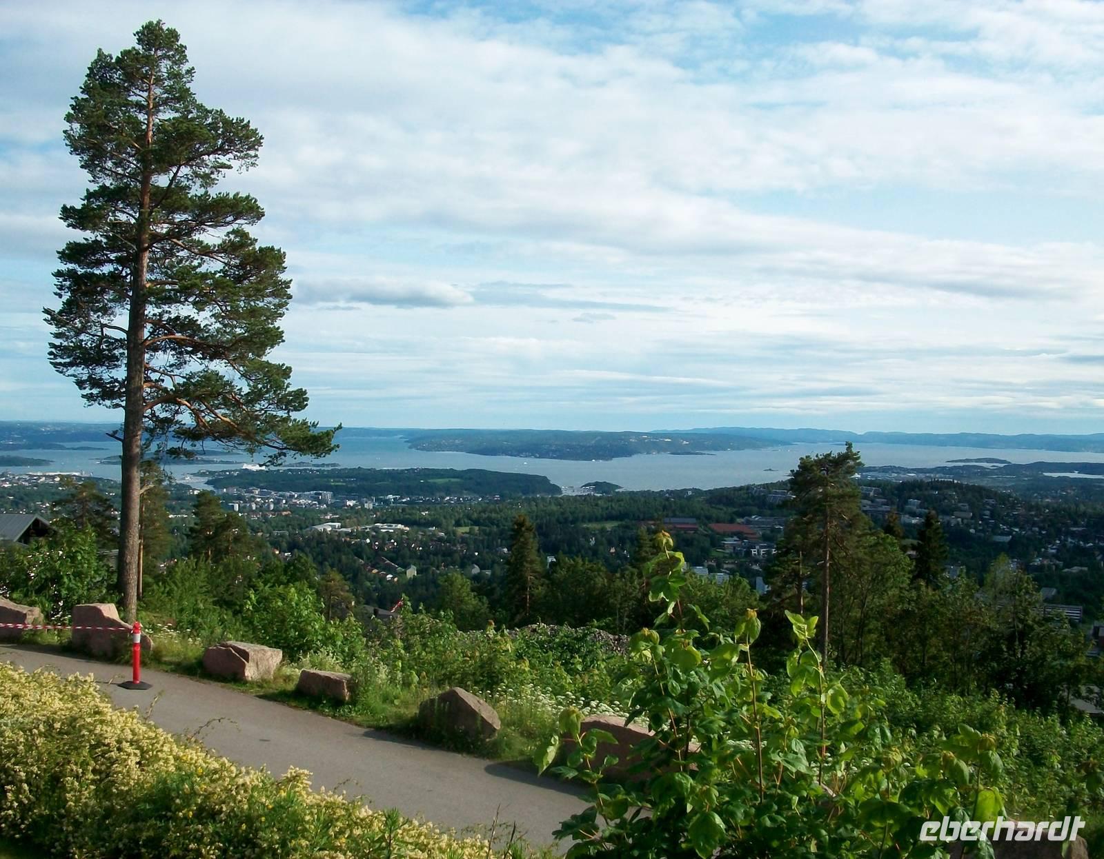 Nur wenige hundert Meter entfernt befindet sich in schöner Lage unser Hotel und nachdem wir die Zimmer bezogen haben, genießen wir einen grandiosen Blick von der Terrasse hinunter nach Oslo und den Fjord auf welchem gerade ein großes Schiff die Stadt verlässt.