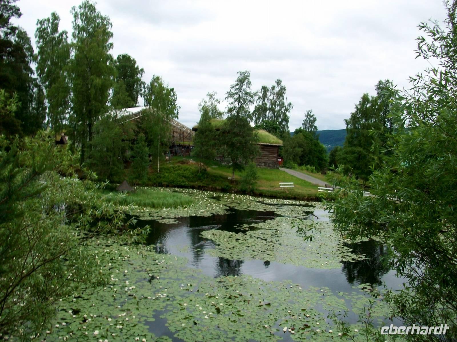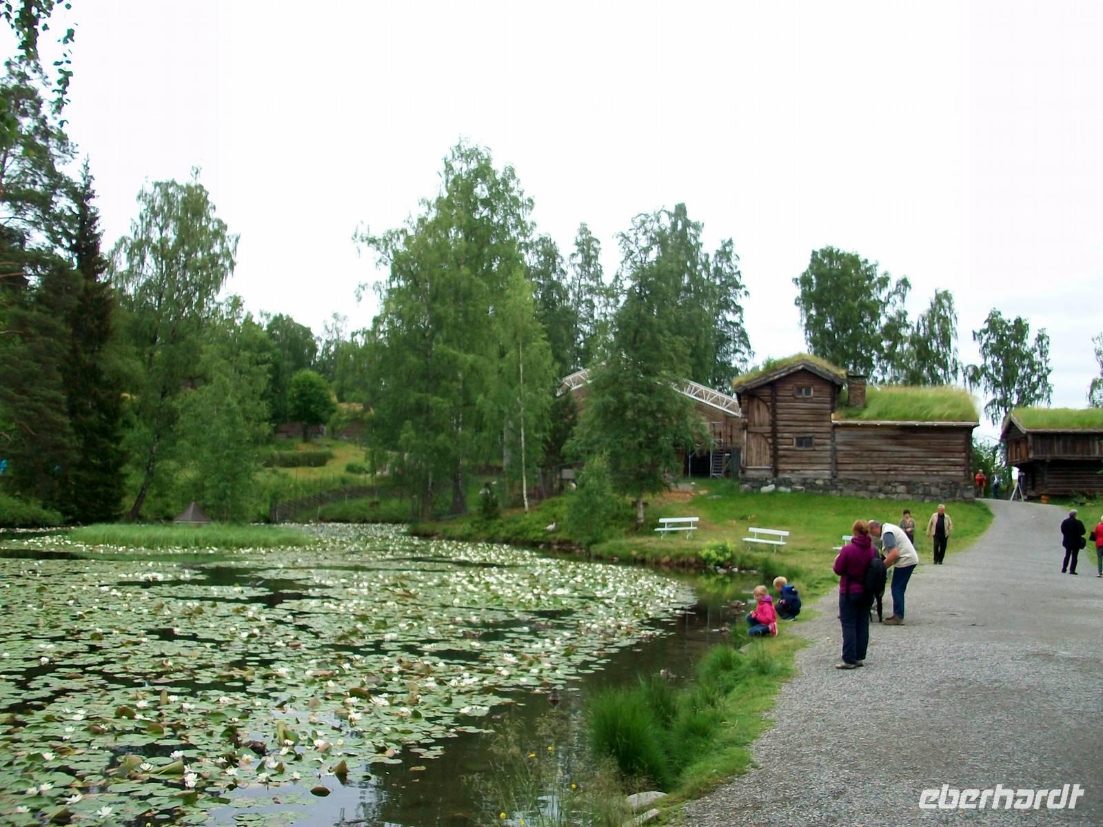 Nach diesem Besuch wollen wir heute zum zweiten Mal die Historie Norwegens kennenlernen. Unweit der Schanzen befindet sich das Freiluftmuseum Maihaugen, hier ist ein Museumsdorf aufgebaut und mit einer sympathischen jungen Führerin tauchen wir nun ein in das Leben vergangener Jahrhunderte. Zunächst schauen wir in einer Stabkirche vorbei und machen uns vertraut mit diesen besonderen Gotteshäusern. Wir gelangen am schönen Teich mit den Seerosen vorbei und haben wenig später in einem Bauernhaus Platz genommen. Hier erfahren wir einiges über das Familienleben vergangener Zeiten um unmittelbar danach noch einer Dorfschule einen Besuch abzustatten. Dabei wird unsere Führerin zur strengen Lehrerin und wir haben viel Spaß dabei.