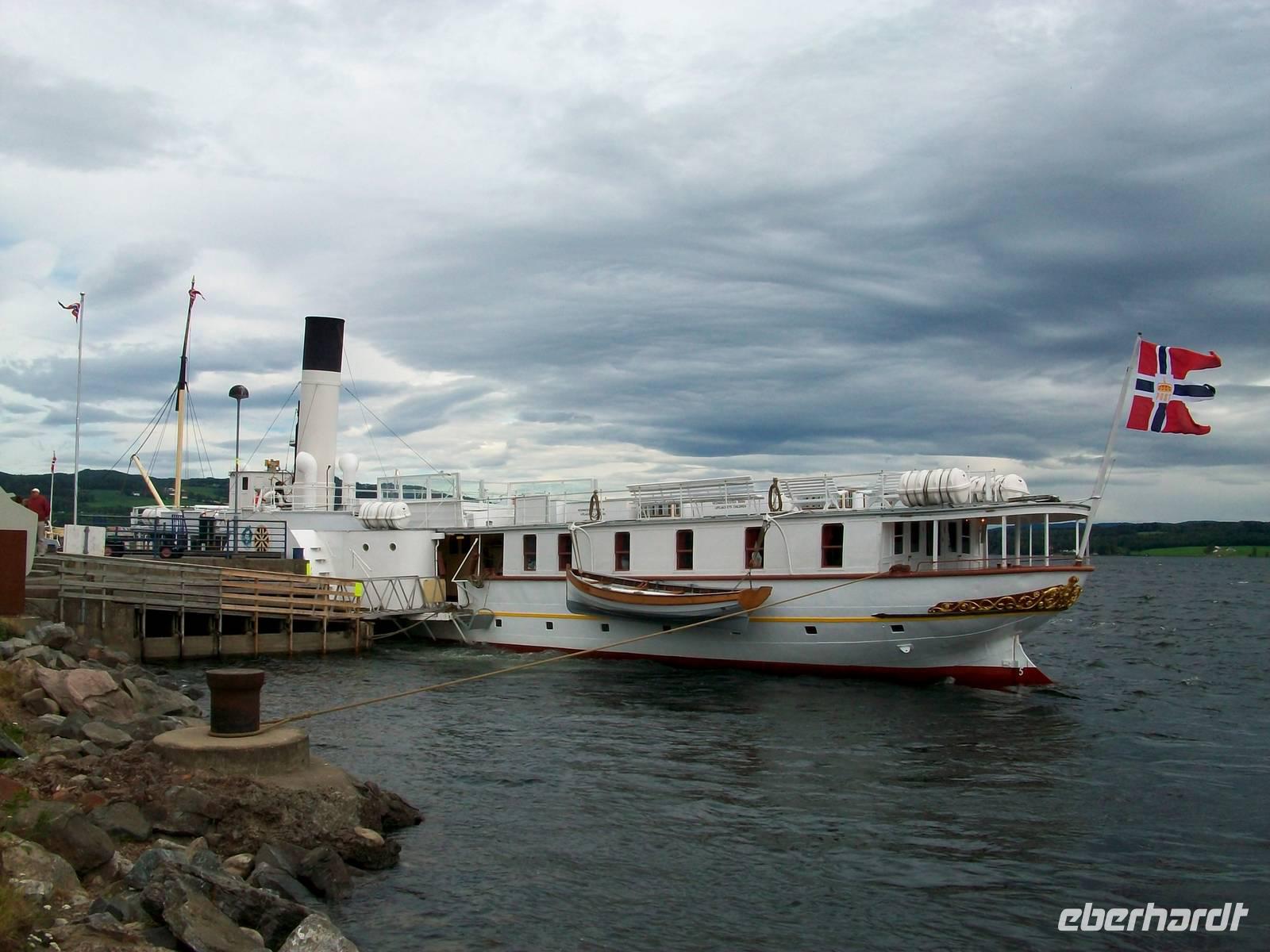 Drei Hupsignale kündigen die Abfahrt an, die Maschine beginnt ihre Arbeit, die Schaufelräder bewegen sich rauschend durch das Wasser und wir nehmen Kurs auf das gegenüberliegende Ufer. Leise schaukelnd verläuft die Fahrt, wir können der Maschine bei der Arbeit zusehen, nur leider bläst draußen ein etwas frischer Wind. Dennoch, die Impressionen sind grandios und als wir in Hamar anlegen sind wir uns einig: das war ein besonders Erlebnis.