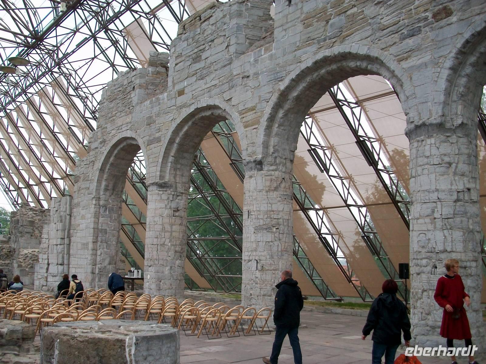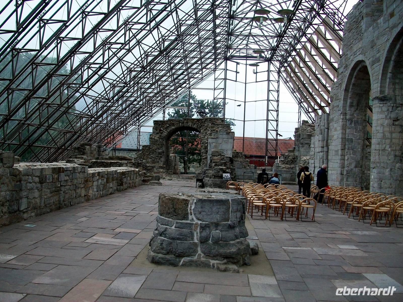 Dann verschwinden wir in einem riesigen Glashaus, unter ihm sind die Fragmente des alten Doms untergebracht und sie sind so vor den Witterungseinflüssen geschützt.