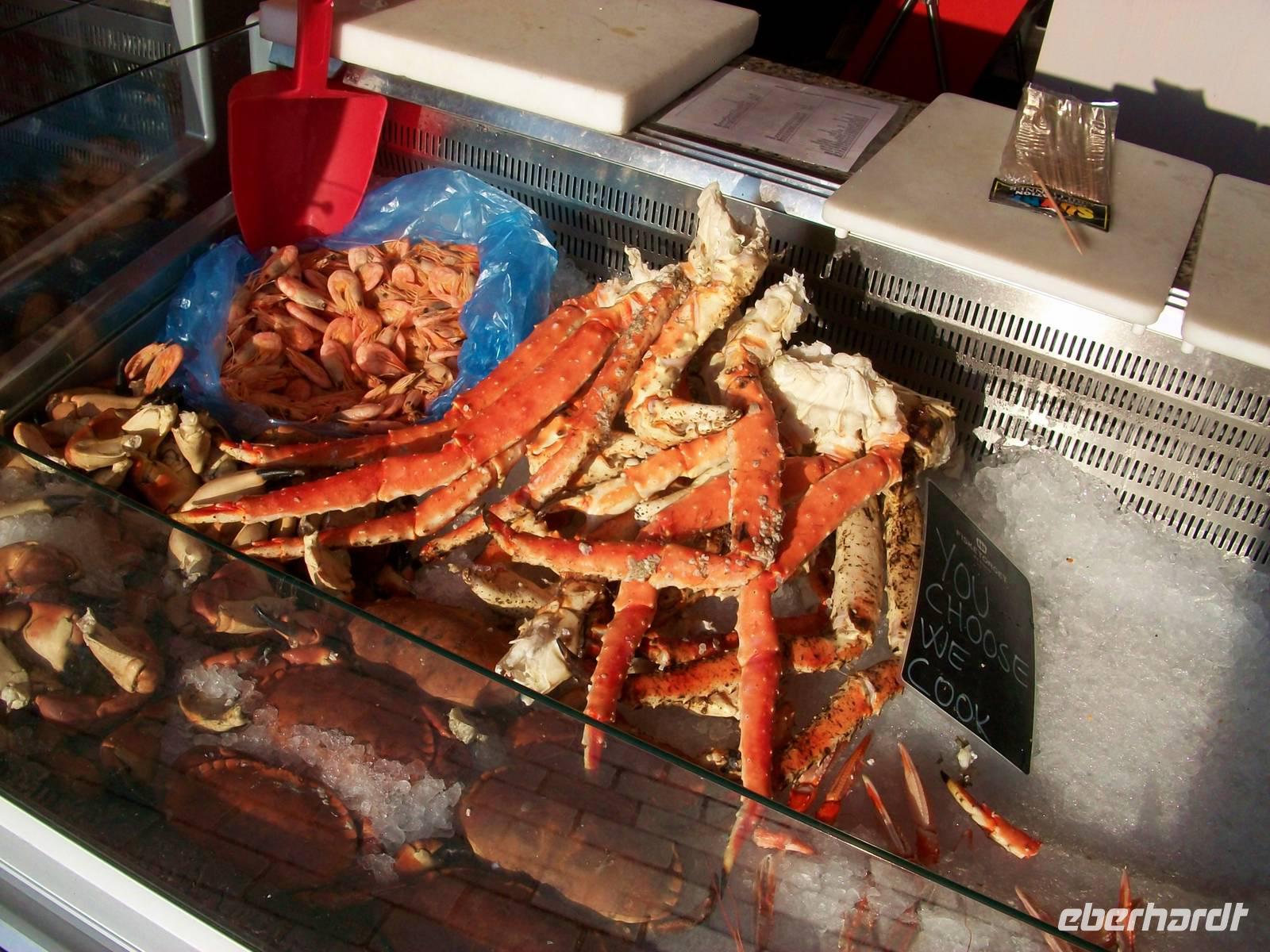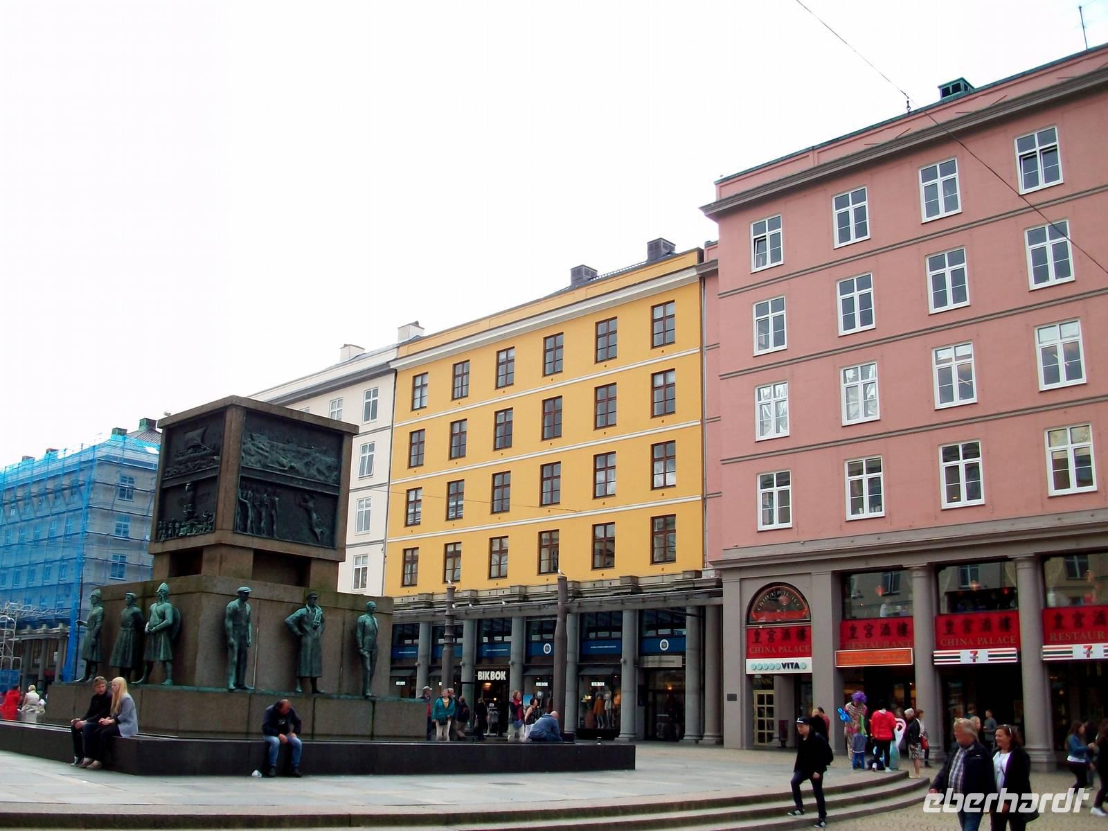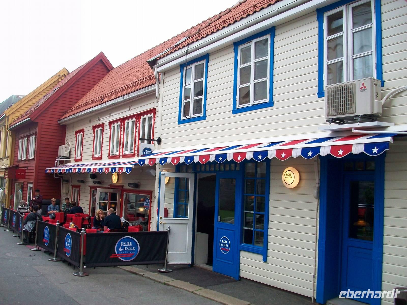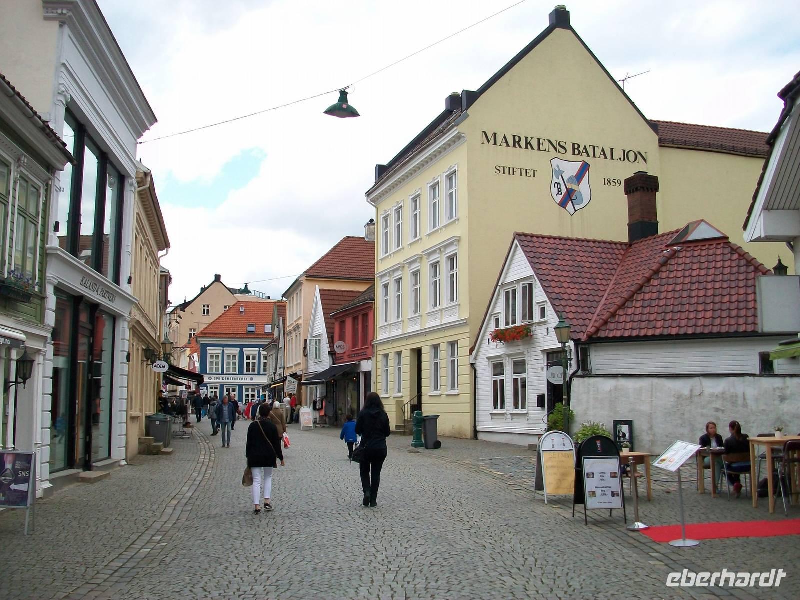 Zunächst schauen wir uns die im Vorort gelegenen schönen Villen an; hier gibt es auch ein kleines Schloss, es dient der königlichen Familie oft als Residenz. Dann geht es wieder in Richtung Innenstadt; direkt am Hafenbecken steigen wir aus dem Bus aus um das alte hanseatische Viertel Bryggen zu erkunden. Wir verschwinden in einem schmalen Gang zwischen den bunten Holzhäusern, hier atmet der Hauch der Geschichte und Katrin weiß viel über die alten Zeiten und so einige raue Sitten zu berichten. Hier wurde seinerzeit viel Geld verdient; heute ist dieses Viertel eine Shoppingmeile uns so manch urige Kneipe hat sich zwischen den ehemaligen Kontoren und Lagerhäusern versteckt.